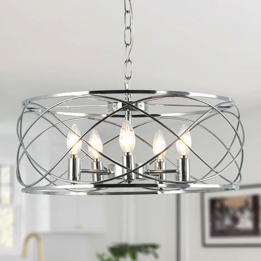 FC4078-BellaDepot 5 Lights Black/Silver Finish Simple Linear Metal Caged Chandelier, Geometric Pendant Light with and Adjustable Chain