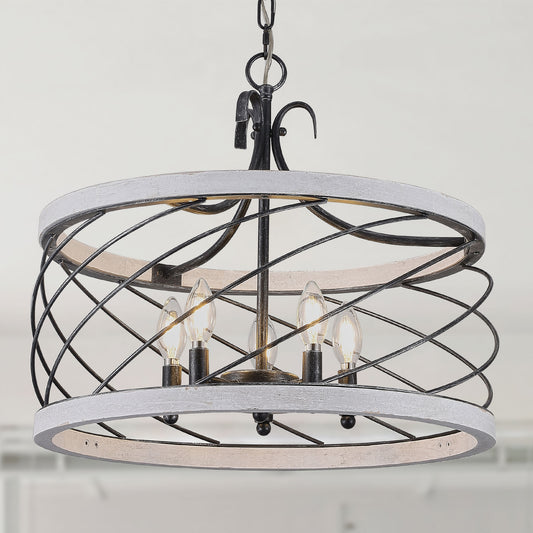 FC4071-BellaDepot 21.3" Brown/White Distressed Wood Geometric Chandelier with Adjustable Chain, Wooden Pendant Light for Home Decor
