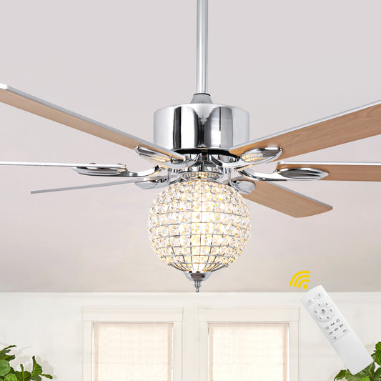DC6509-BellaDepot 65" Luxury Crystal Ball Chrome Large Size Ceiling Fan with Remote Control, Silent Motor 6 Speeds Straight Leaf Fan with LED Lights