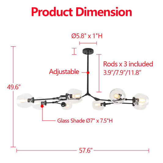 BD1032-BellaDepot 6/10/14 Lights Romantic Adjustable Cluster Linear Spider Chandelier for Home Decoration
