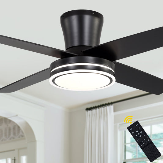 DC4401-B/C-BellaDepot 44" Modern Contemporary Silver or Black LED Ceiling Fan with Remote and Lights, Standard Flush Mount Ceiling Fan for Living Room