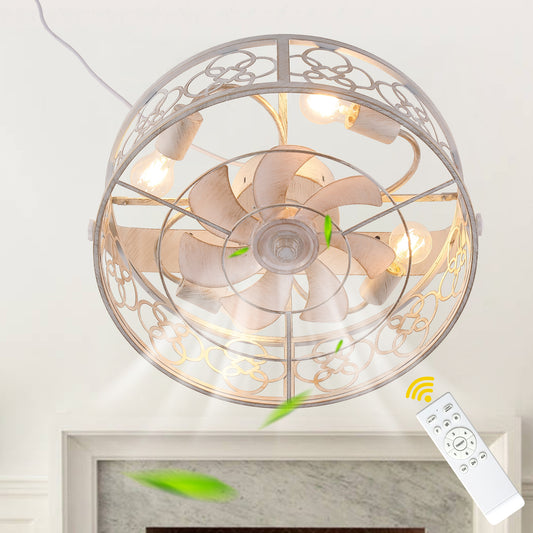 DC255204-BellaDepot 19" Artistic Wrought Iron Cage-Style Mini Ceiling Fan with Lights, Industrial-Style Vintage Creative Home Decor Fan Light