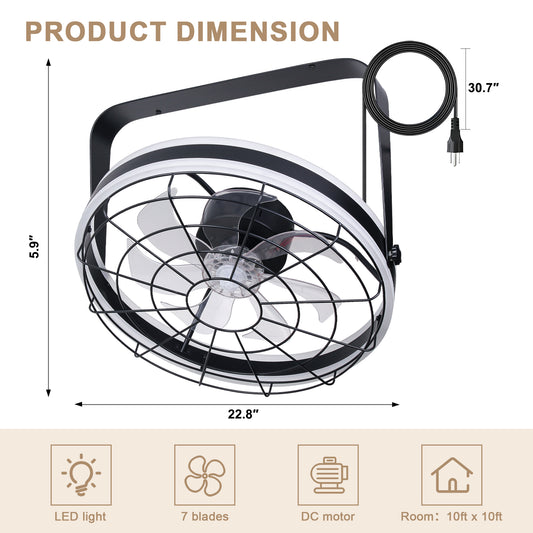 DC2035-BellaDepot 23" Metal Caged Ceiling Fan with Remote Control, Wall Mounted or Ceiling Mounted Fan with LED Light