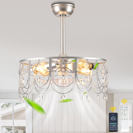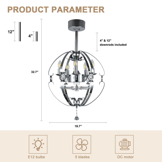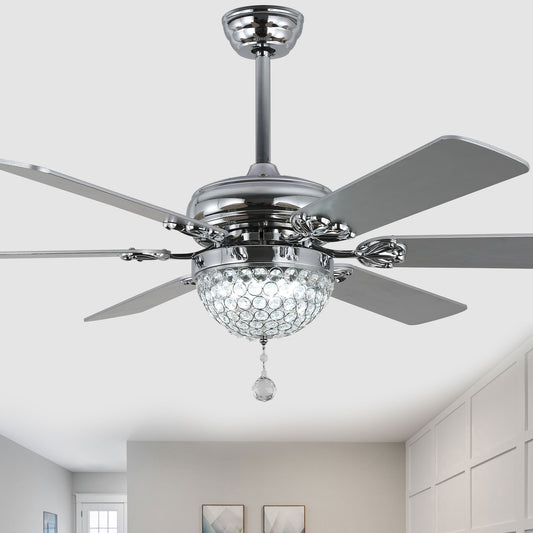DC2031-BellaDepot 19.7" Silver Finish Luxury Crystal Reversible Ceiling Fan with Remote and 5 Lights, 6-Speed Ceiling Fan