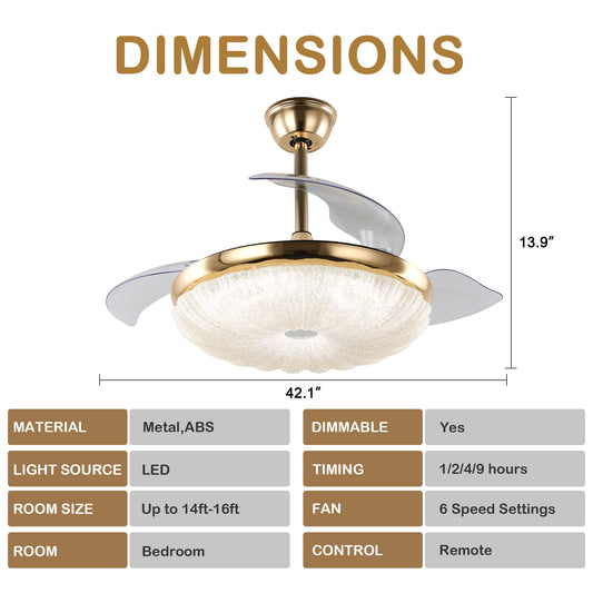 DC4272-BellaDepot 42" Gold Finish Modern Luxury Reversible Ceiling Fan with Remote and Light Kit Included, LED Dimmable Ceiling Fan