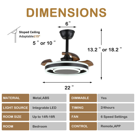 DC2104-BellaDepot 18.11" Black Modern Urban Reversible Ceiling Fan with Remote and LED Light Kit Included, Creative DIY Shape Ceiling Fan