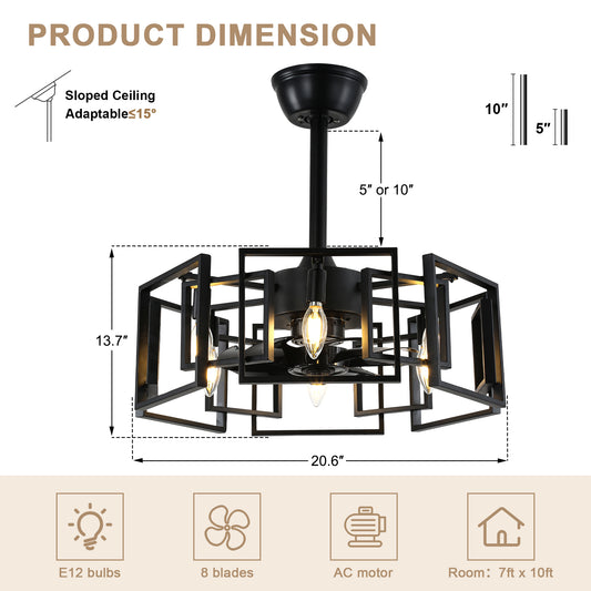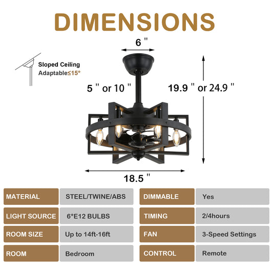 BD1811-BellaDepot 18.5" Industrial Metal Black Reversible Caged Ceiling Fan with Remote and 6 Lights