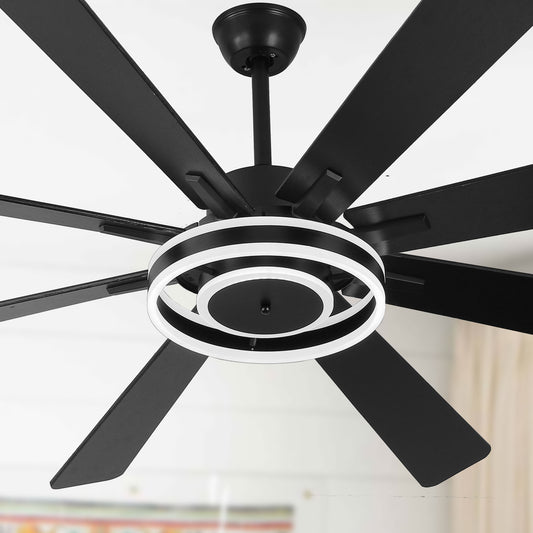 DC7203-BellaDepot 72" 8 Blades Black/Silver Finish Modern Urban Reversible Ceiling Fan with Remote and LED Light Kit Included, Large Size Dimmable Ceiling Fan