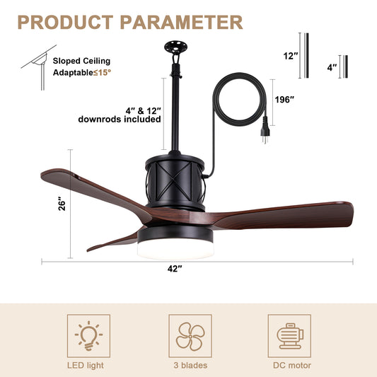 HW4202-GED-BellaDepot 24" Outdoor Modern Farmhouse LED Ceiling Fan with Remote Control, Plug in Ceiling Fan