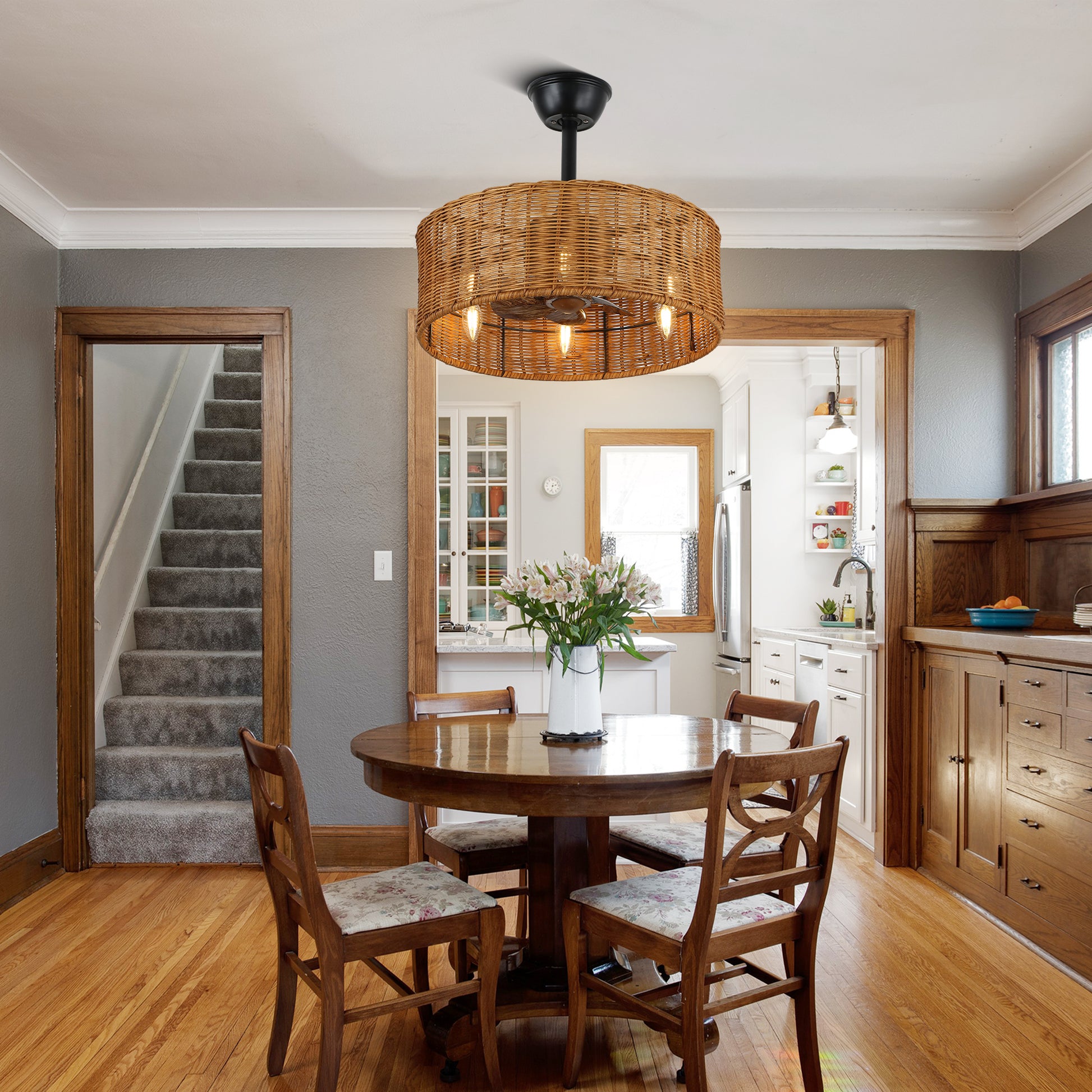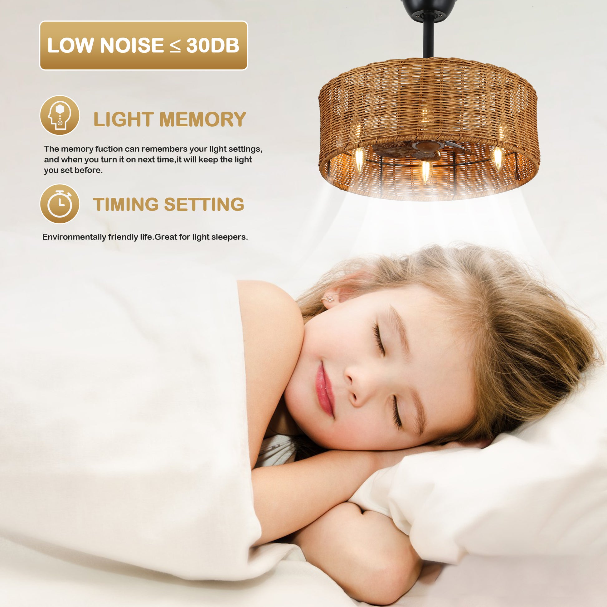 BD1804-BellaDepot 18" Rattan Series Cottage Caged Reversible Ceiling Fan with Lights Remote Control