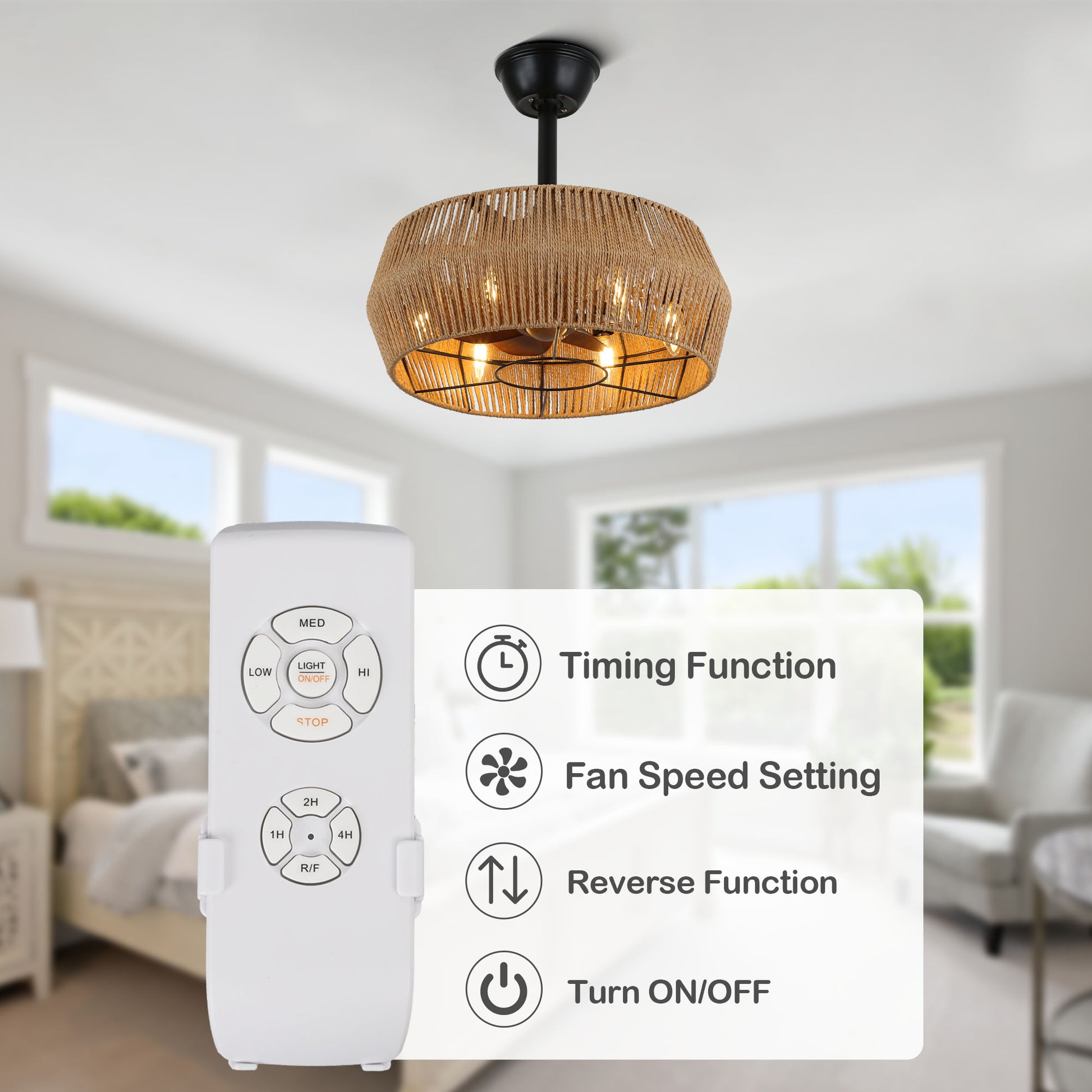 BD1801-BellaDepot 18" Rattan Series Cottage Caged Reversible Ceiling Fan with Lights Remote Control