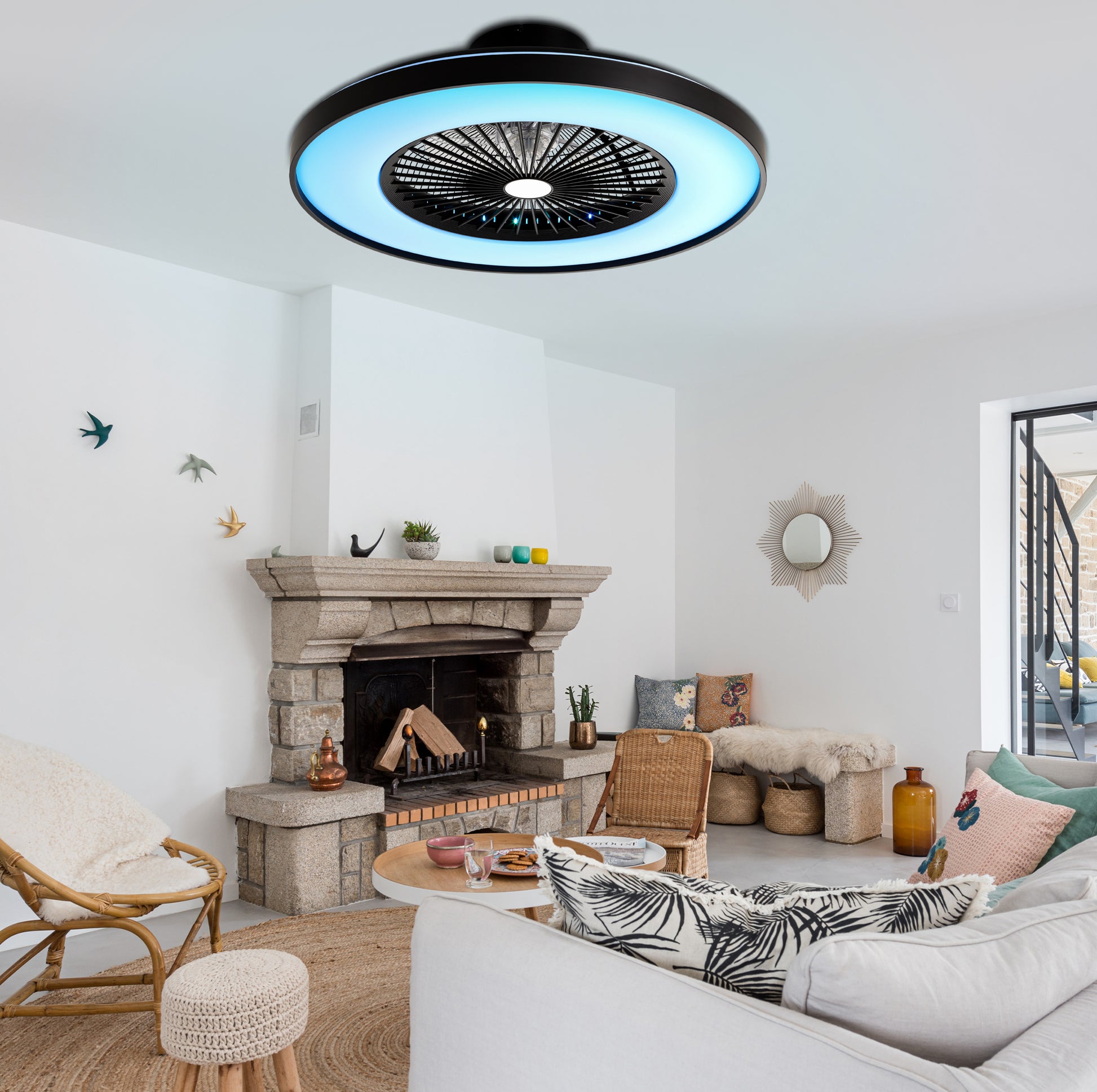 HWJ2310-23" RGB Flush Mount Smart Ceiling Fan with Remote Control, Bedroom Fan Lights with 6 Wind Speeds