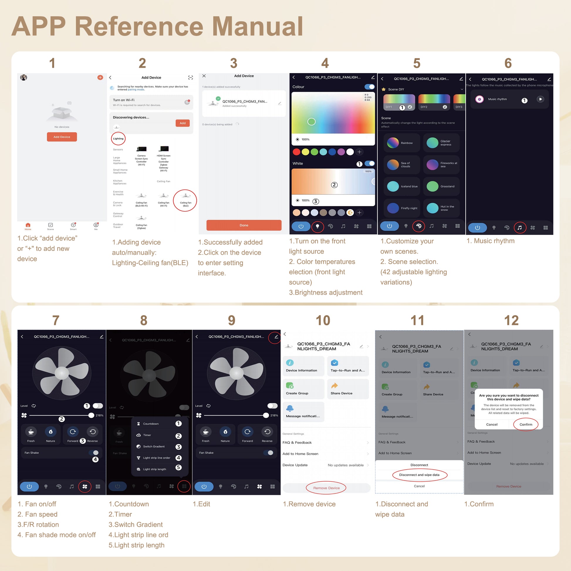 With it, your ceiling transforms from a static surface into a dynamic sky you can define at will. This magical color-changing wizard lets you revel in the convenience of technology. A simple touch of the remote unleashes 16 million shades of RGB lighting at your fingertips. With a single switch, instantly transform your living room into a blue cyberpunk fantasy, ignite parties with fiery red energy, or immerse your bedroom in a romantic, mysterious purple galaxy. Light is no longer just illumination—it becomes a vessel for your mood. And when you need to focus on reading or enjoy a cozy nap, it transforms into a reliable companion for daily life. Three adjustable levels of natural white light illuminate every corner of your desk with brightness and clarity; warm yellow light creates a cozy, comfortable atmosphere, casting a soft filter over family moments. It perfectly inherits the practical essence of classic fan lights: a powerful yet silent DC motor delivers gentle, natural-like airflow; the reversible function bringing coolness in summer and evenly distributing warmth in winter, all while saving energy. Whether complementing modern minimalist interiors or enhancing a tech-savvy gaming room, it becomes the visual focal point that elevates any space's ambiance.