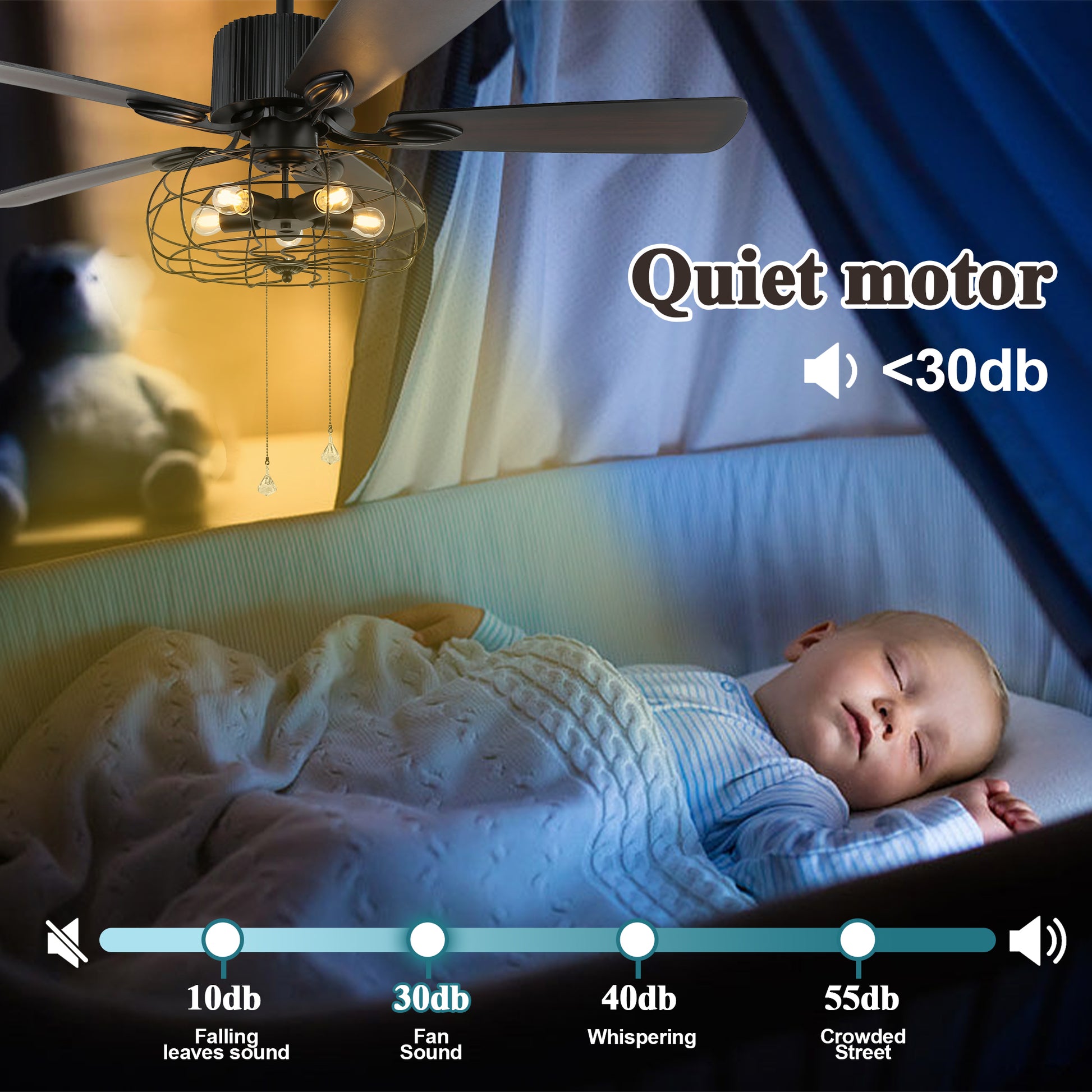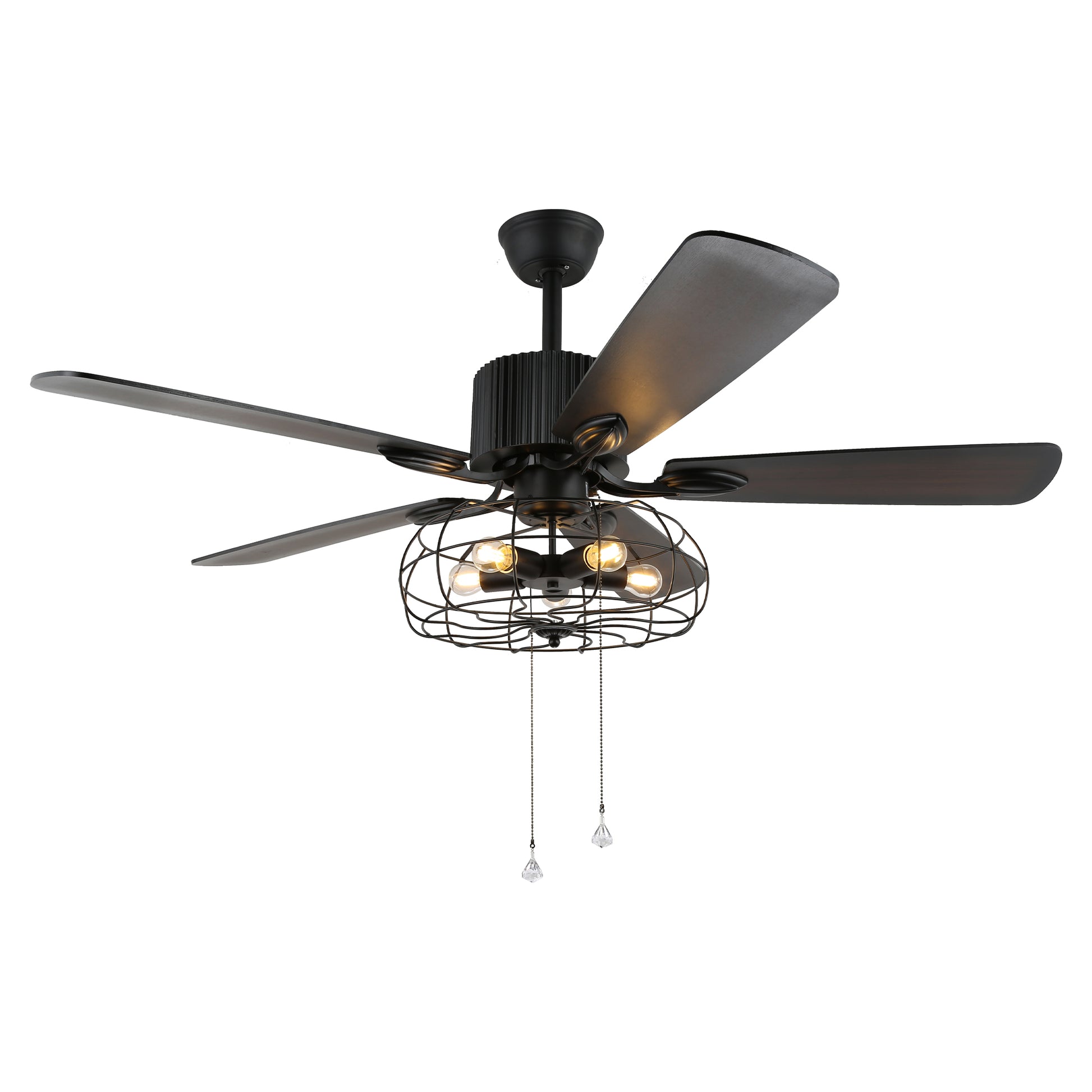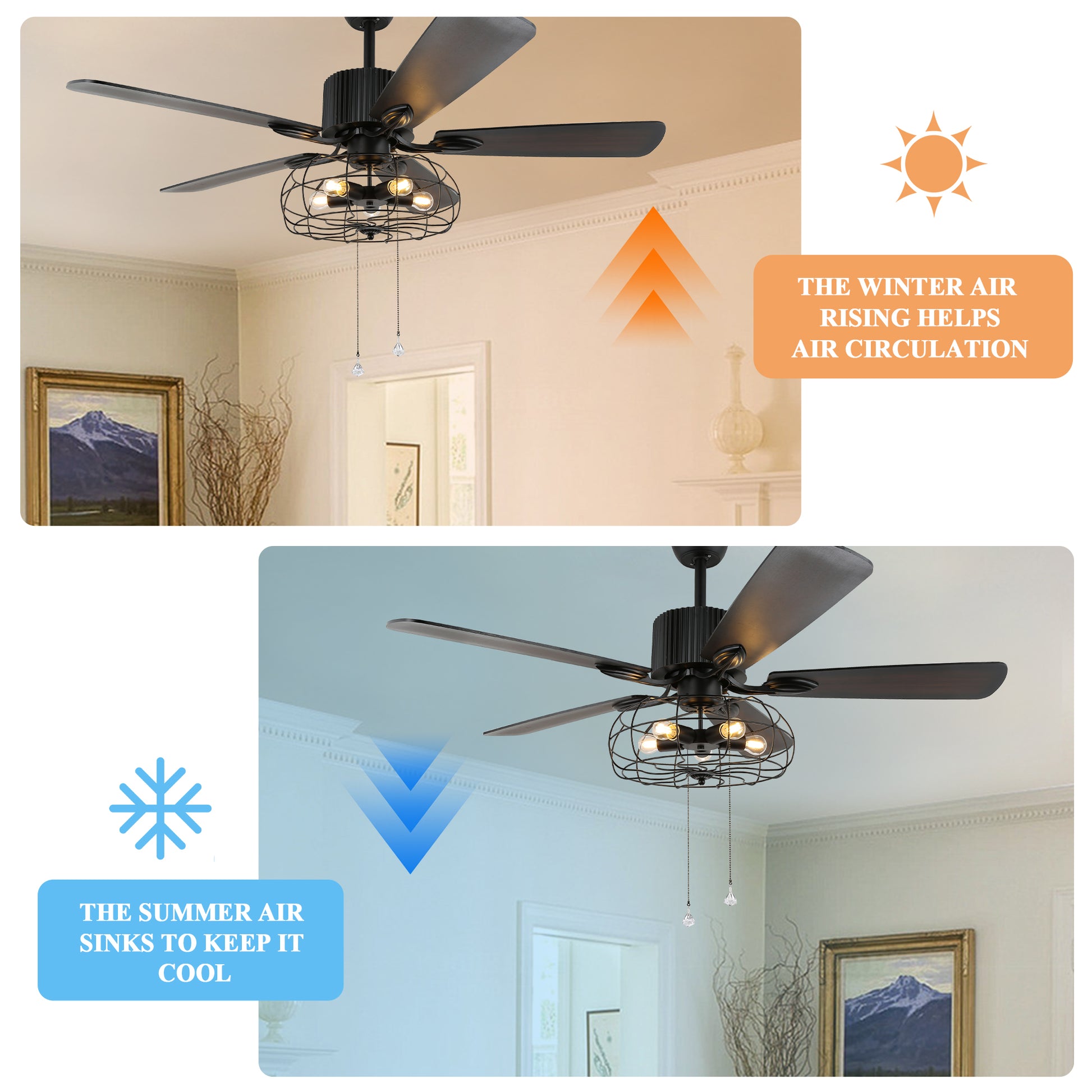 BD2011-52-BellaDepot 52" Industrial Metal Caged Reversible Ceiling Fan with Remote and Lights