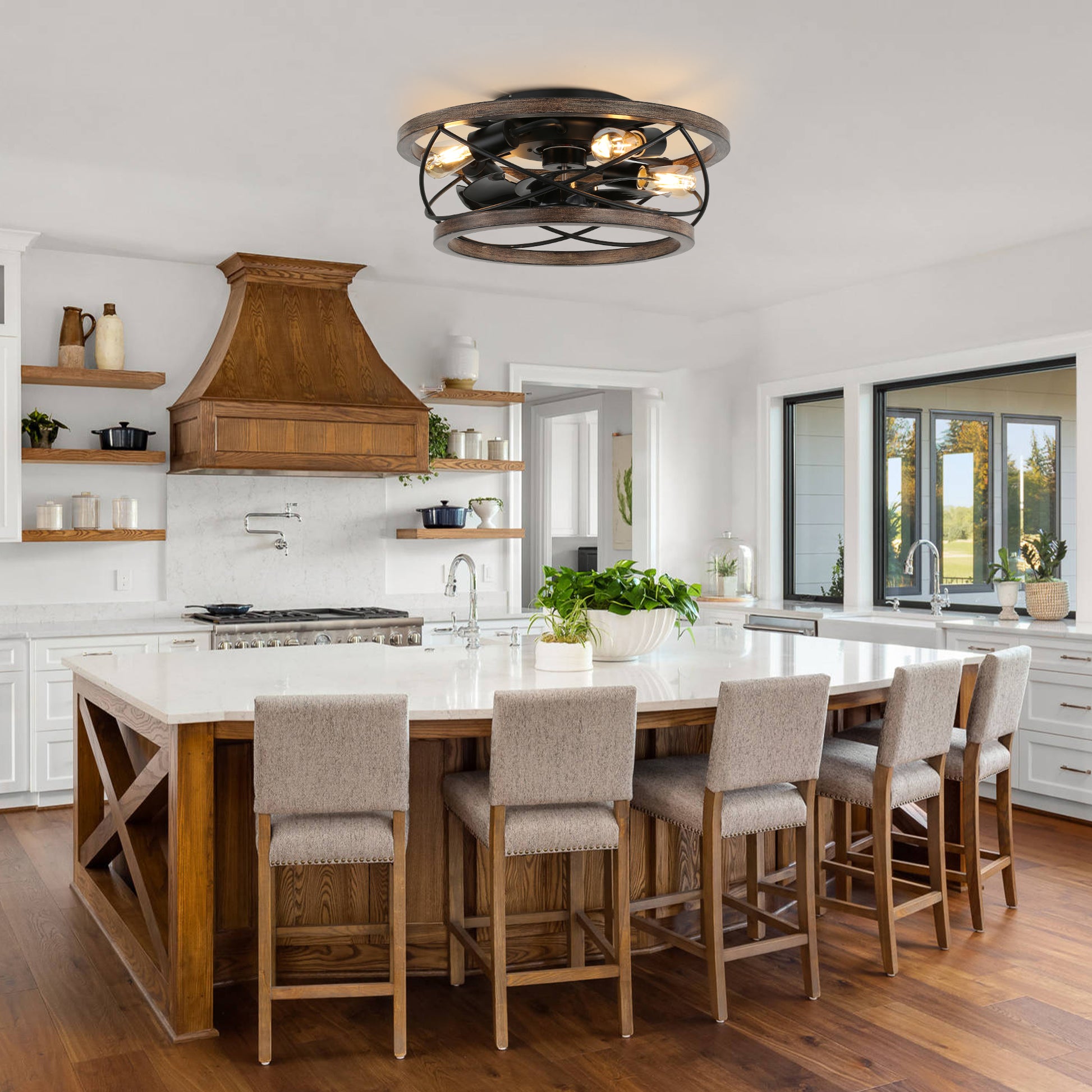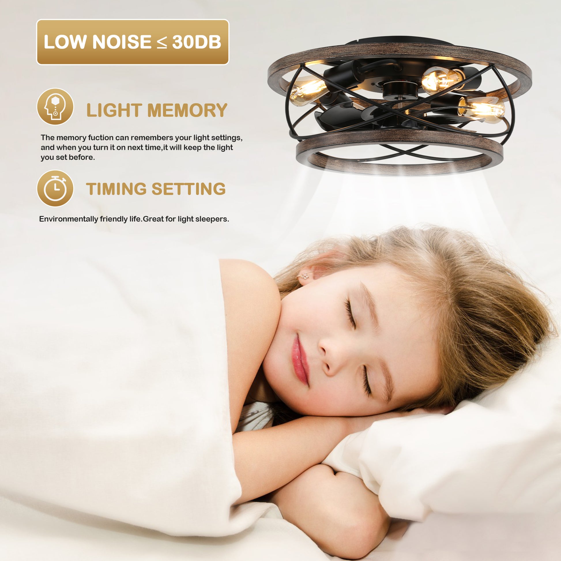 BD1809-BellaDepot 18" Farmhouse Bladeless Reversible Caged Ceiling Fan with Remote and 4 Lights