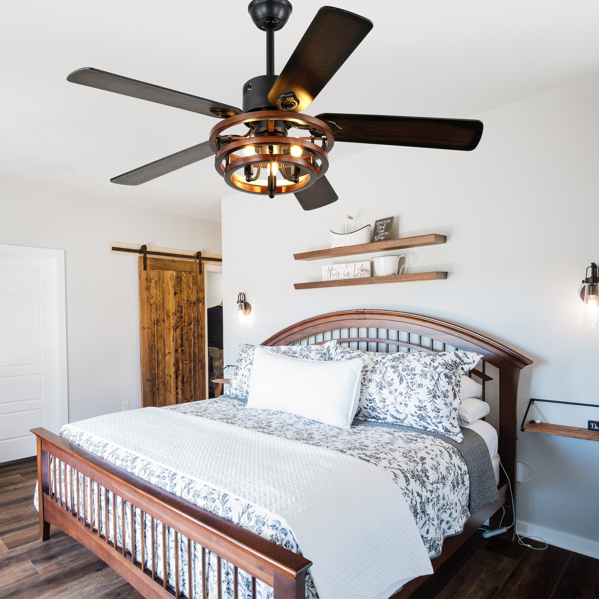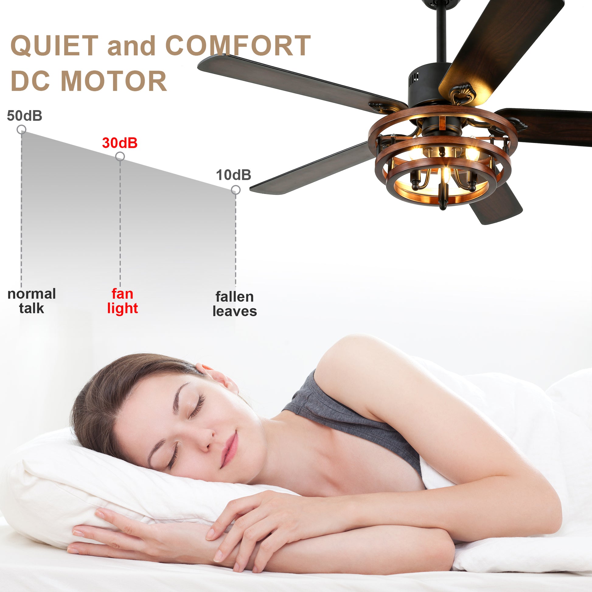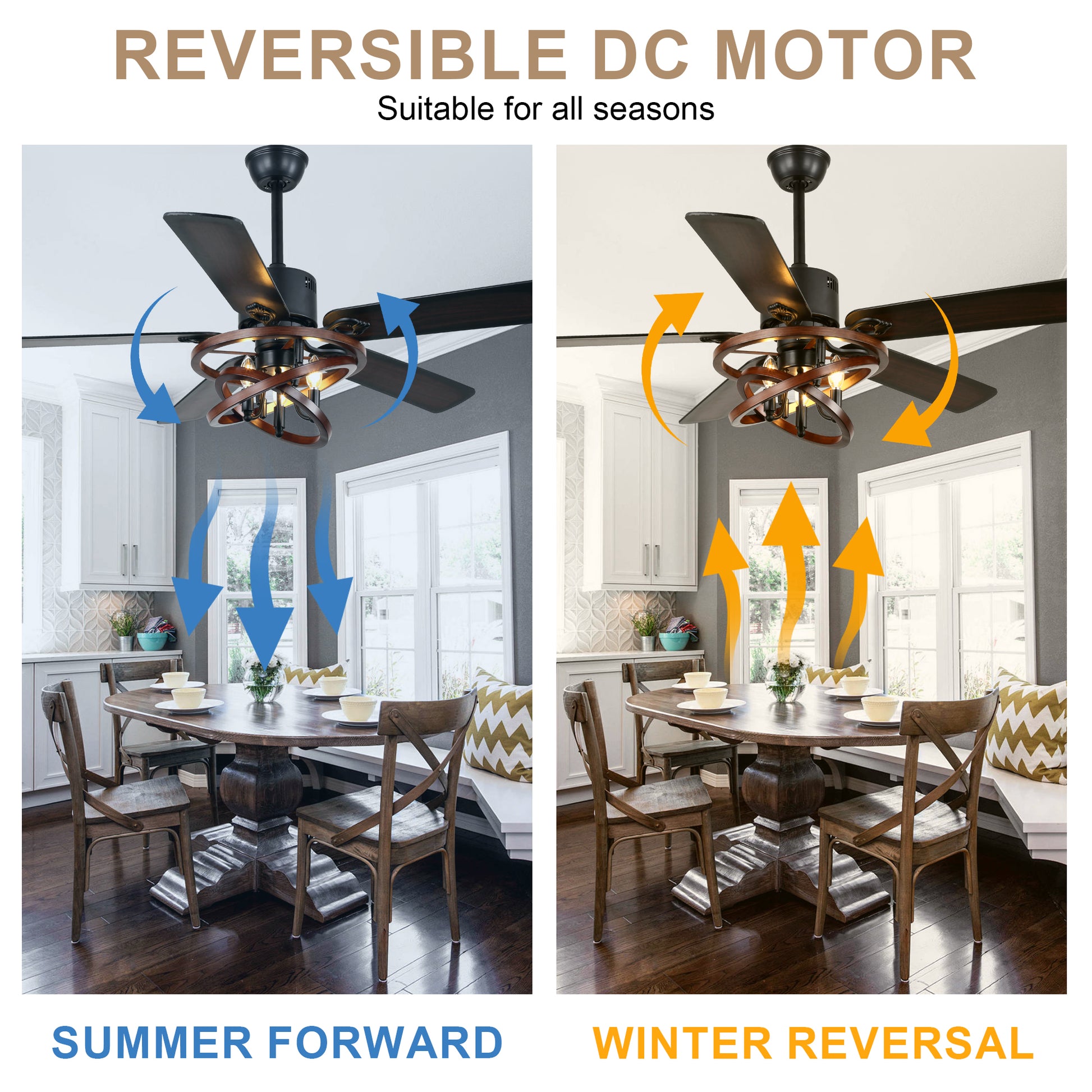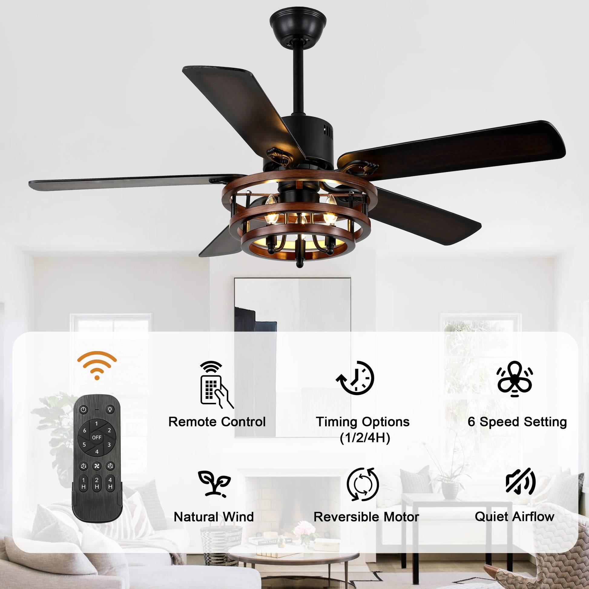 DC5219-BellaDepot 52" Farmhouse Brown Ceiling Fan with Remote Control, 5 Blades Standard Ceiling Fan with Lights