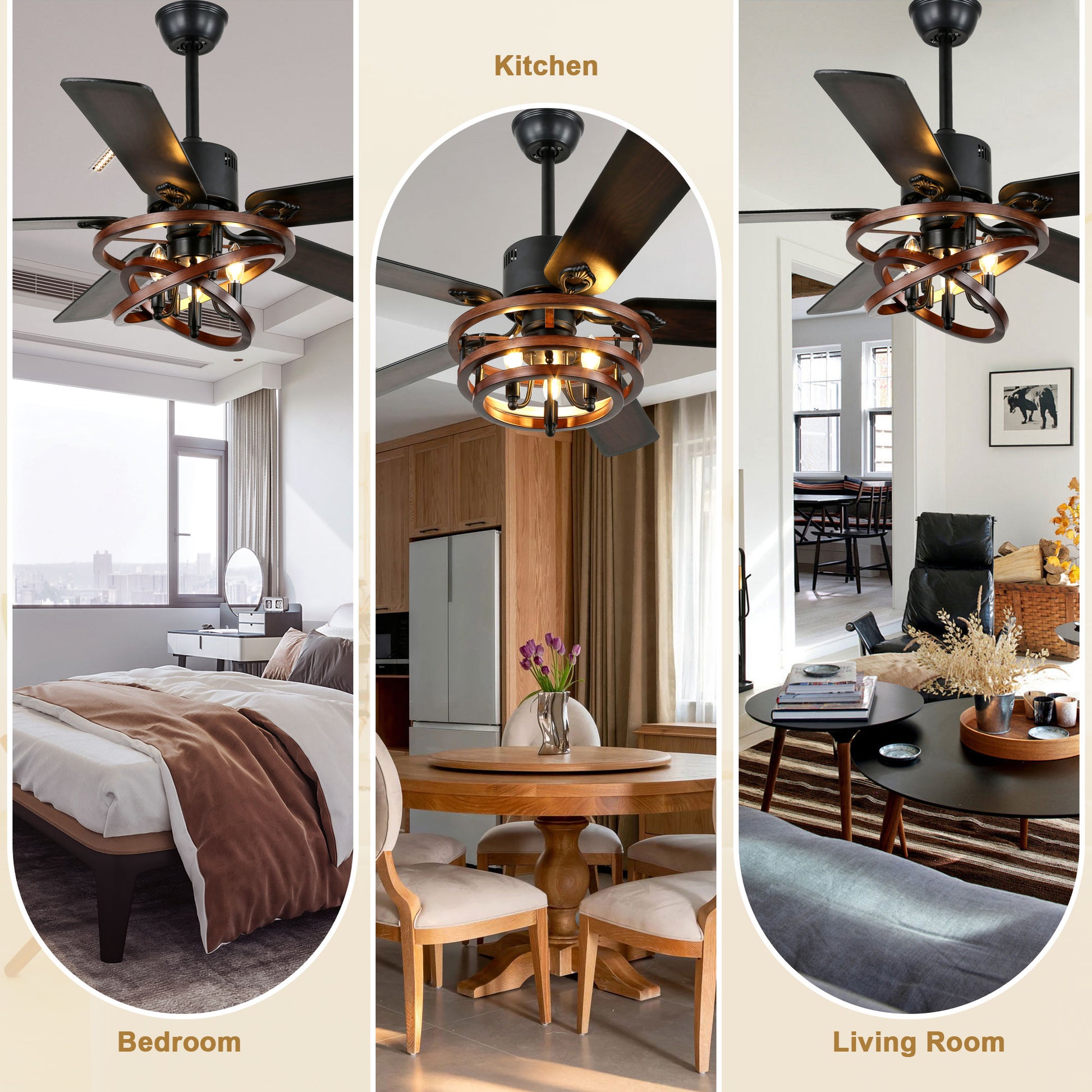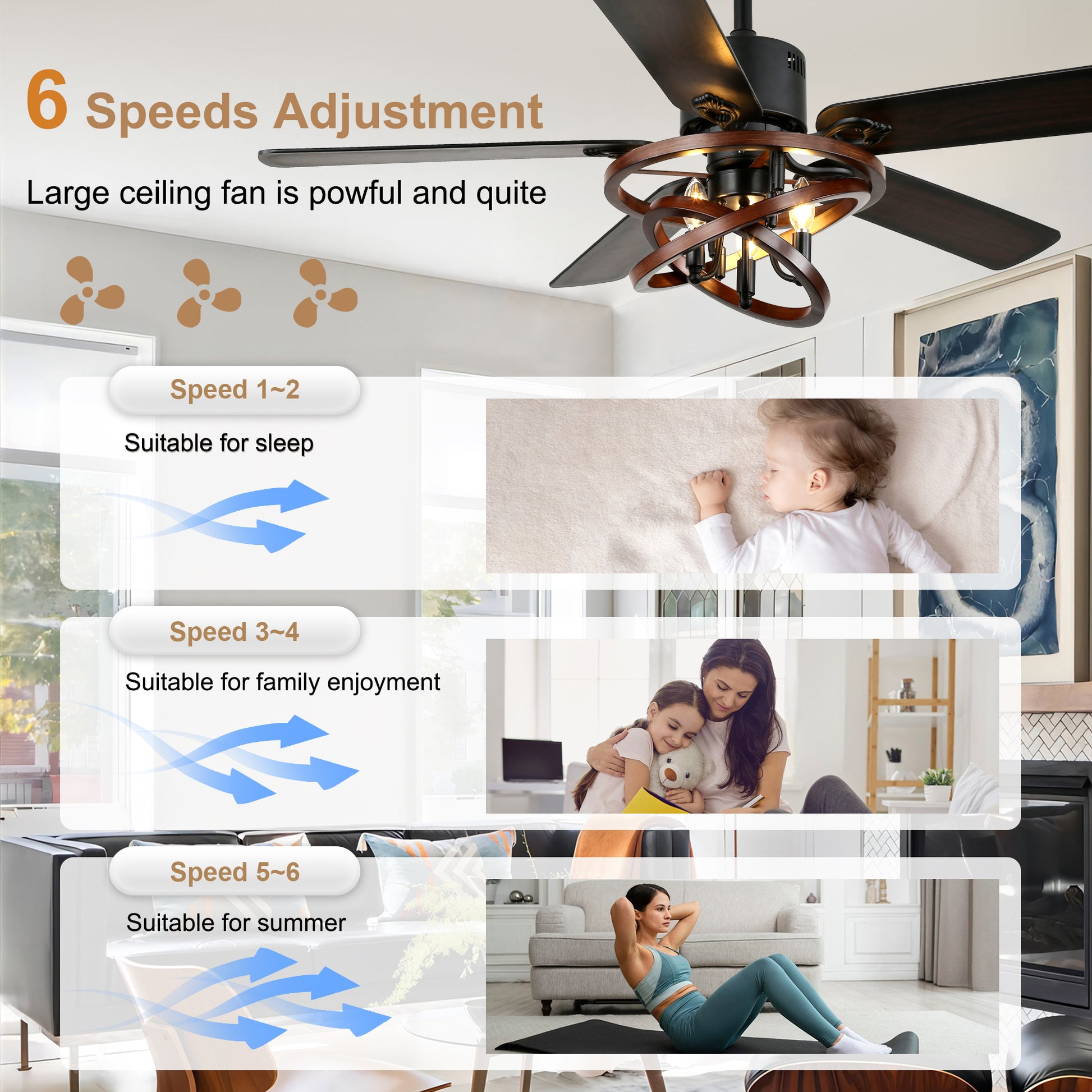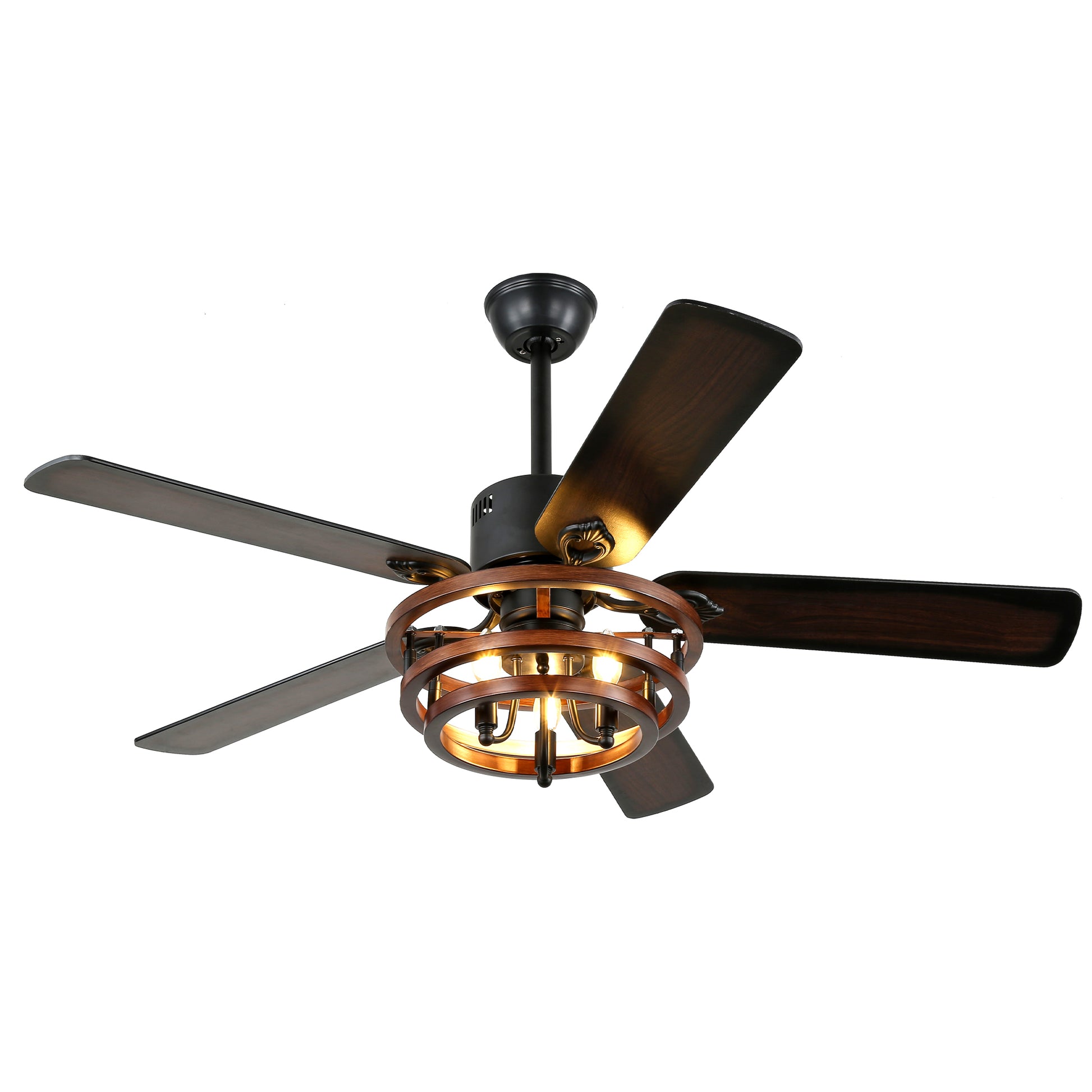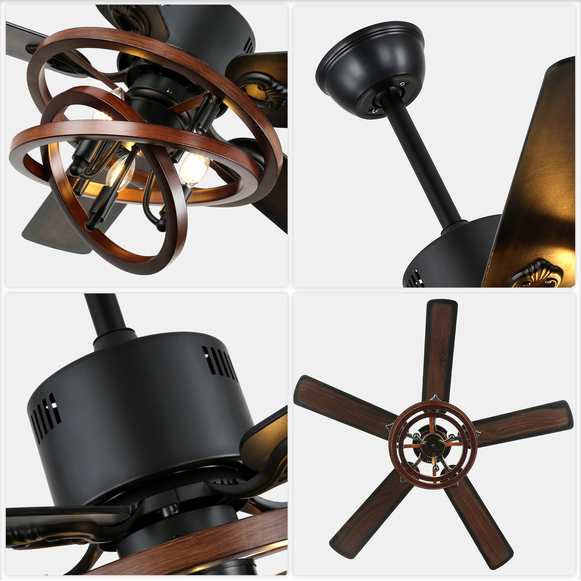 DC5219-BellaDepot 52" Farmhouse Brown Ceiling Fan with Remote Control, 5 Blades Standard Ceiling Fan with Lights