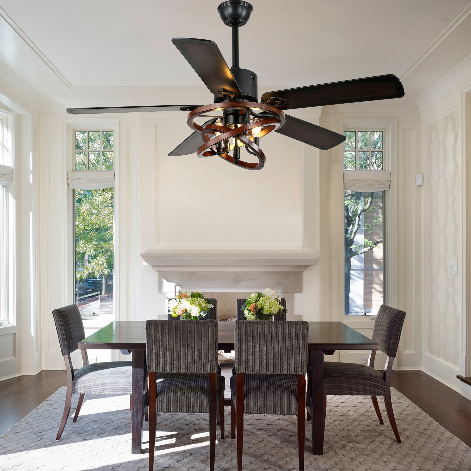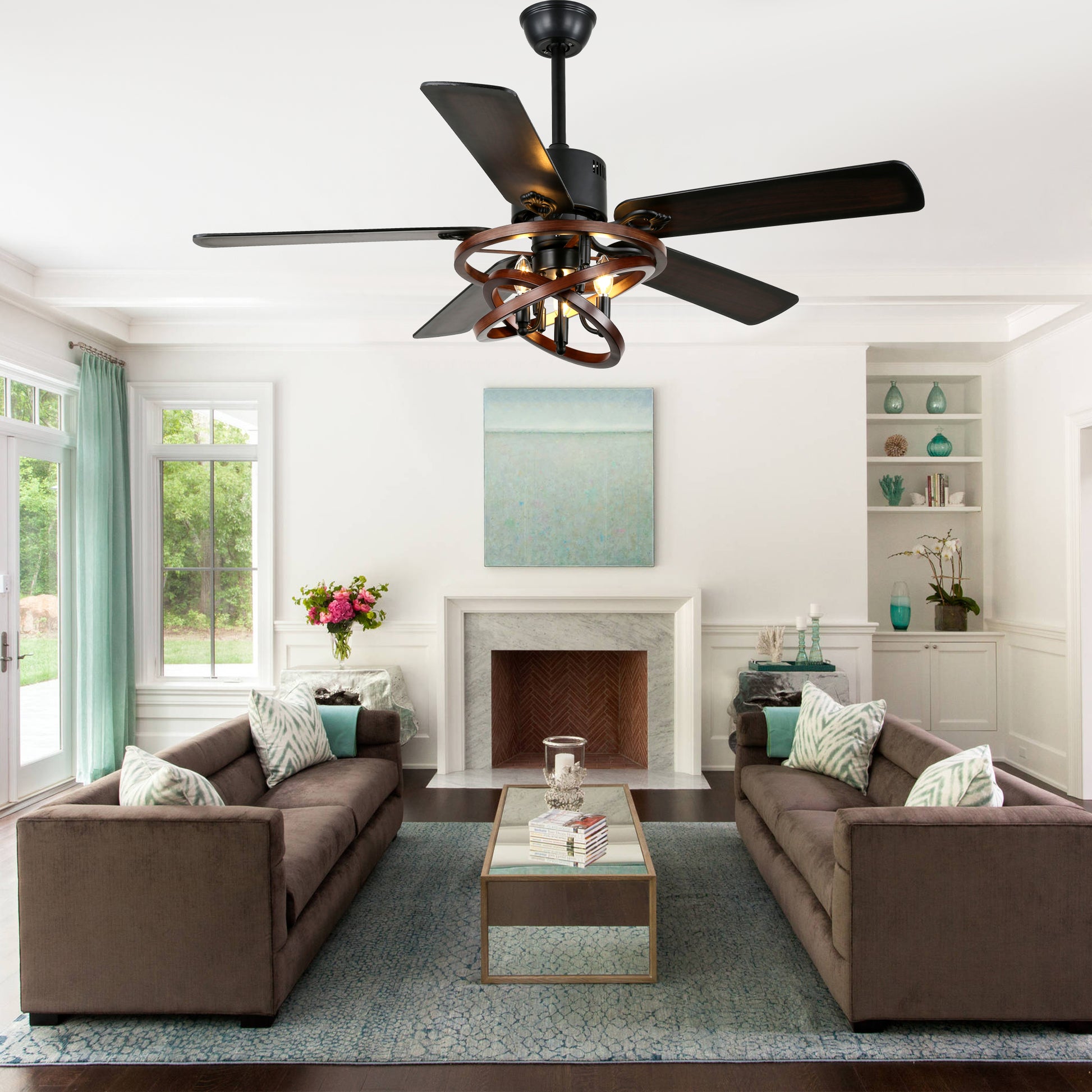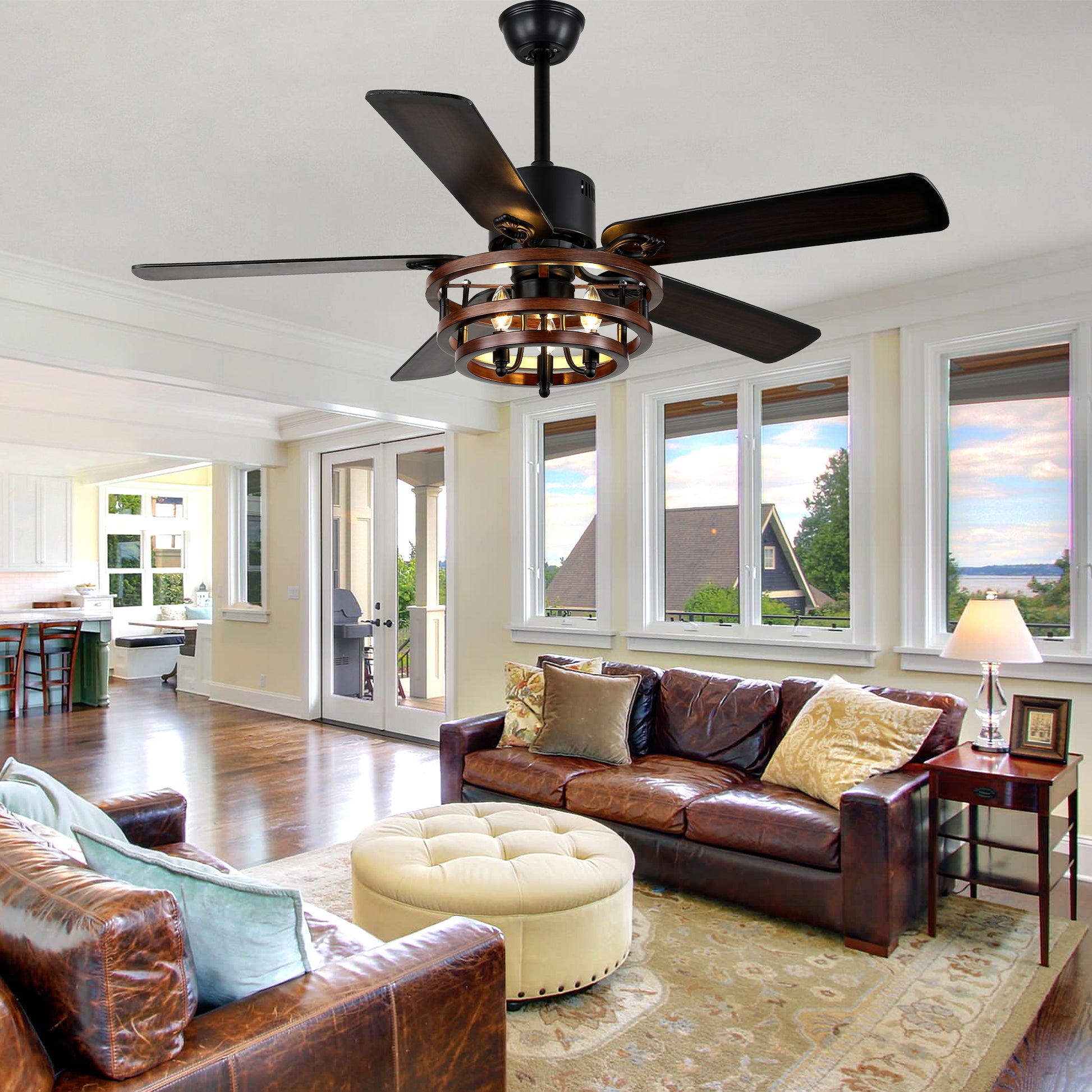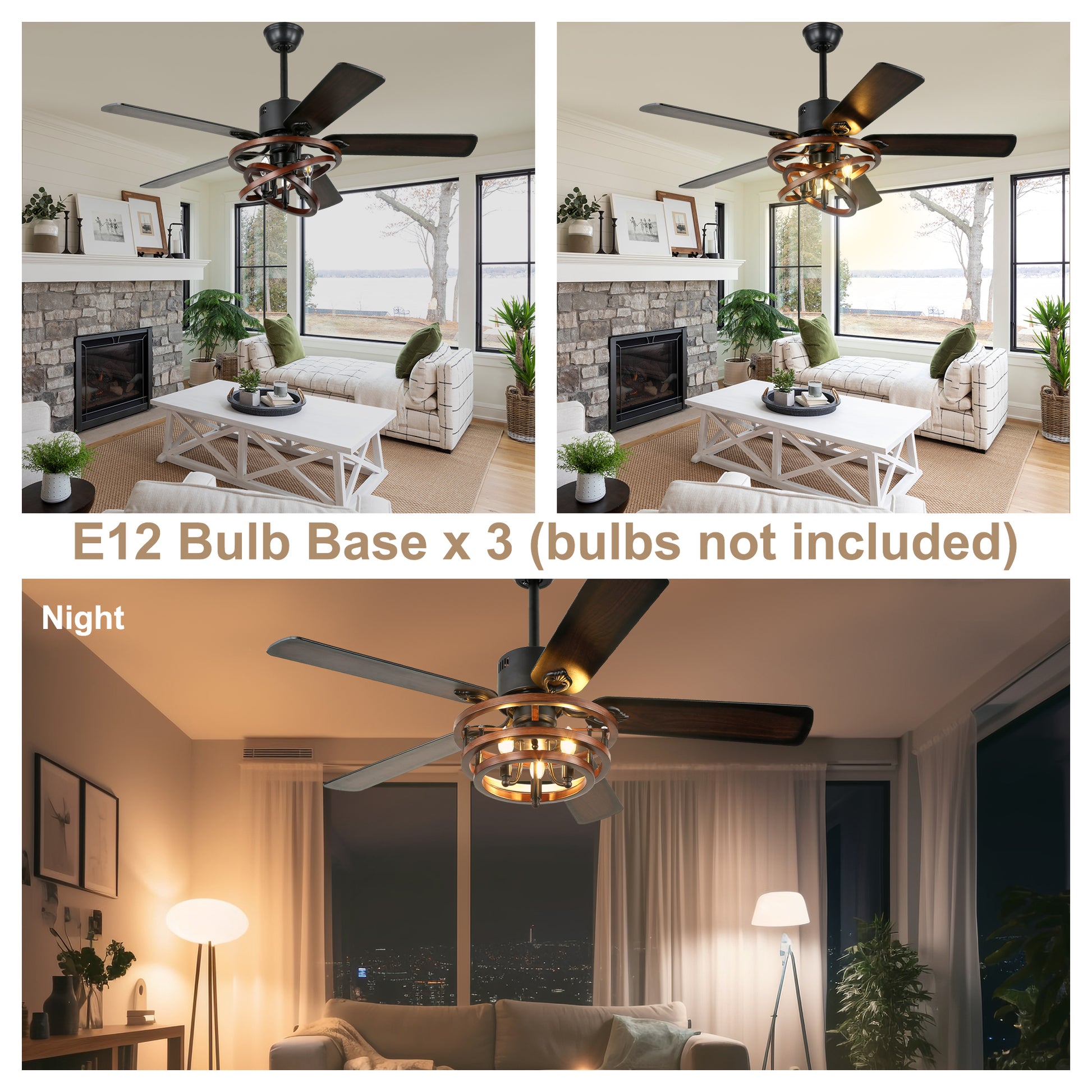DC5219-BellaDepot 52" Farmhouse Brown Ceiling Fan with Remote Control, 5 Blades Standard Ceiling Fan with Lights