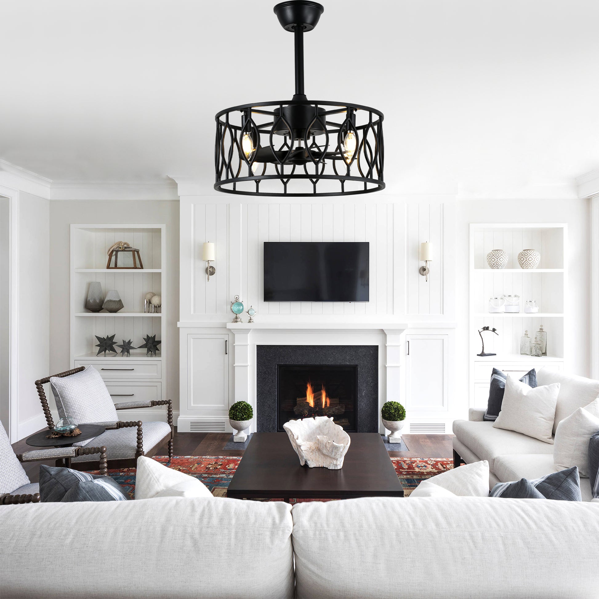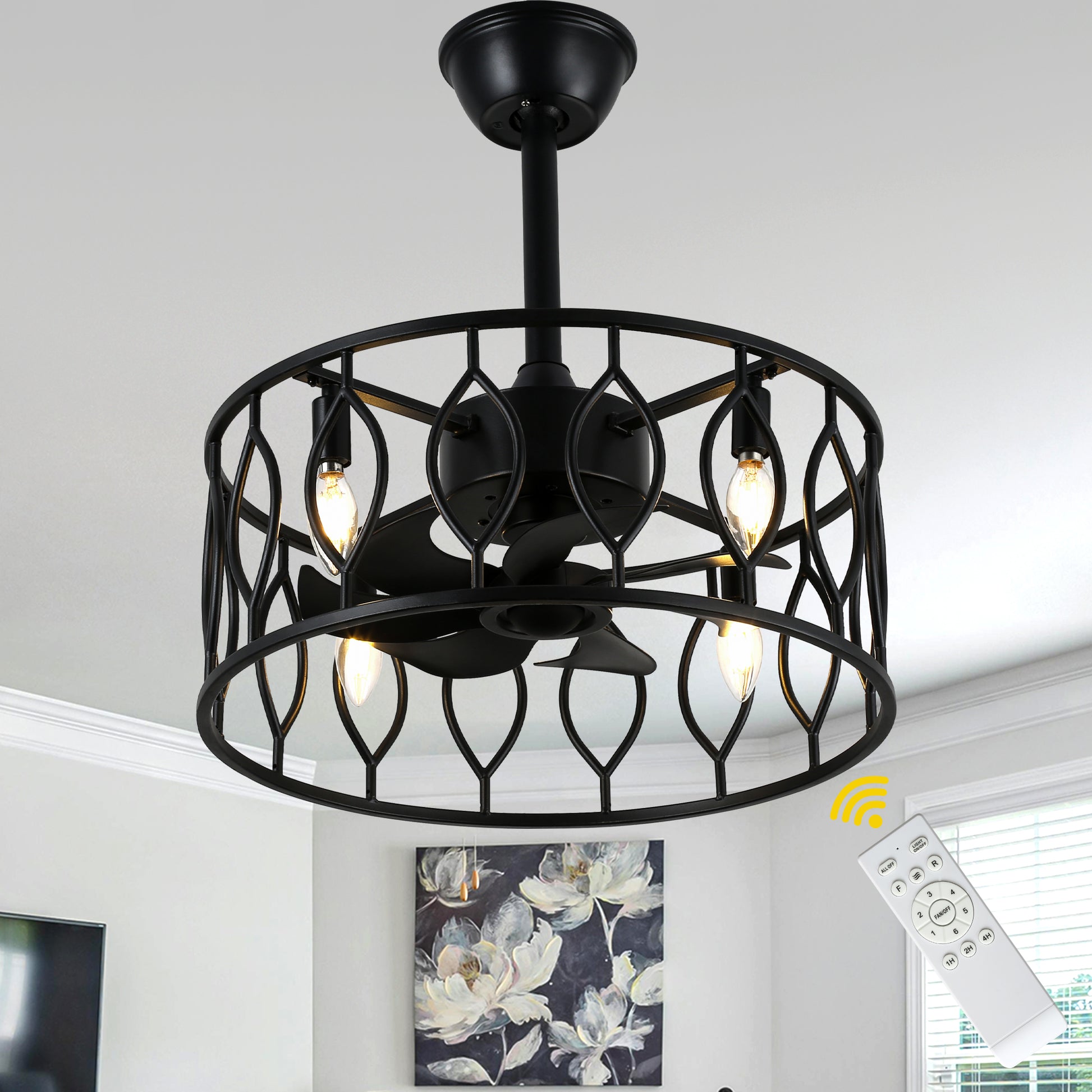 DC255204-BellaDepot 19" Artistic Wrought Iron Cage-Style Mini Ceiling Fan with Lights, Industrial-Style Vintage Creative Home Decor Fan Light