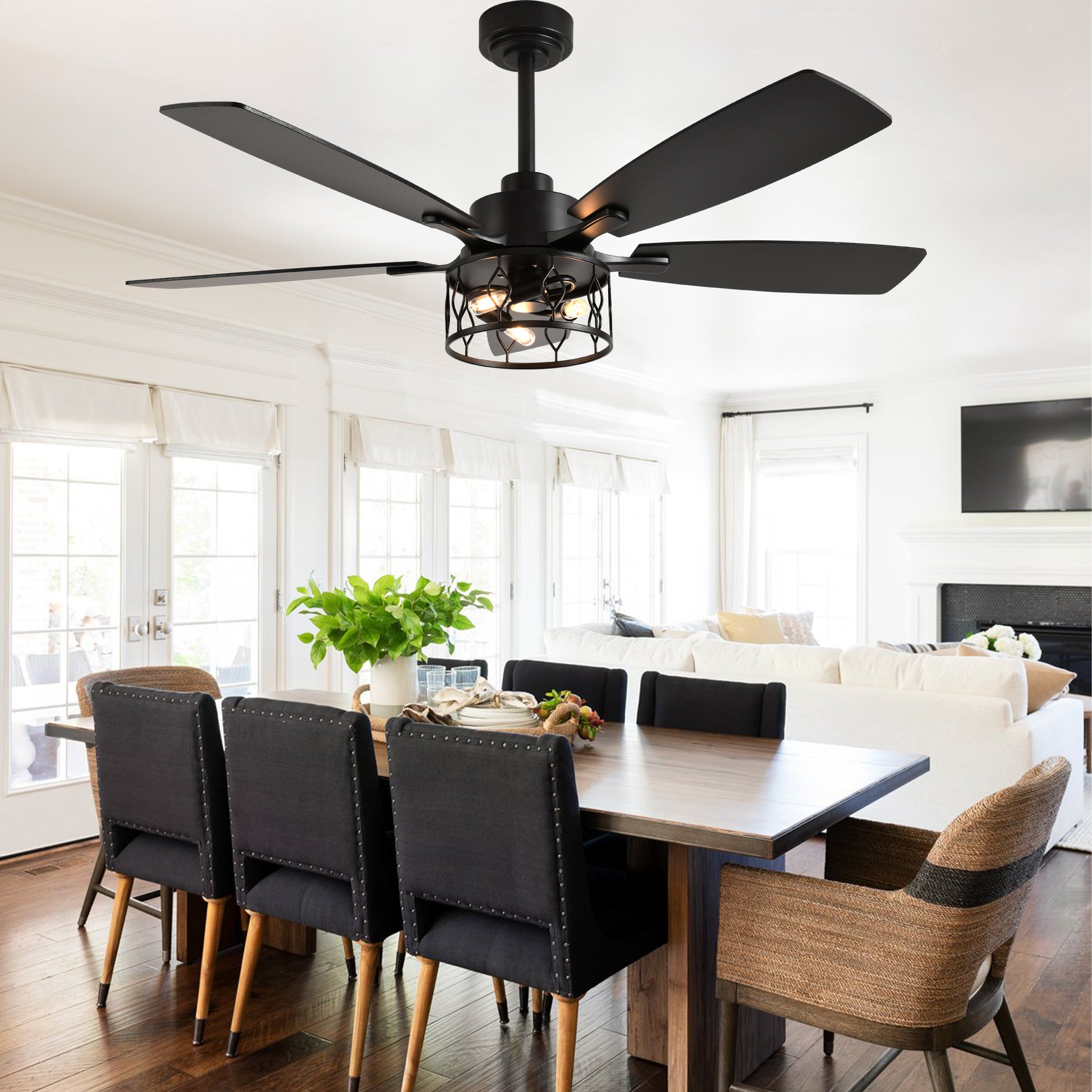 DC255201-B-BellaDepot 52" Designs of Nature's Metal Caged Ceiling Fan, 6 Speeds Remote-controlled Fan with Lights for Any Seasons