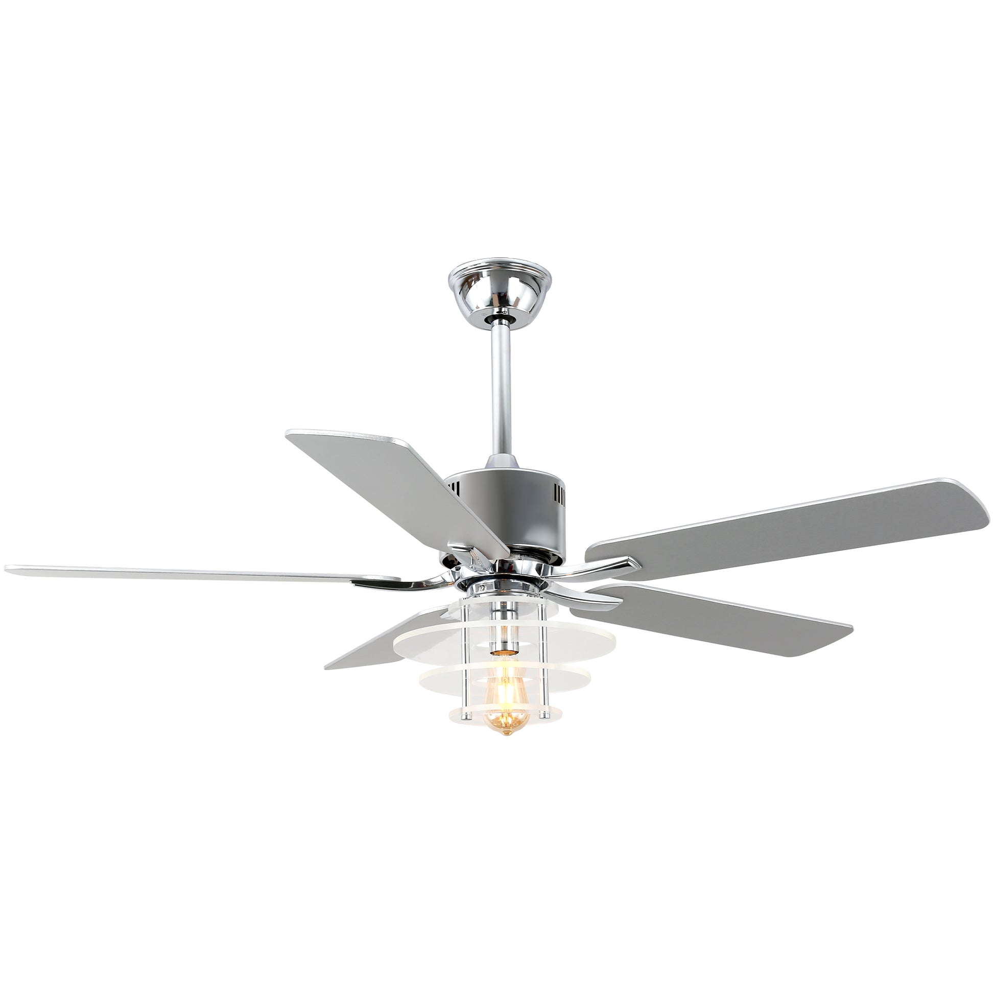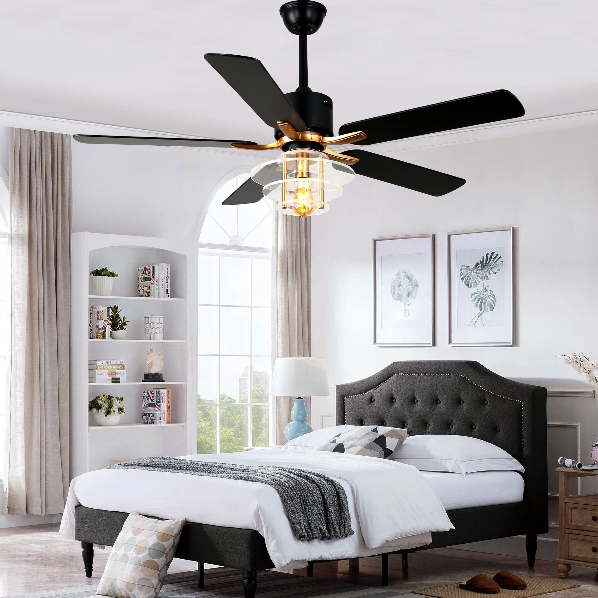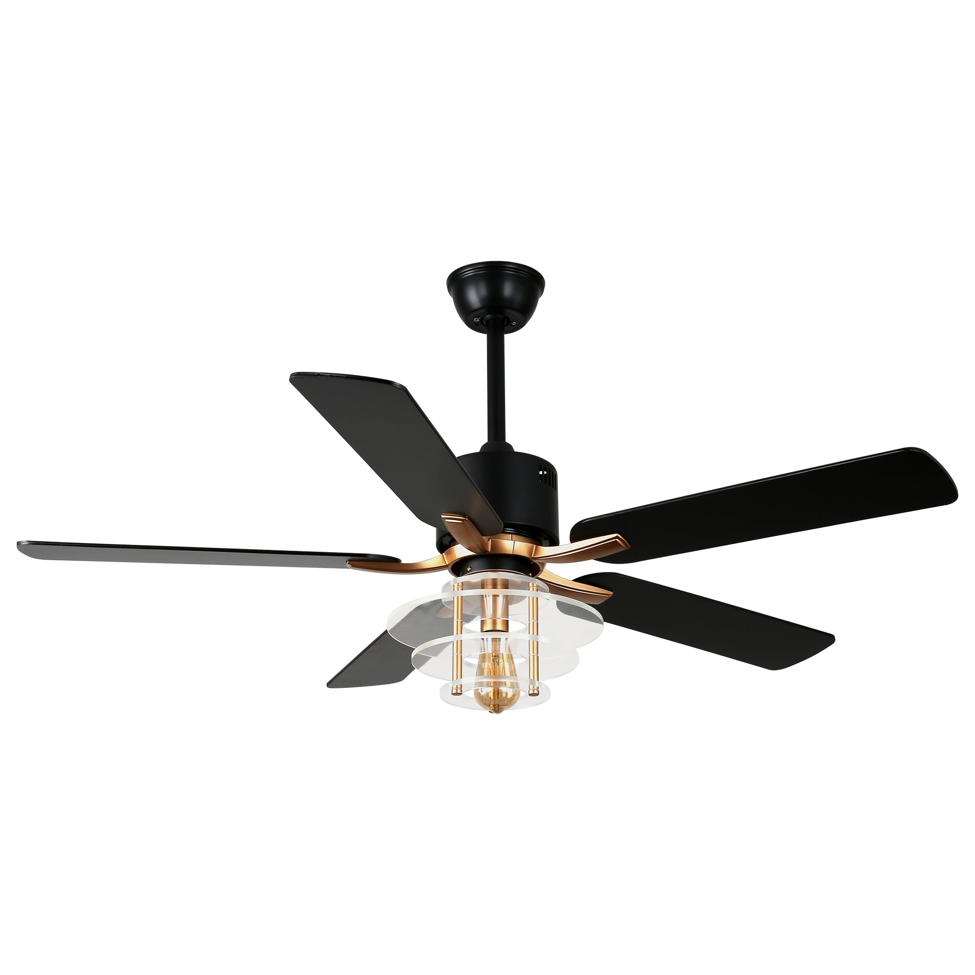 DC5222-B/C-BellaDepot 52" Modern Black or Chrome Acrylic Shade Ceiling Fan with Remote Control, 5 Blades Standard Ceiling Fan with Lights
