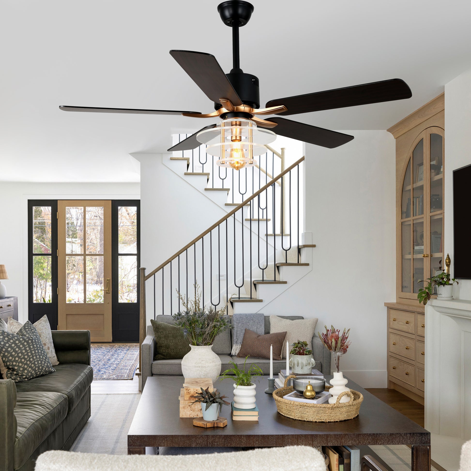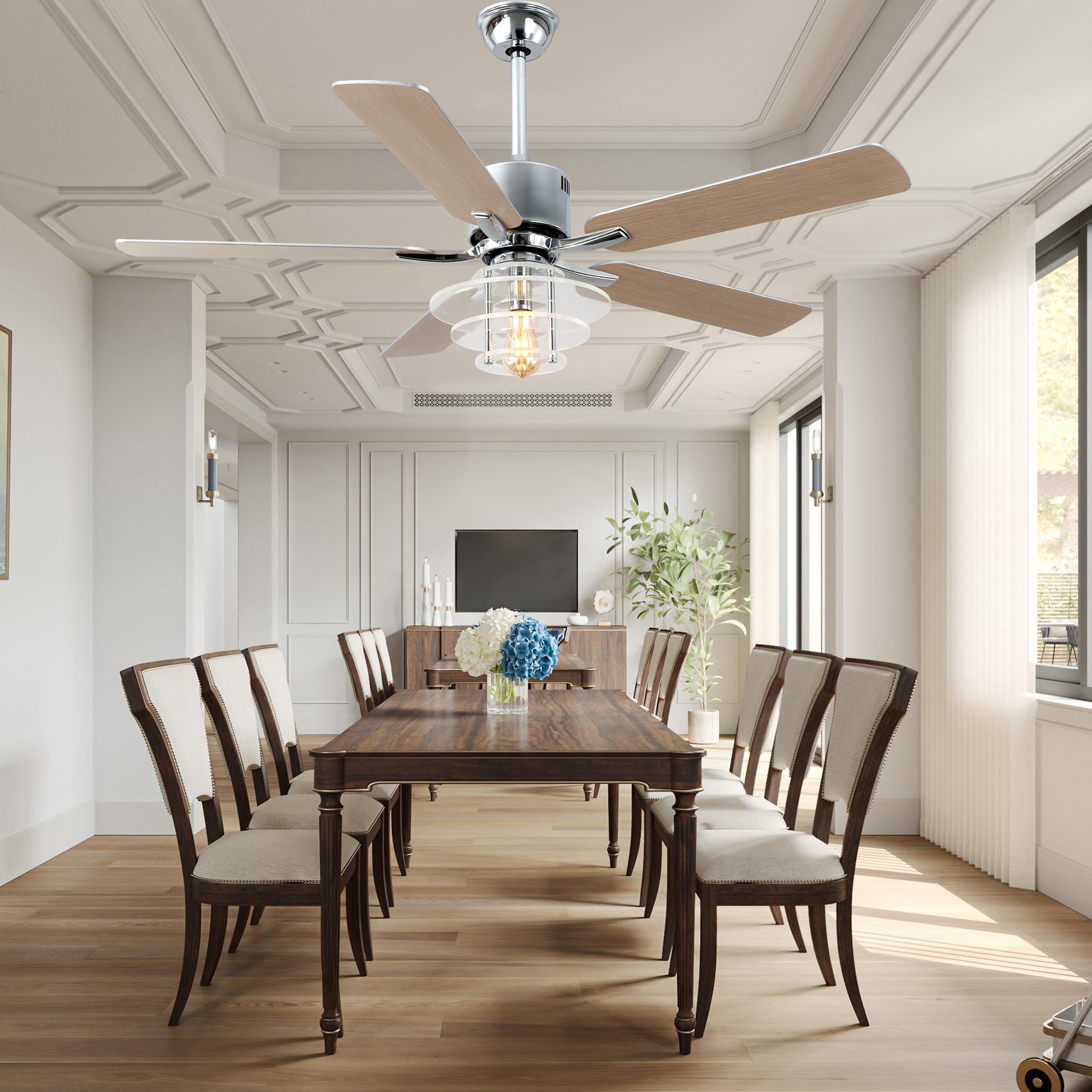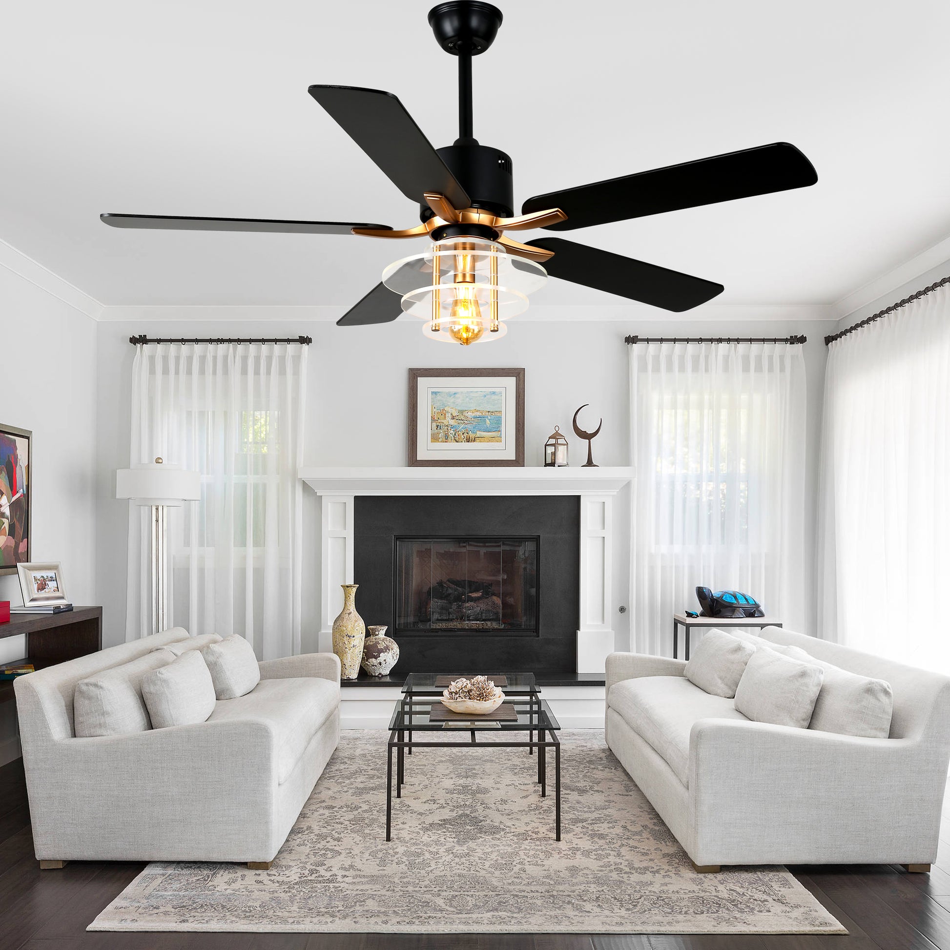 DC5222-B/C-BellaDepot 52" Modern Black or Chrome Acrylic Shade Ceiling Fan with Remote Control, 5 Blades Standard Ceiling Fan with Lights