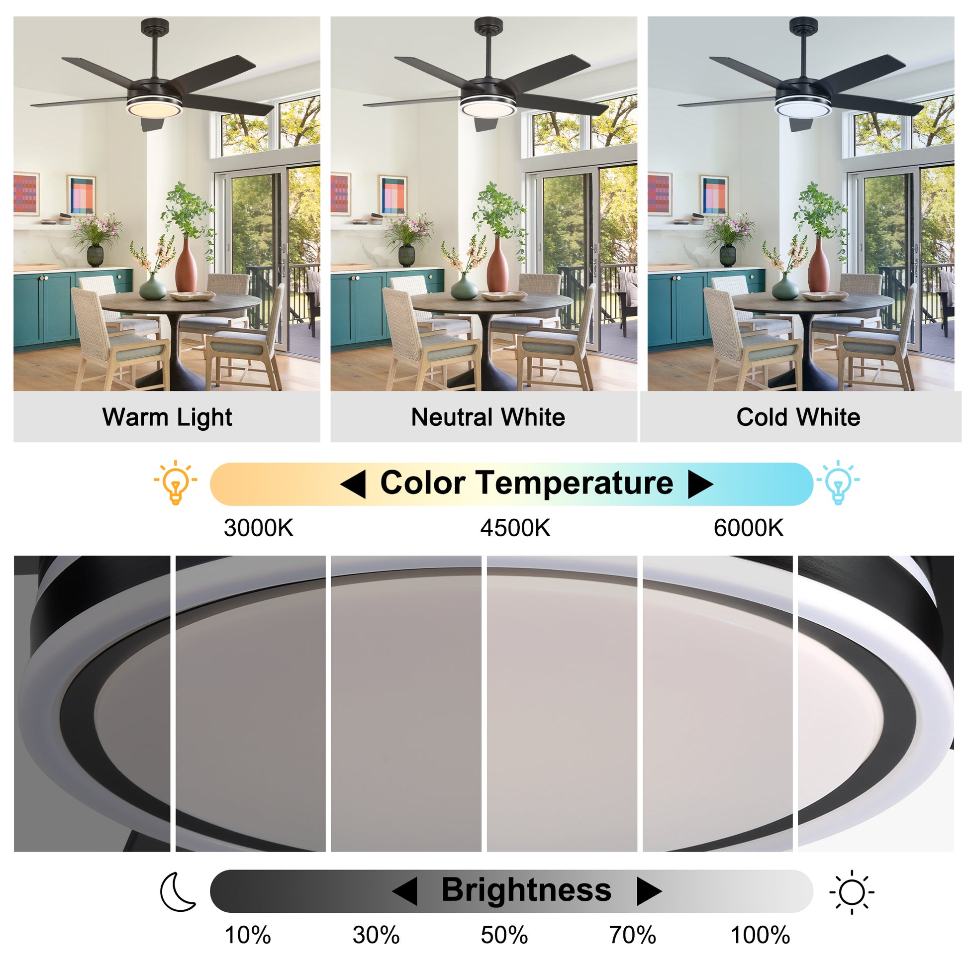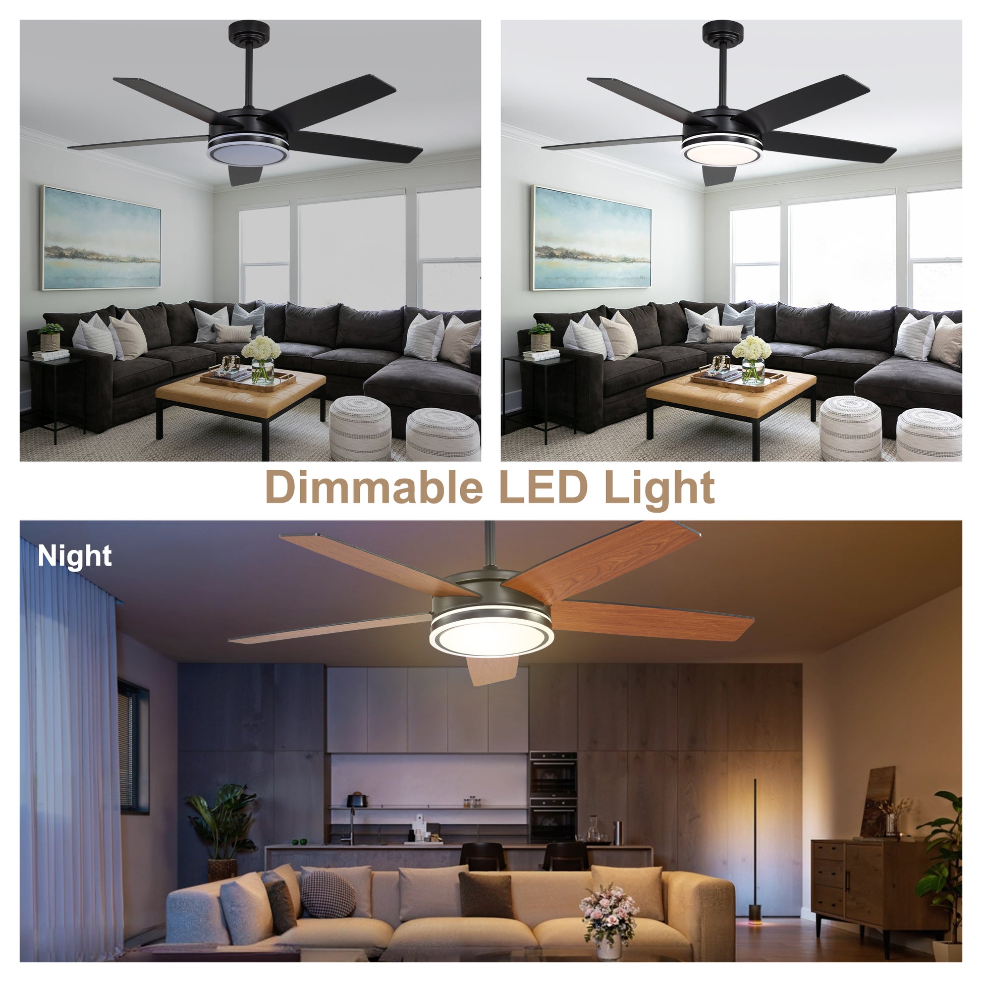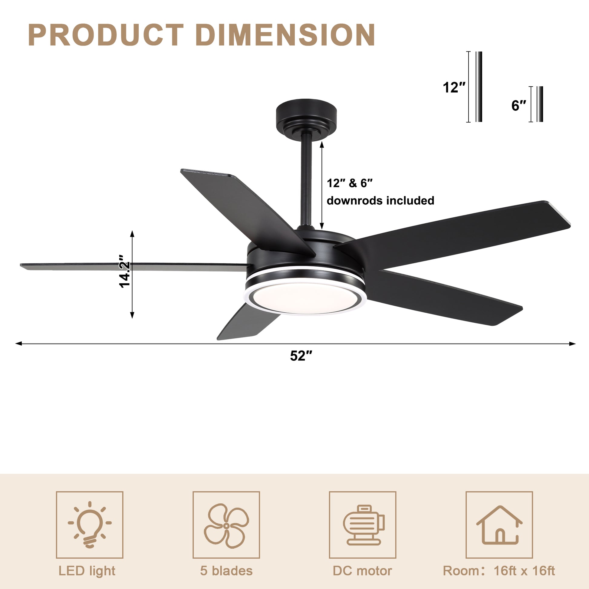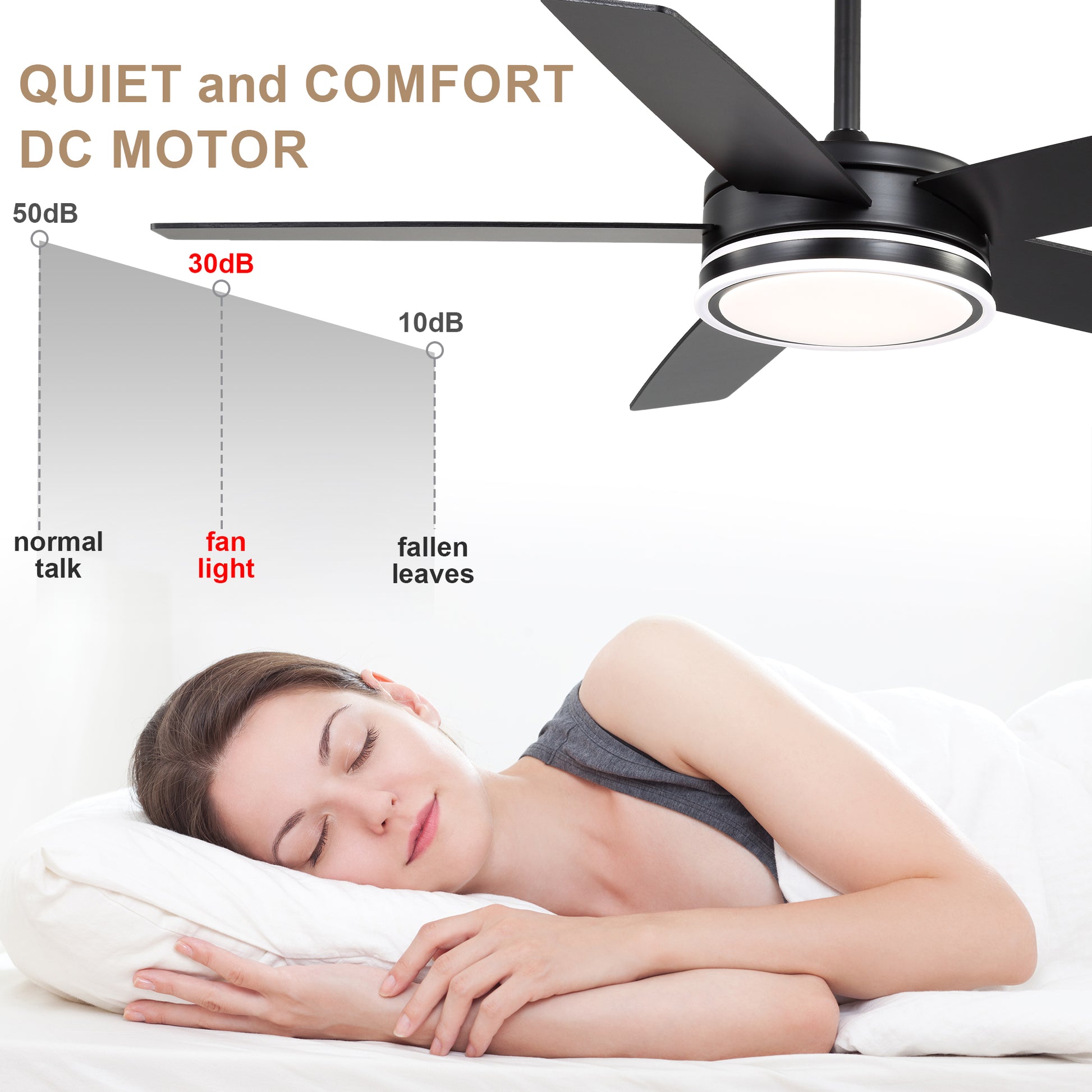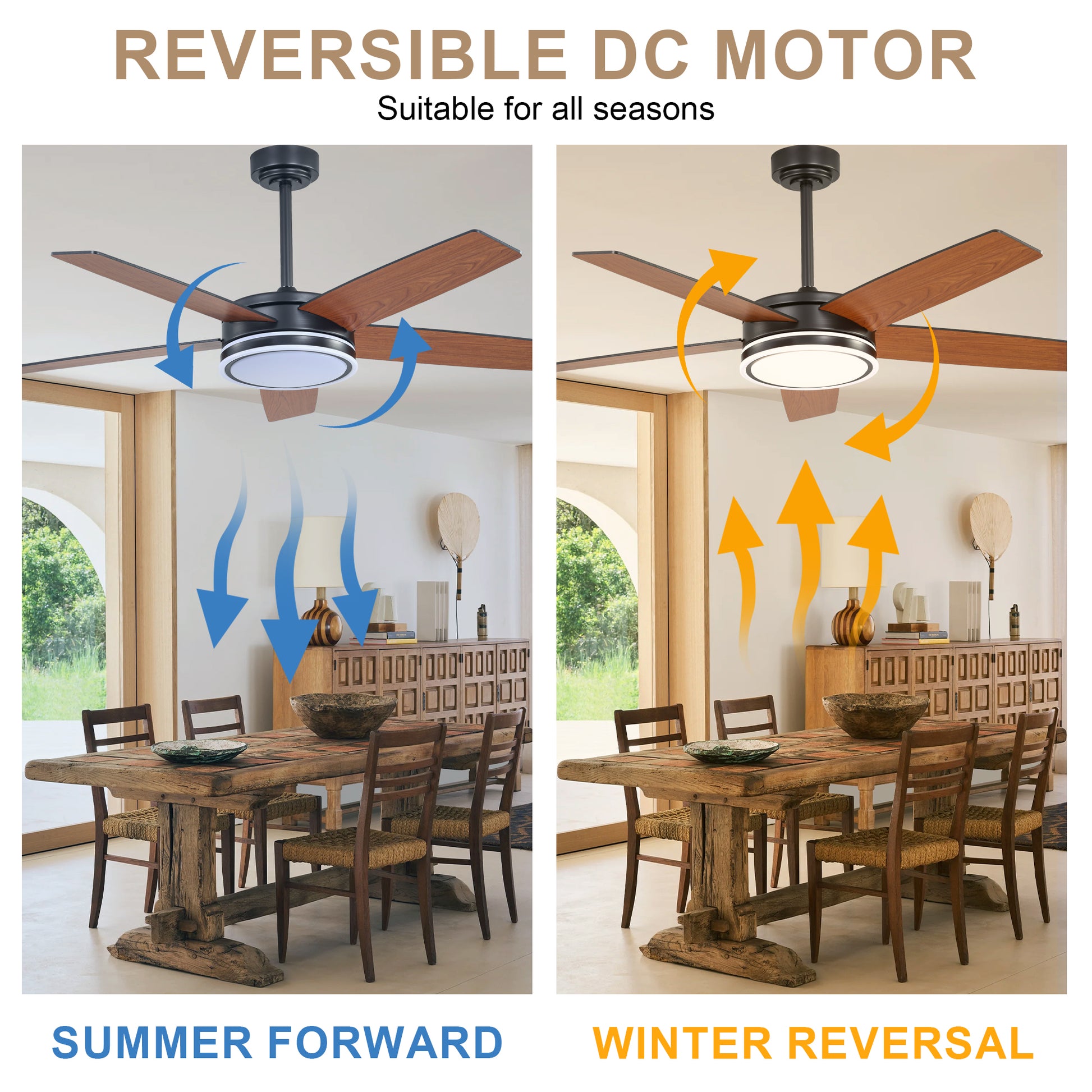 DC5225-B/C-BellaDepot 52" Modern Contemporary Black or Chrome LED Ceiling Fan with Remote Control and Lights, Reversible 6 Speeds Ceiling Fan for All Seasons