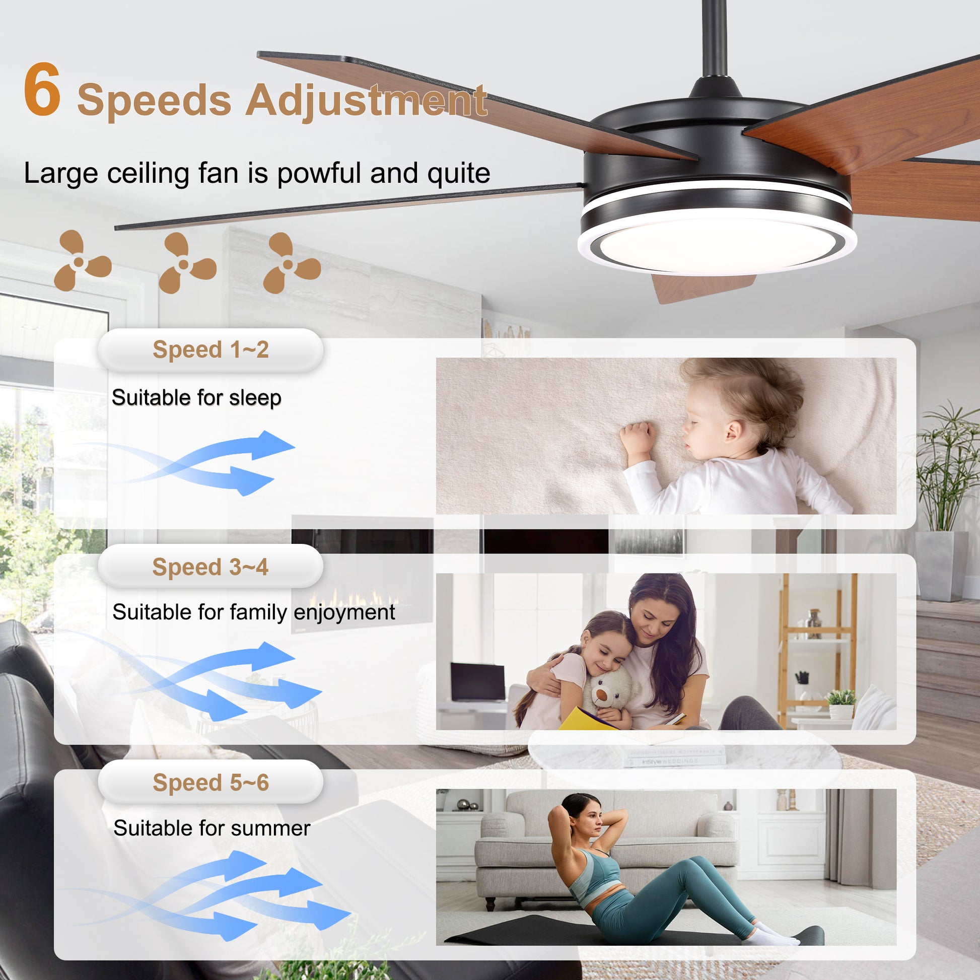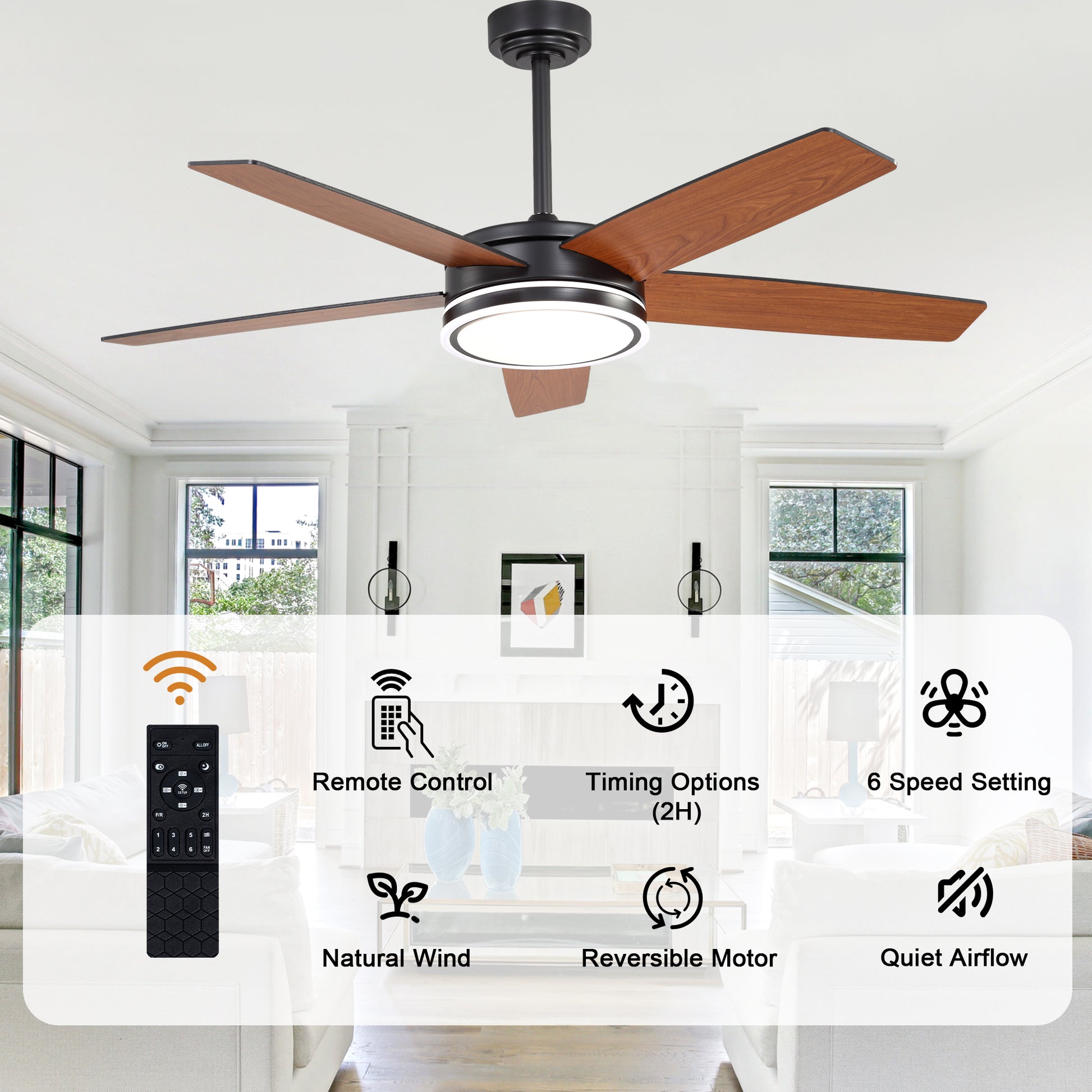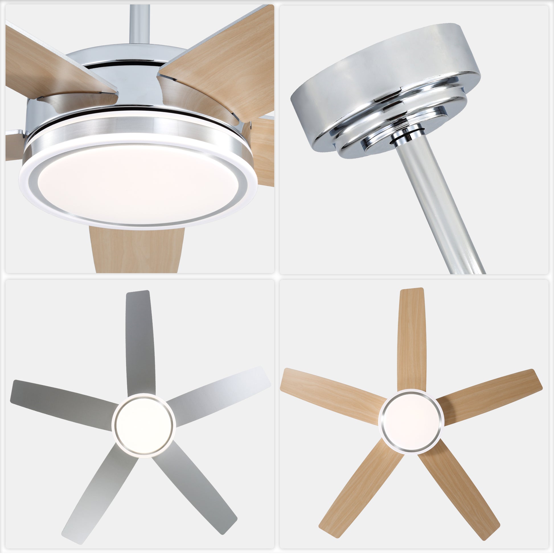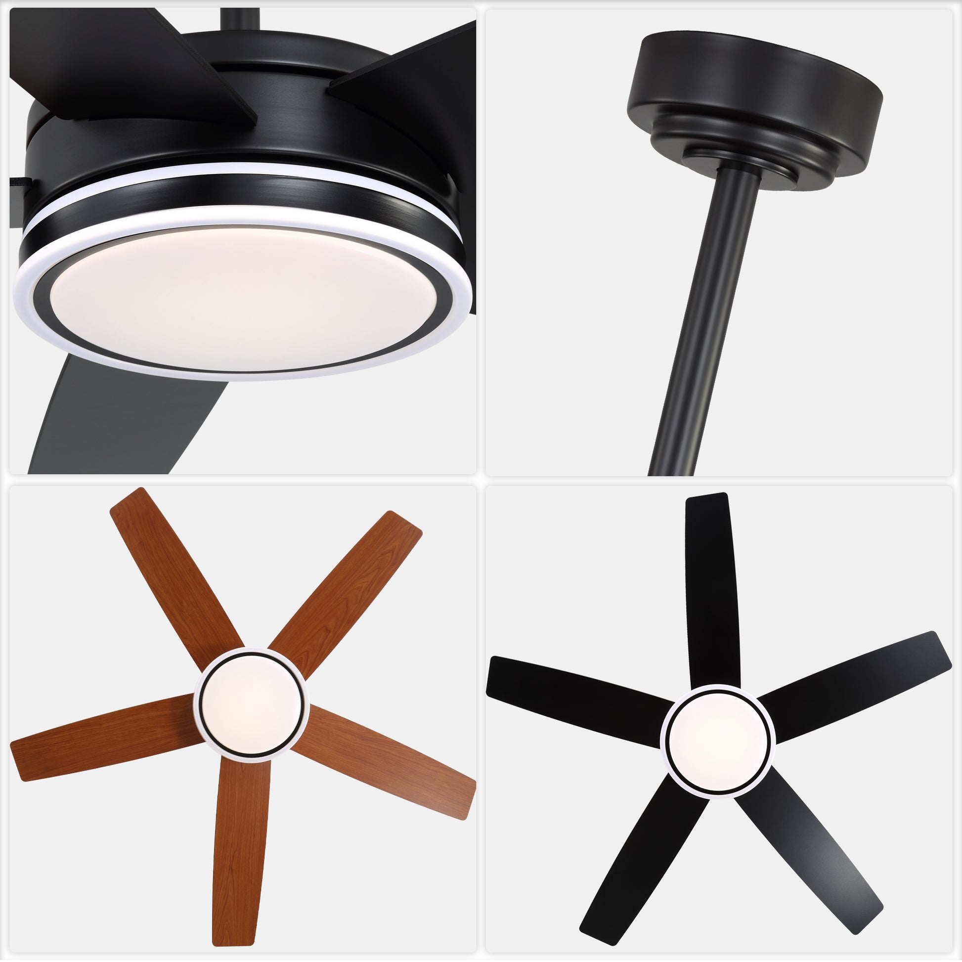 DC5225-B/C-BellaDepot 52" Modern Contemporary Black or Chrome LED Ceiling Fan with Remote Control and Lights, Reversible 6 Speeds Ceiling Fan for All Seasons