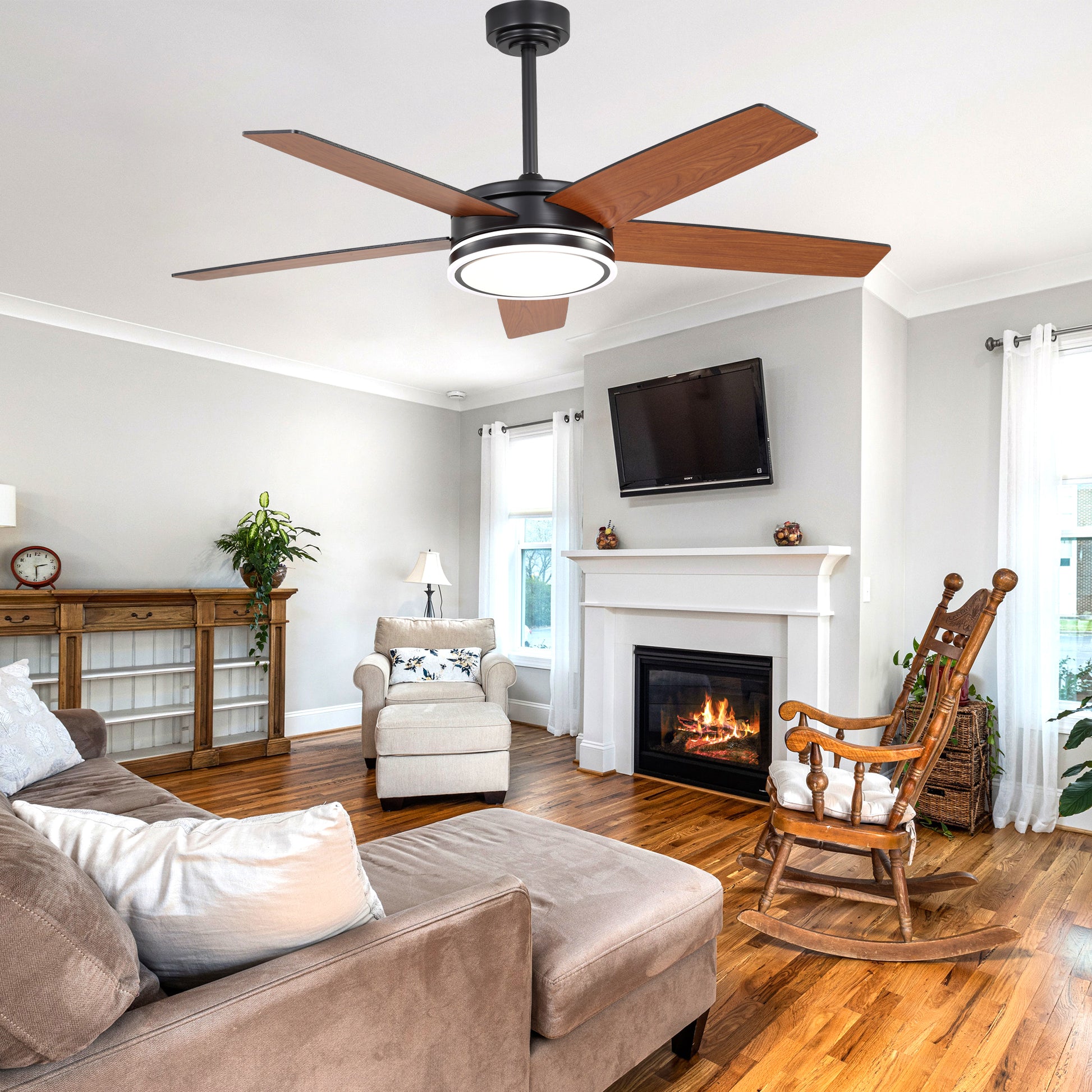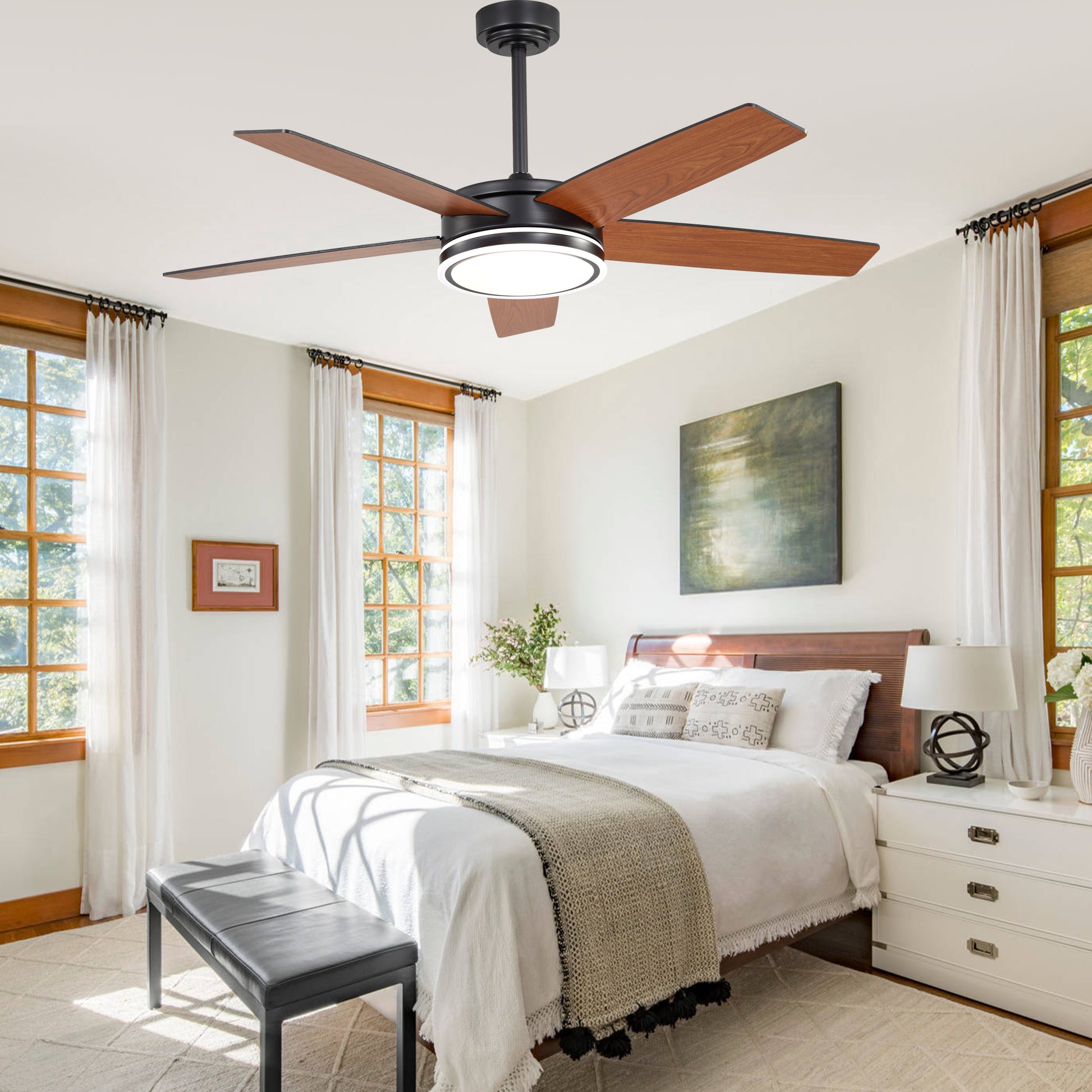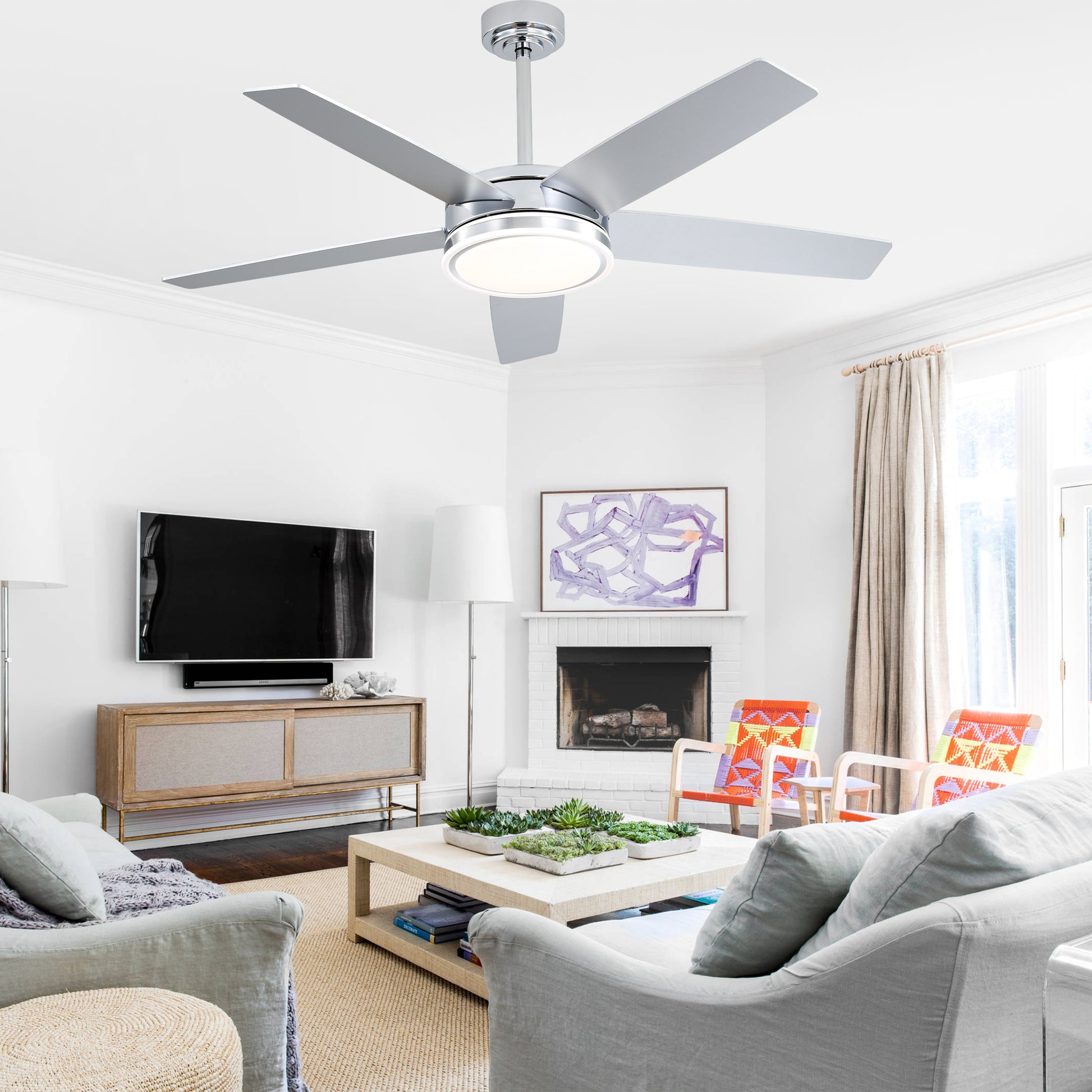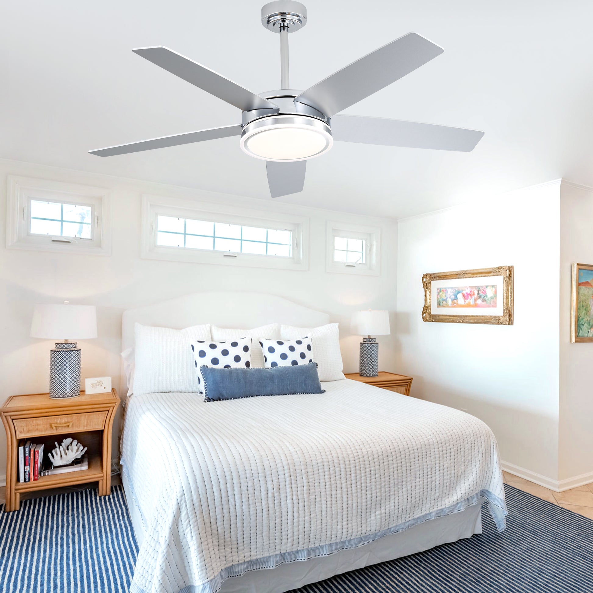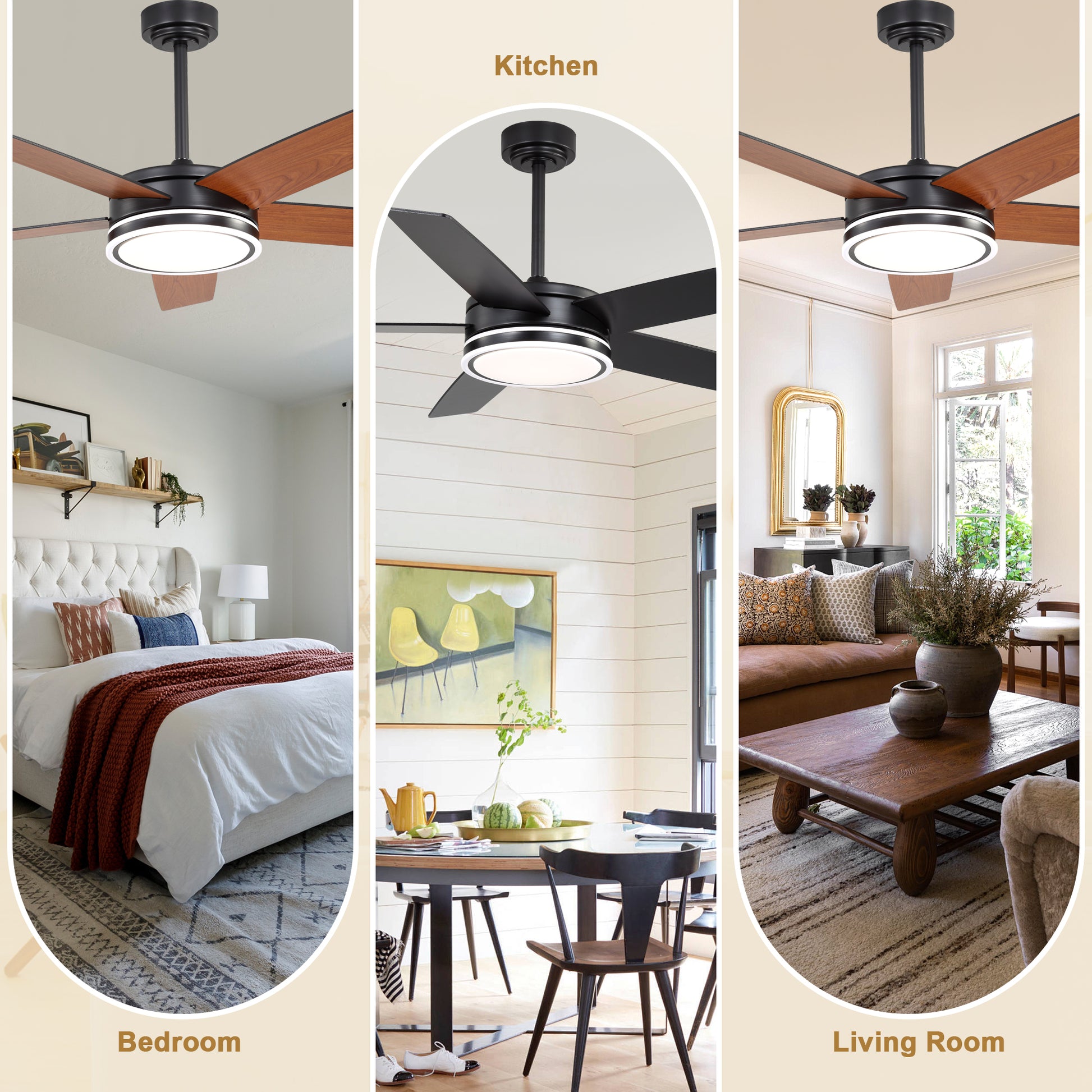 DC5225-B/C-BellaDepot 52" Modern Contemporary Black or Chrome LED Ceiling Fan with Remote Control and Lights, Reversible 6 Speeds Ceiling Fan for All Seasons