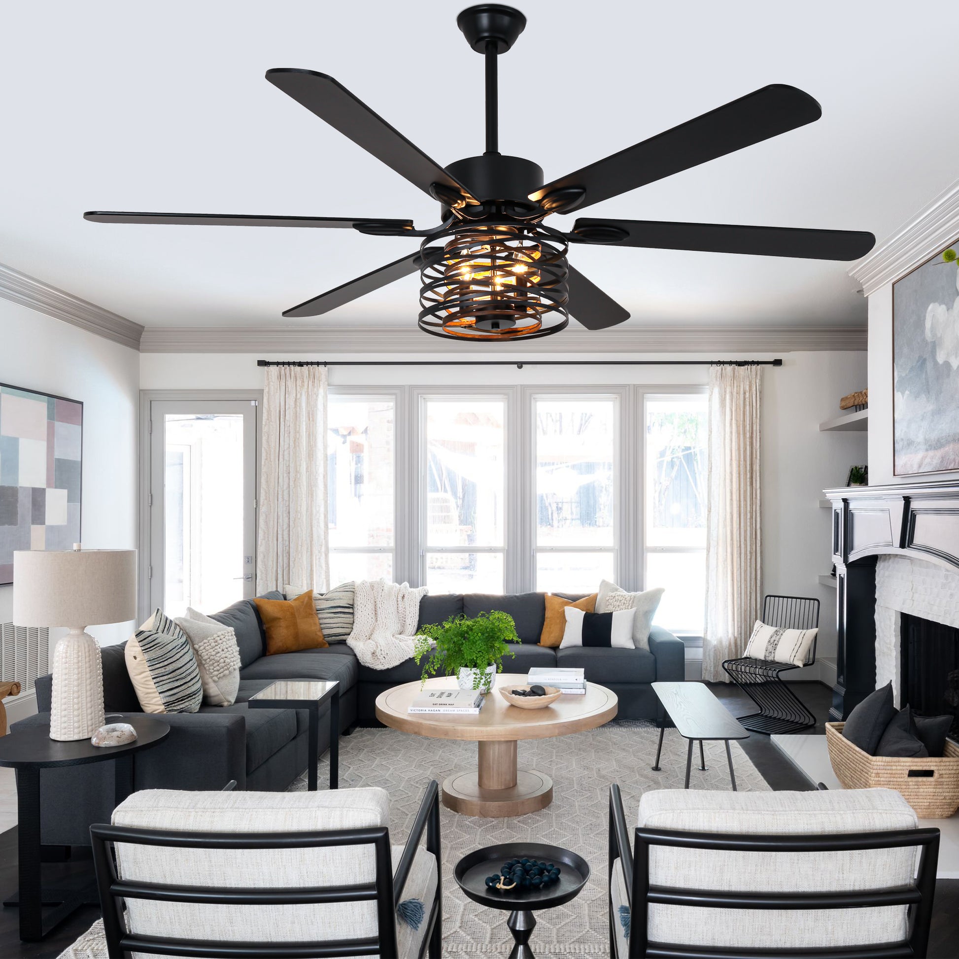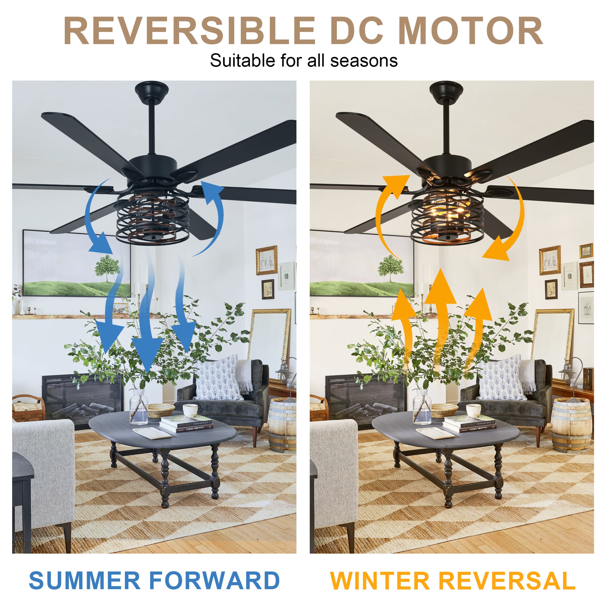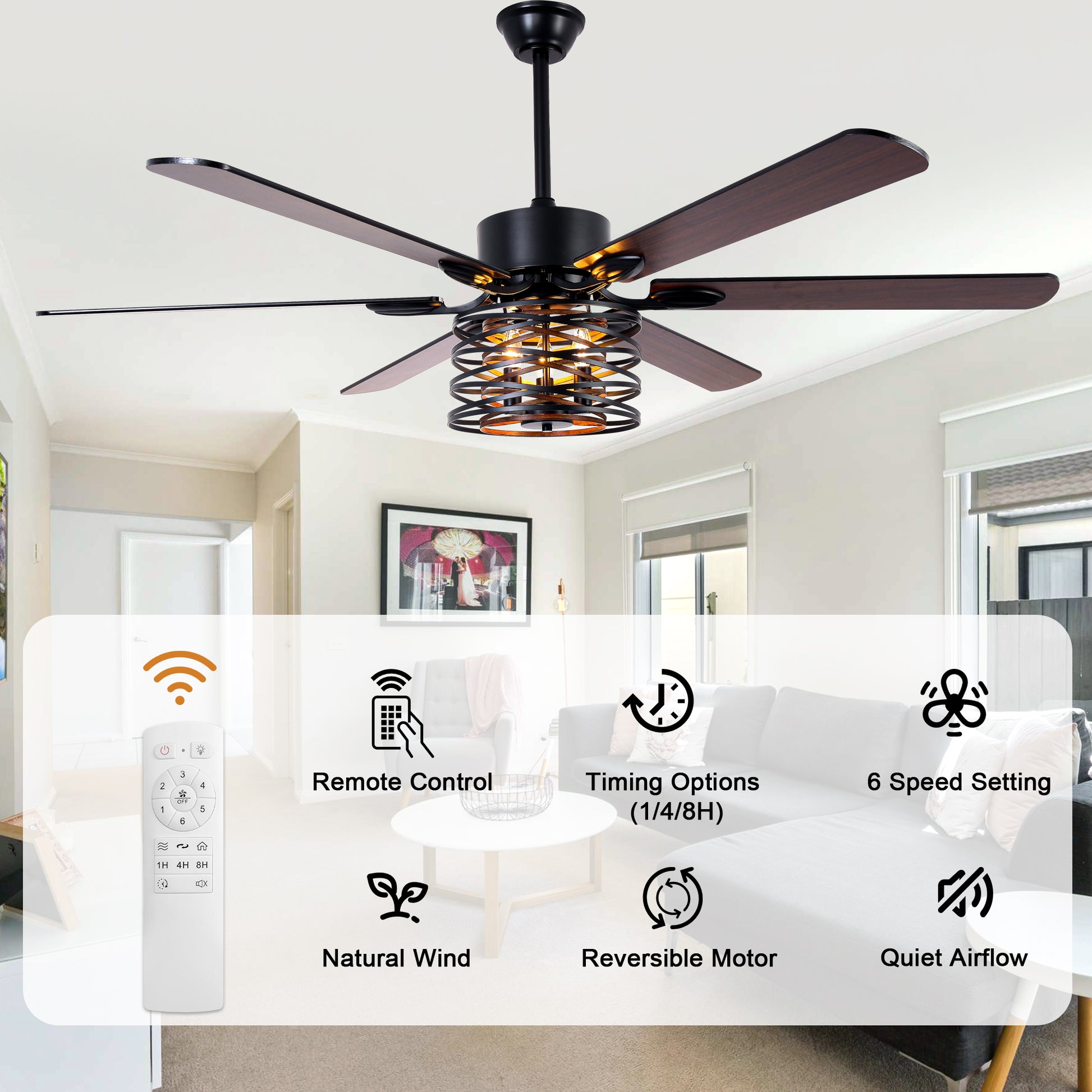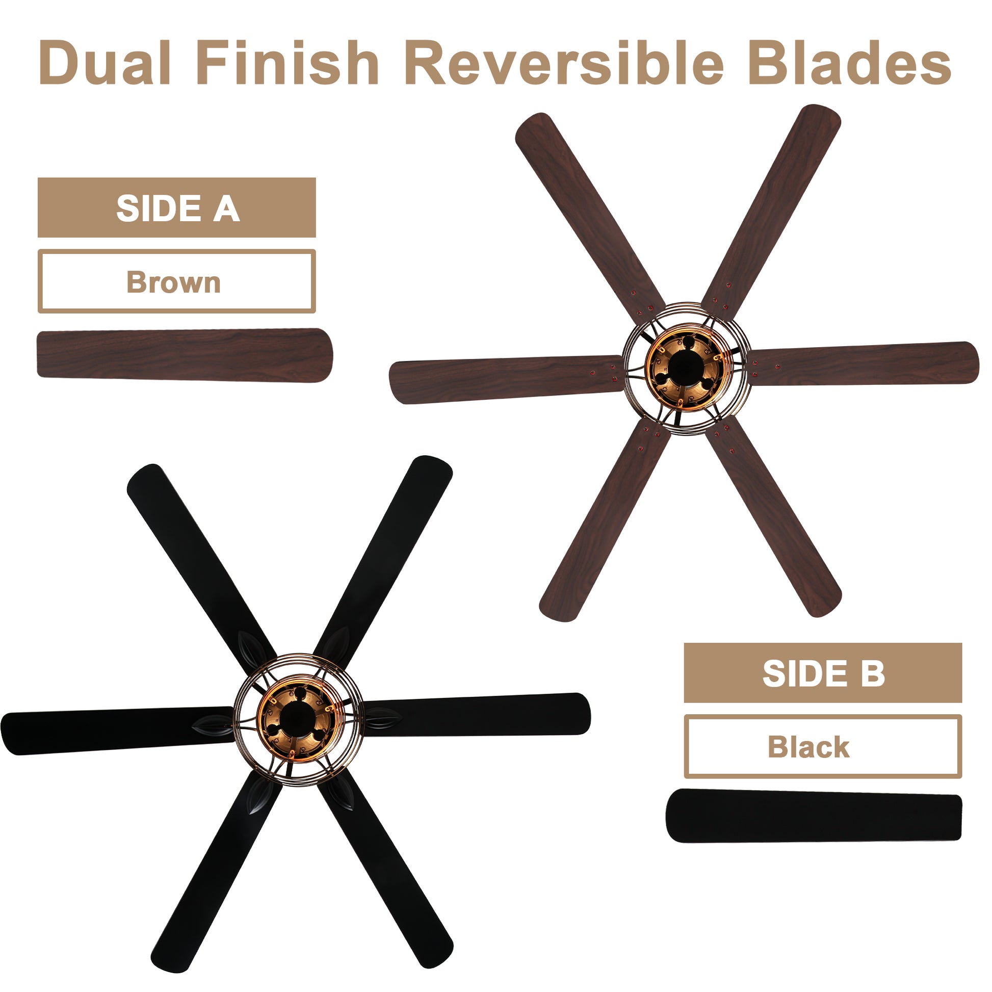 - (Fan blade color: front: black, reverse: wood grain)