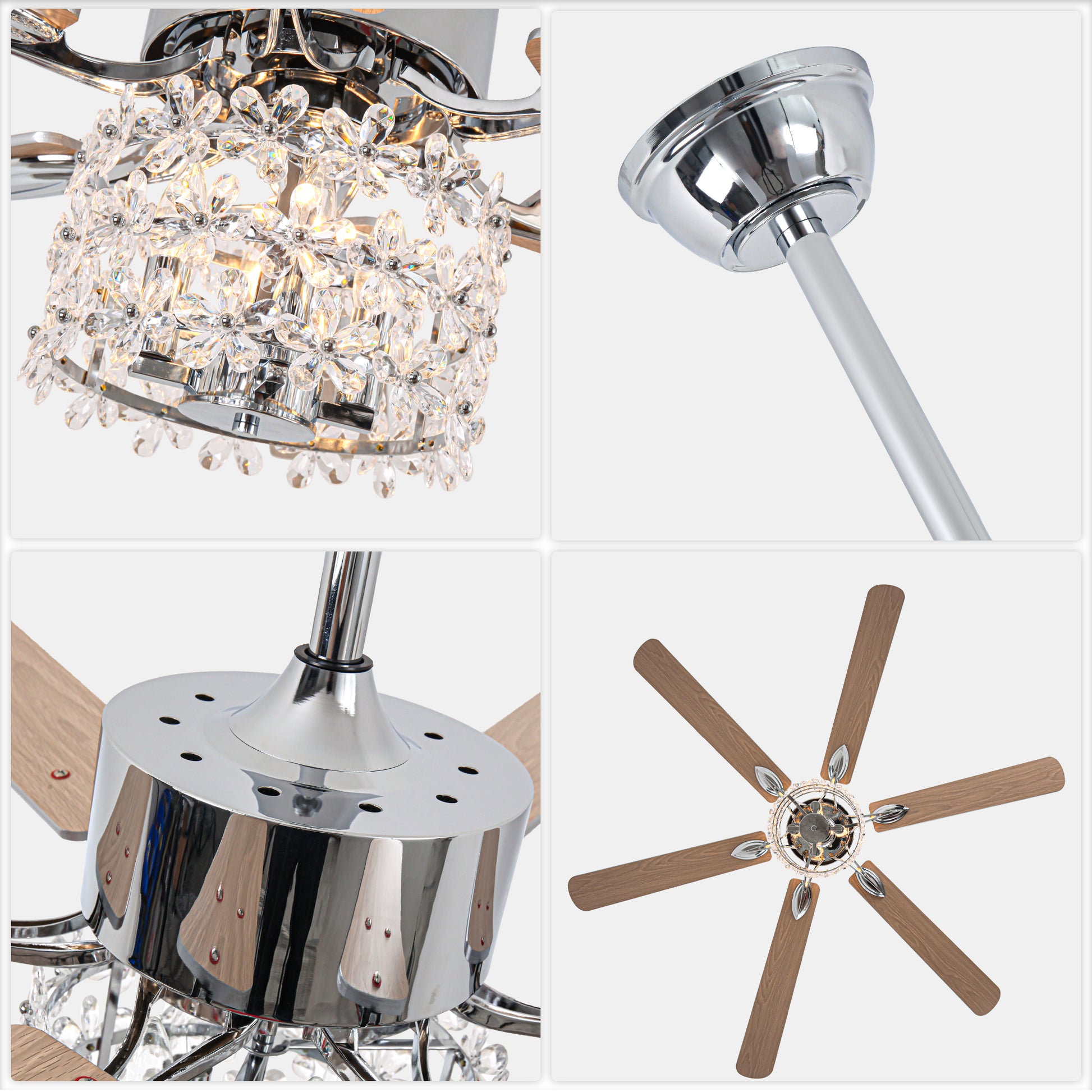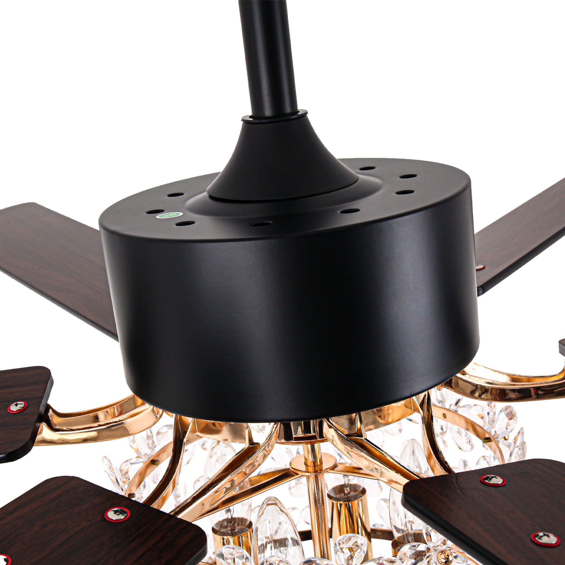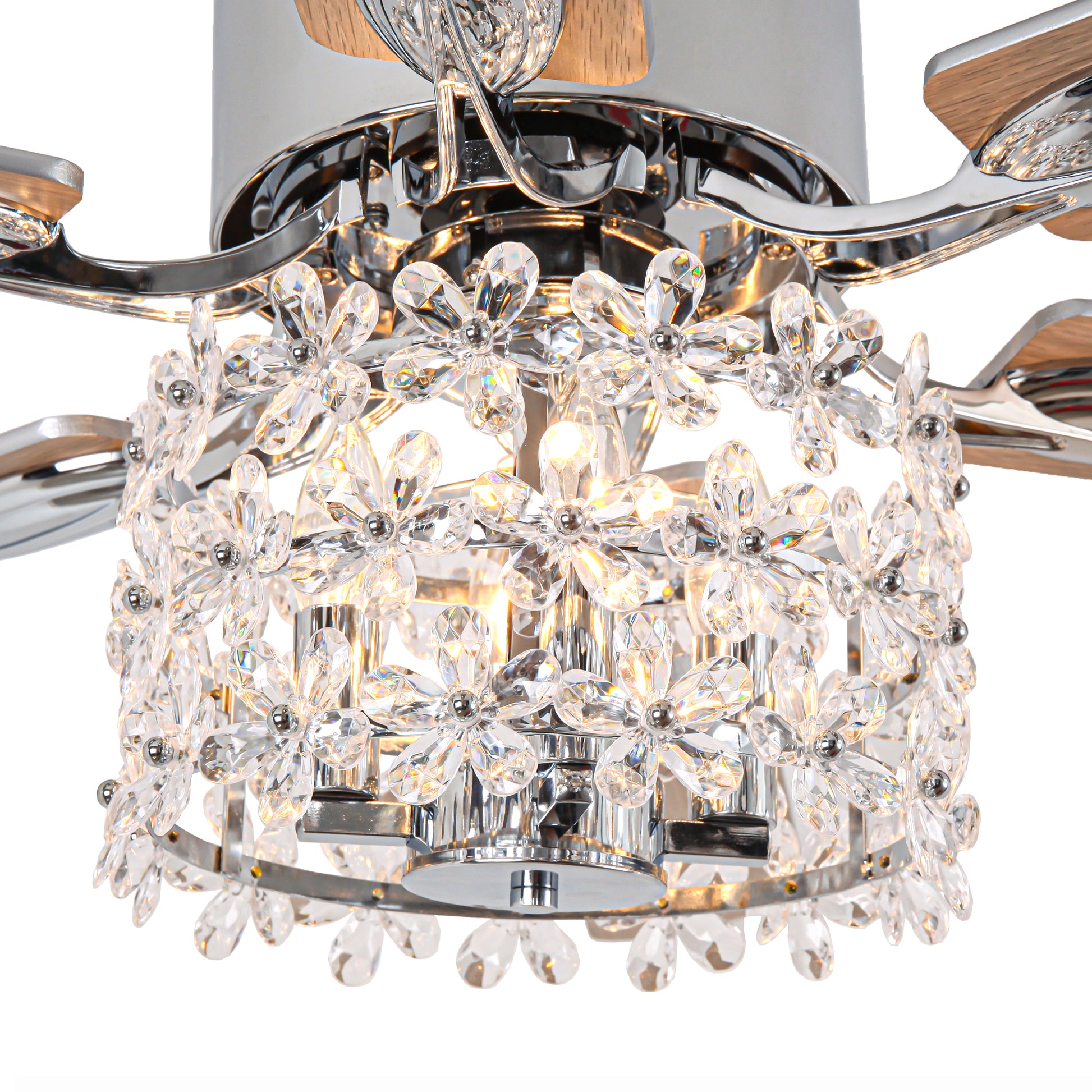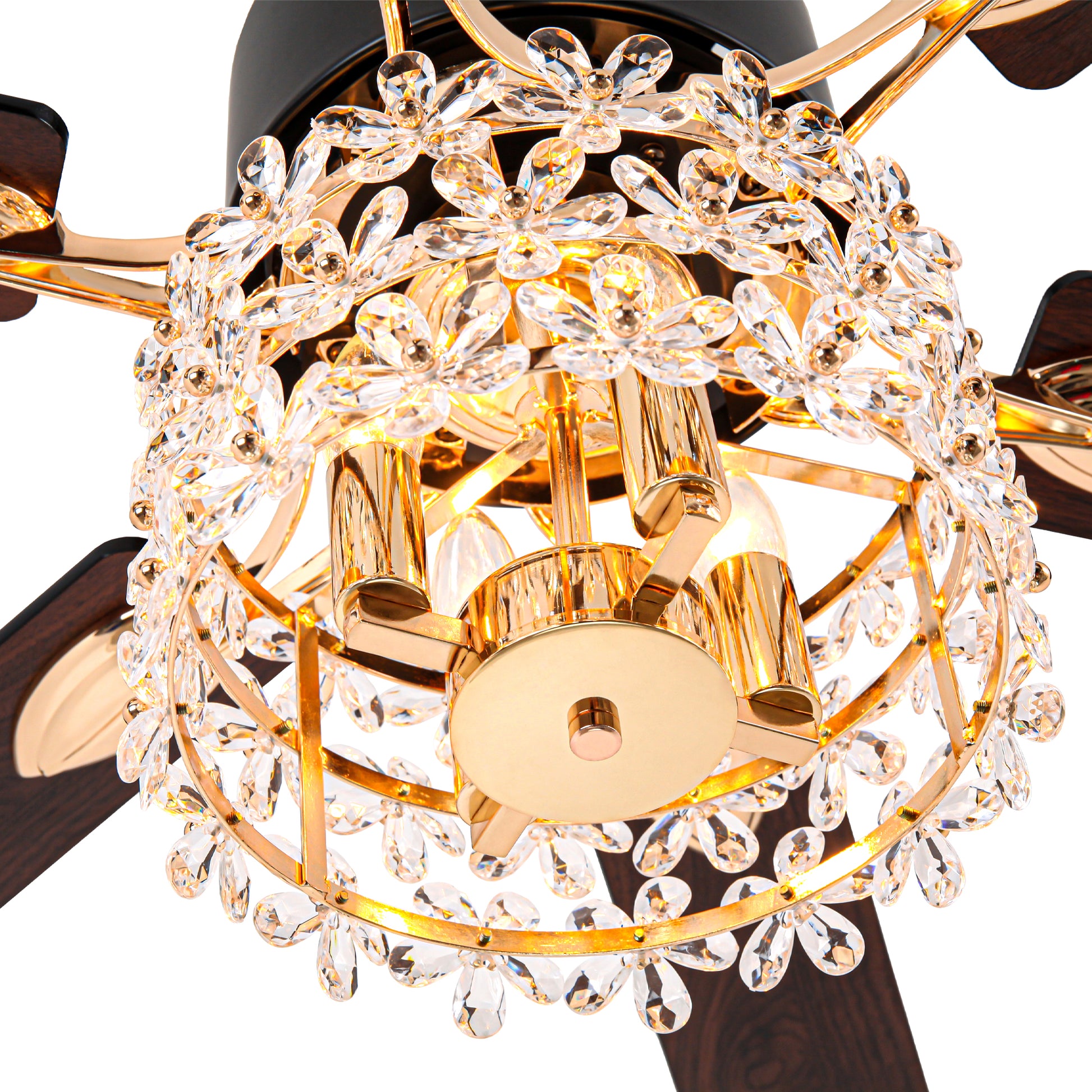 - Material: Iron + crystal + plywood fan blades