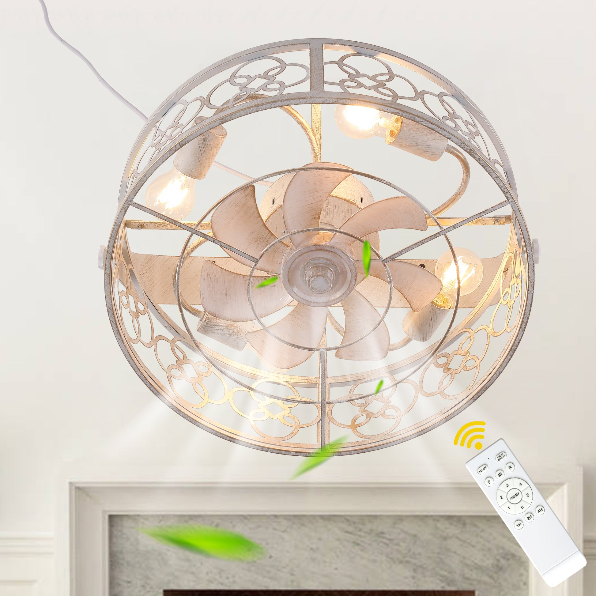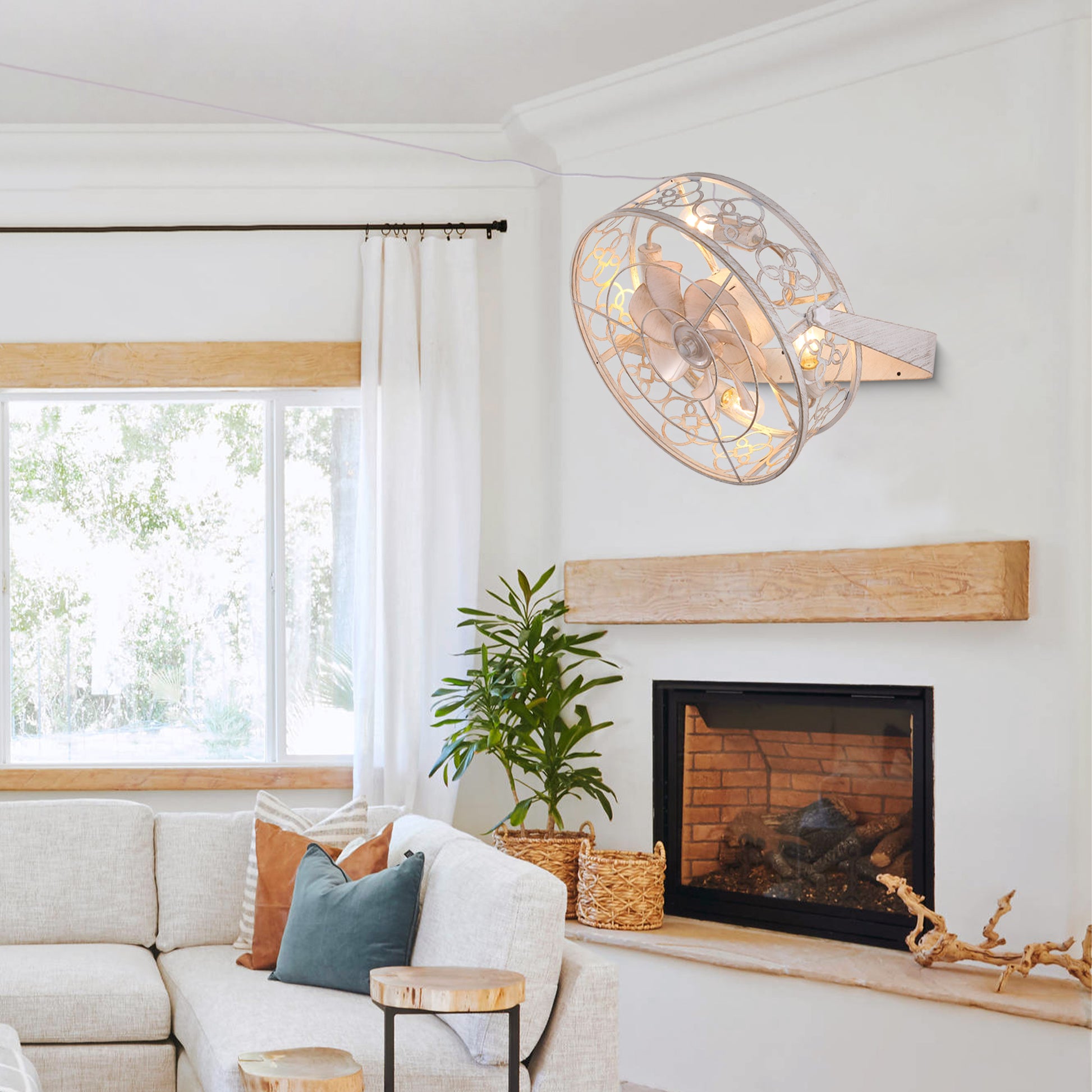 DC2036-BellaDepot 23" Metal Caged Ceiling Fan with Remote Control, Wall Mounted or Ceiling Mounted Fan with Bulb Base