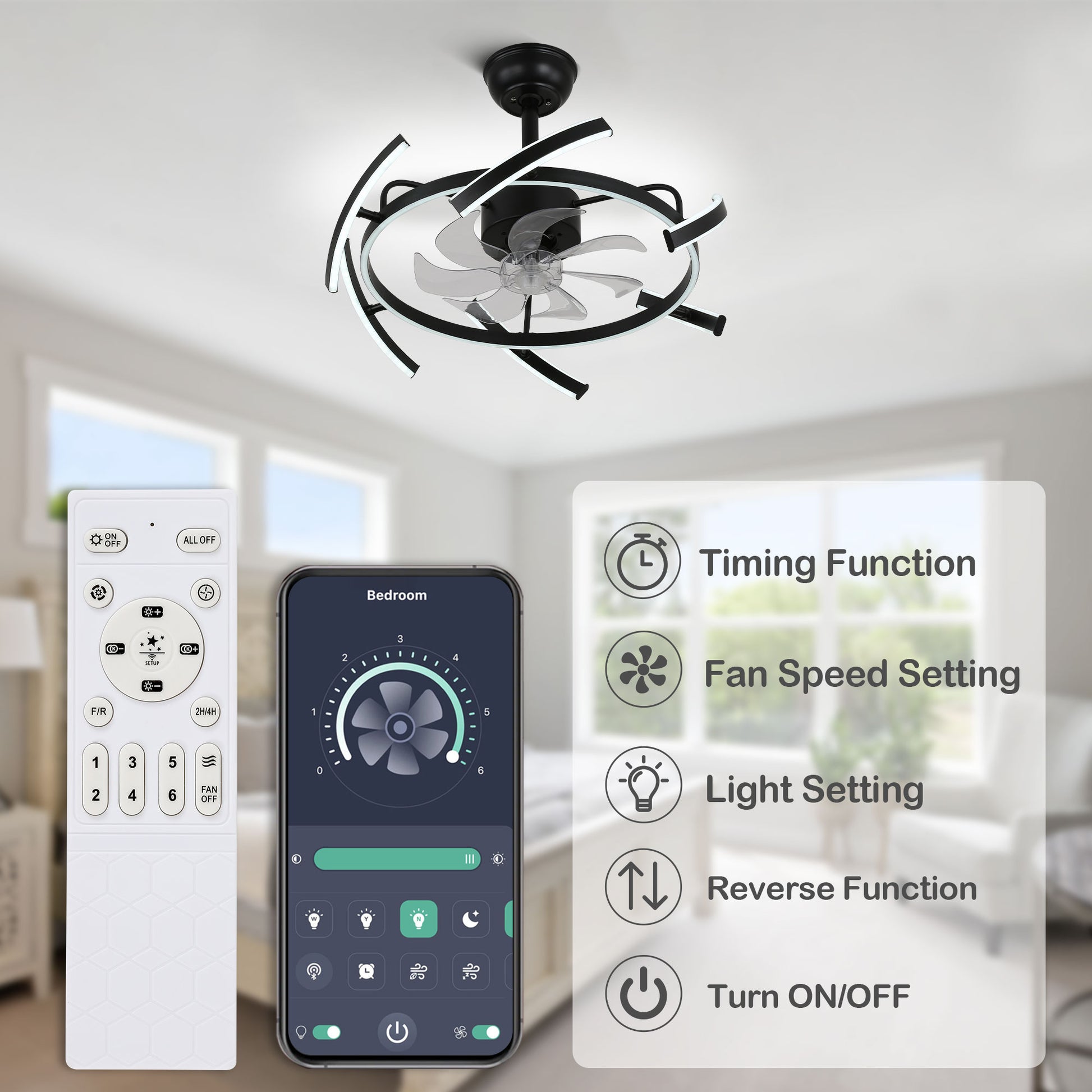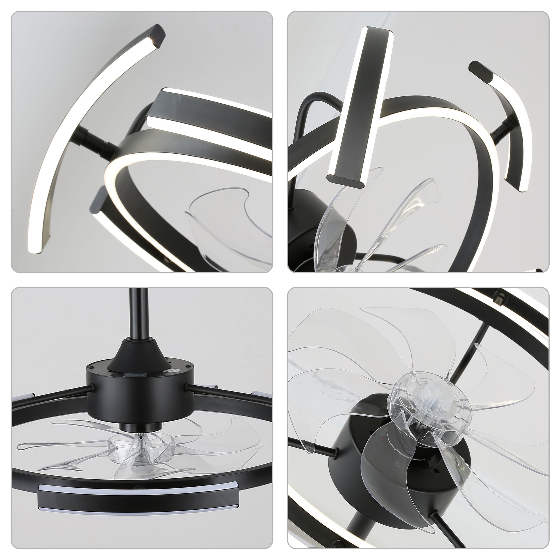 Explore LED, intelligent, and shape changing fan lights. DIY shapes give it more possibilities. Its stylish and petite appearance provides unimaginable powerful performance. The included remote control allows you to control all functions from a comfortable sofa or bed. Adopting energy-saving DC motors, providing powerful six speed airflow while using less electricity and operating at extremely low noise levels. Intelligent LED lighting. Choose from three color temperatures (bright white, warm white, natural light) and adjust brightness as desired. Includes two downrods (4 inches and 8 inches) to accommodate various ceiling heights. It is suitable for flat and sloping ceilings (up to 15 degrees), making it a universal installation solution.