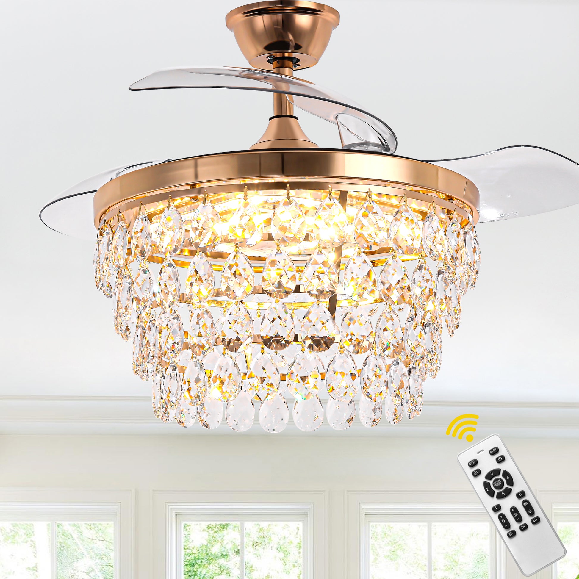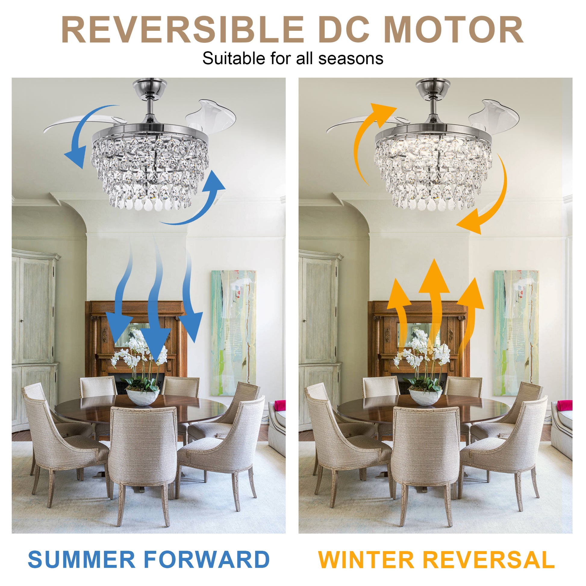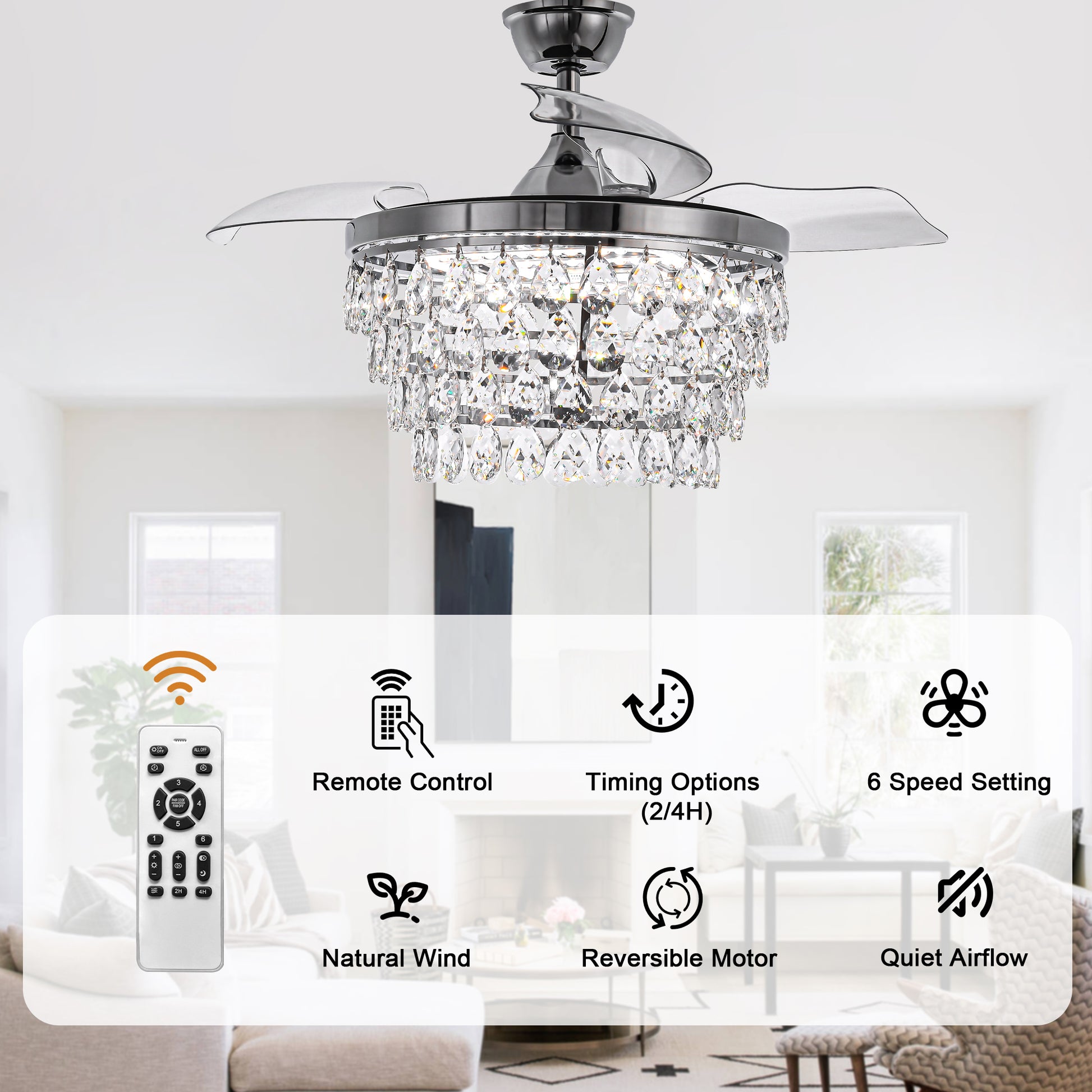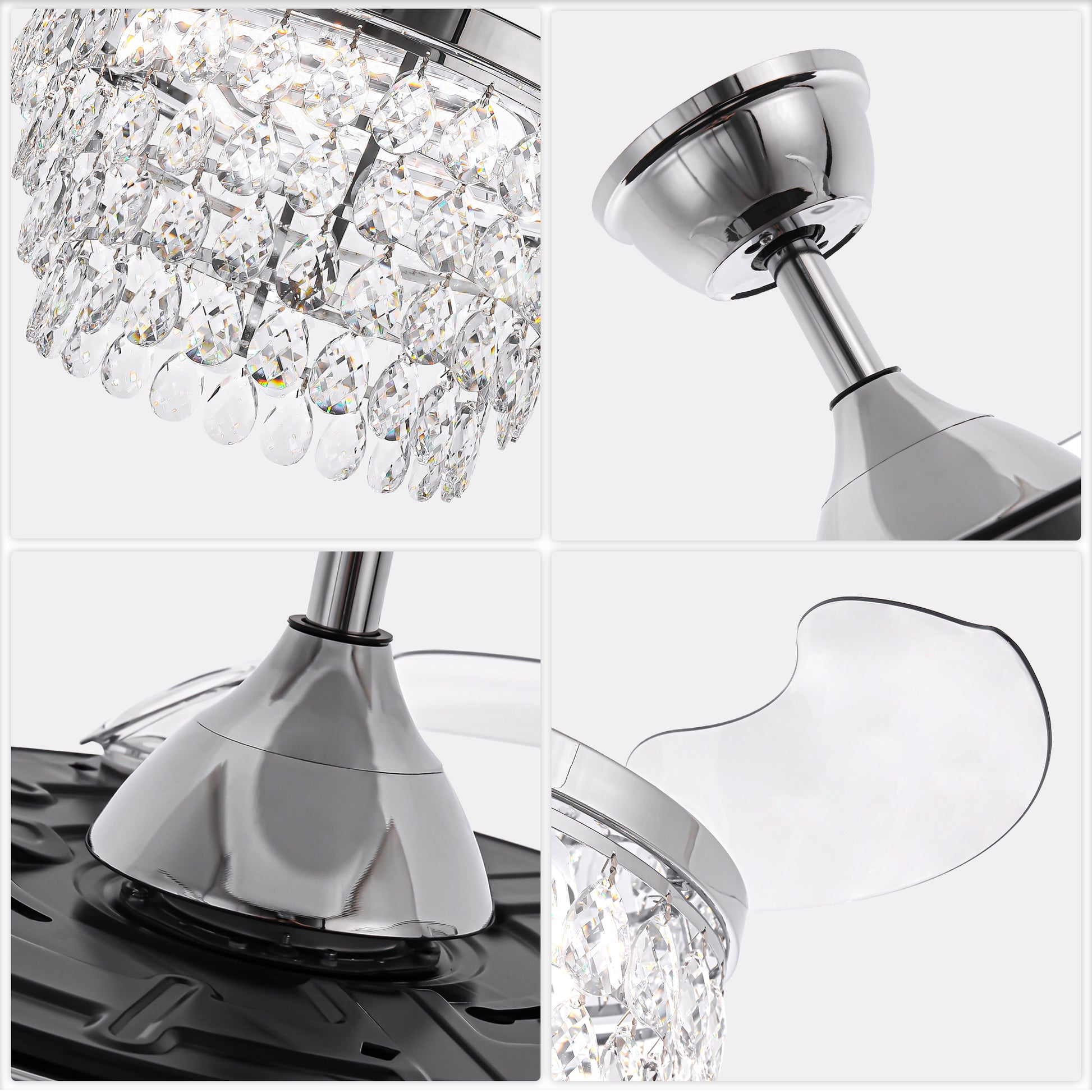 DC4270-BellaDepot 42" Silver or Gold Crystal Chandelier Ceiling Fan with Remote and Lights, Retractable Blades Ceiling Fan