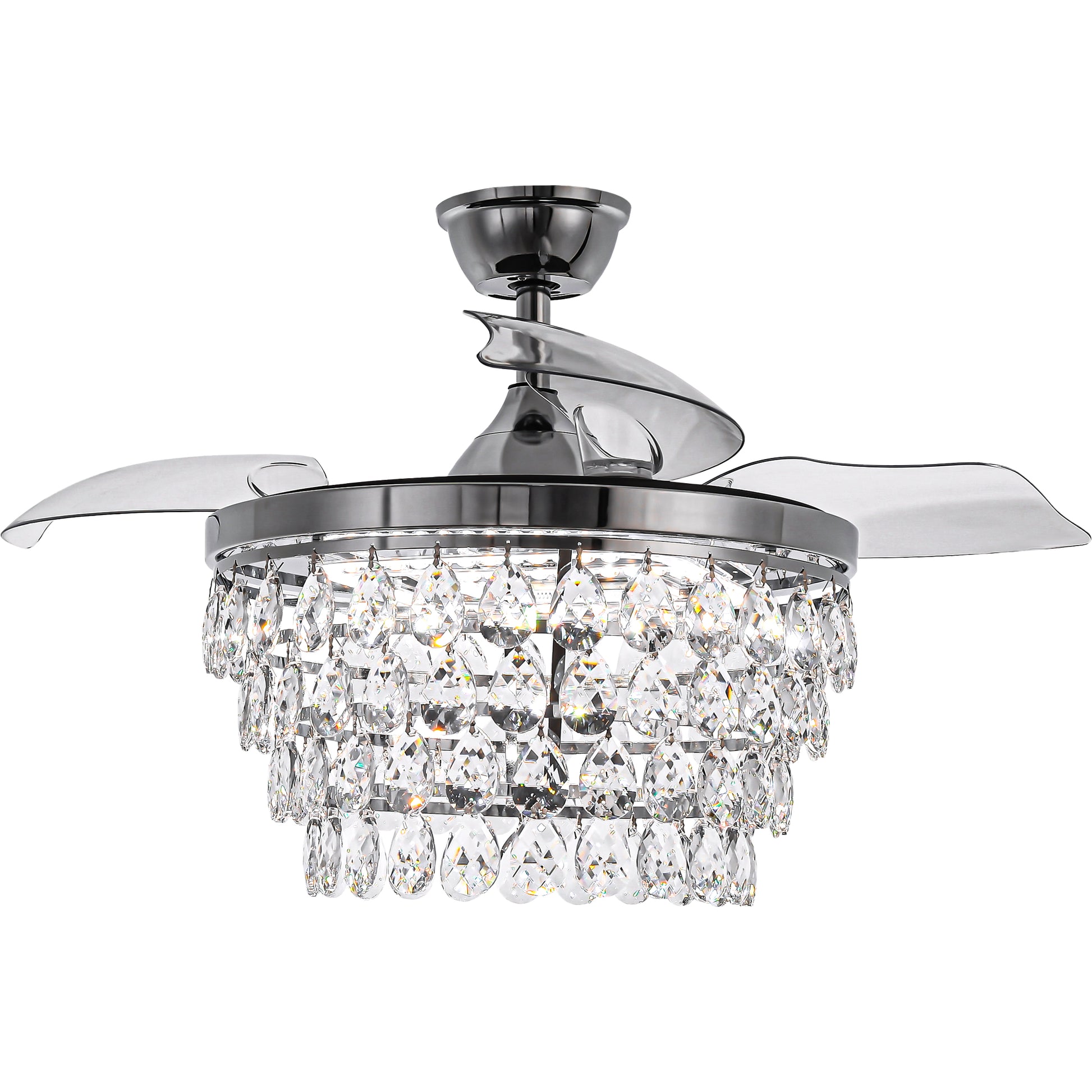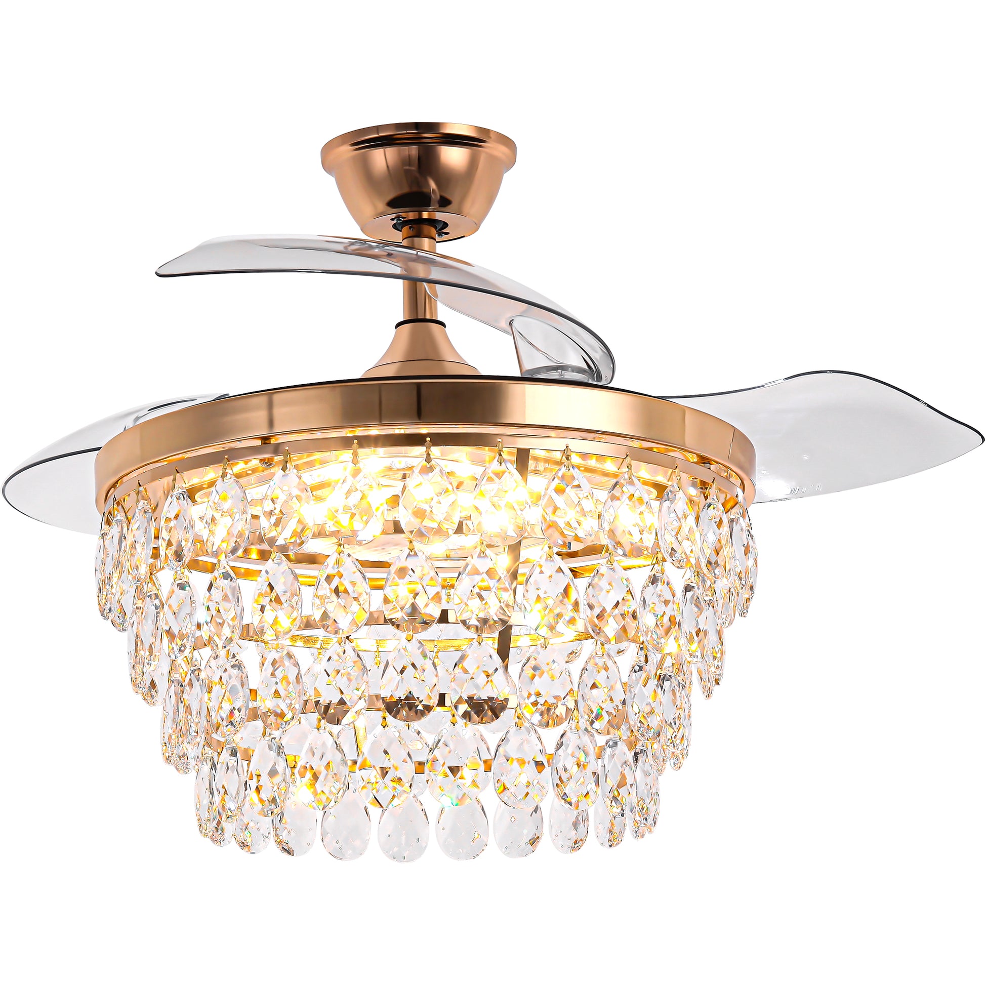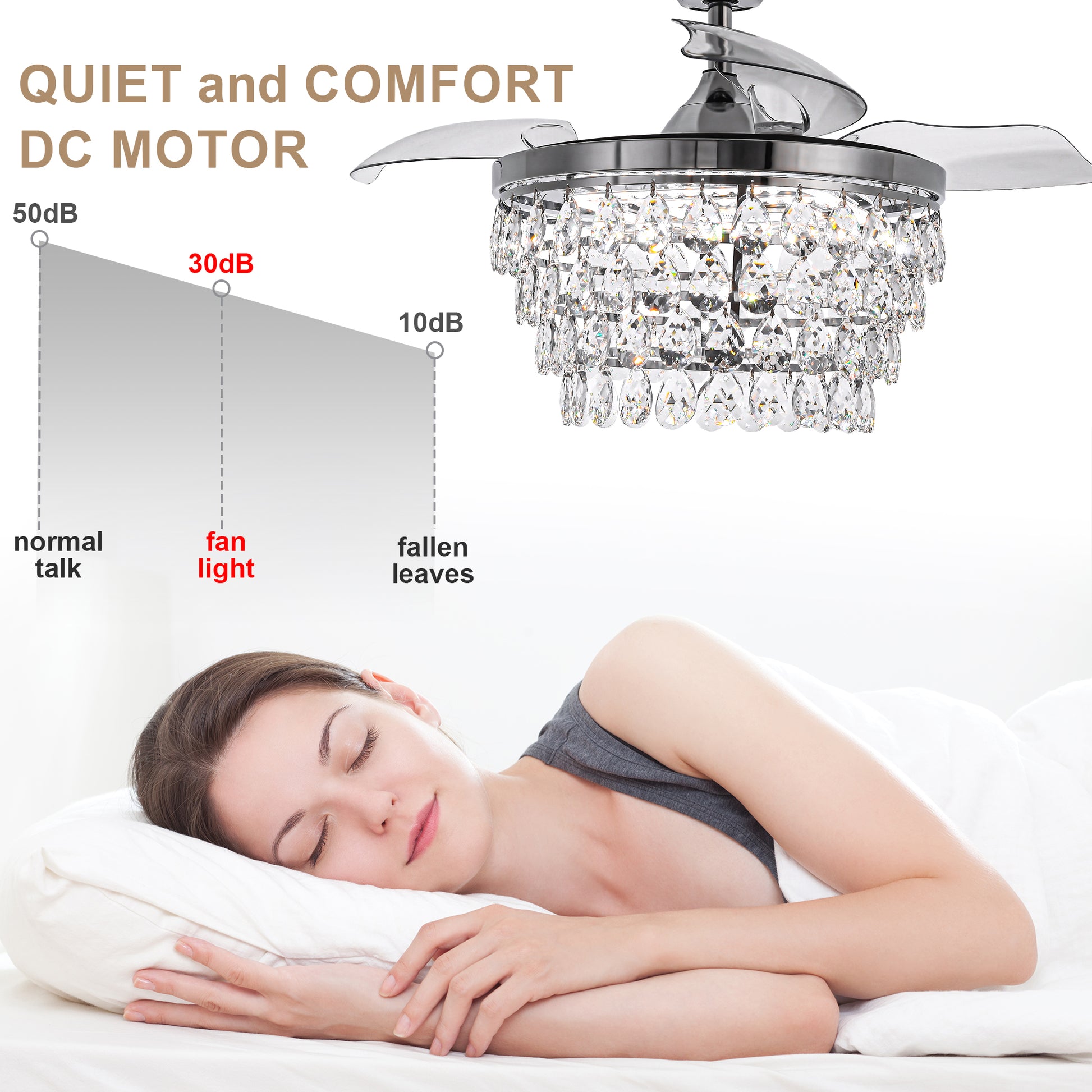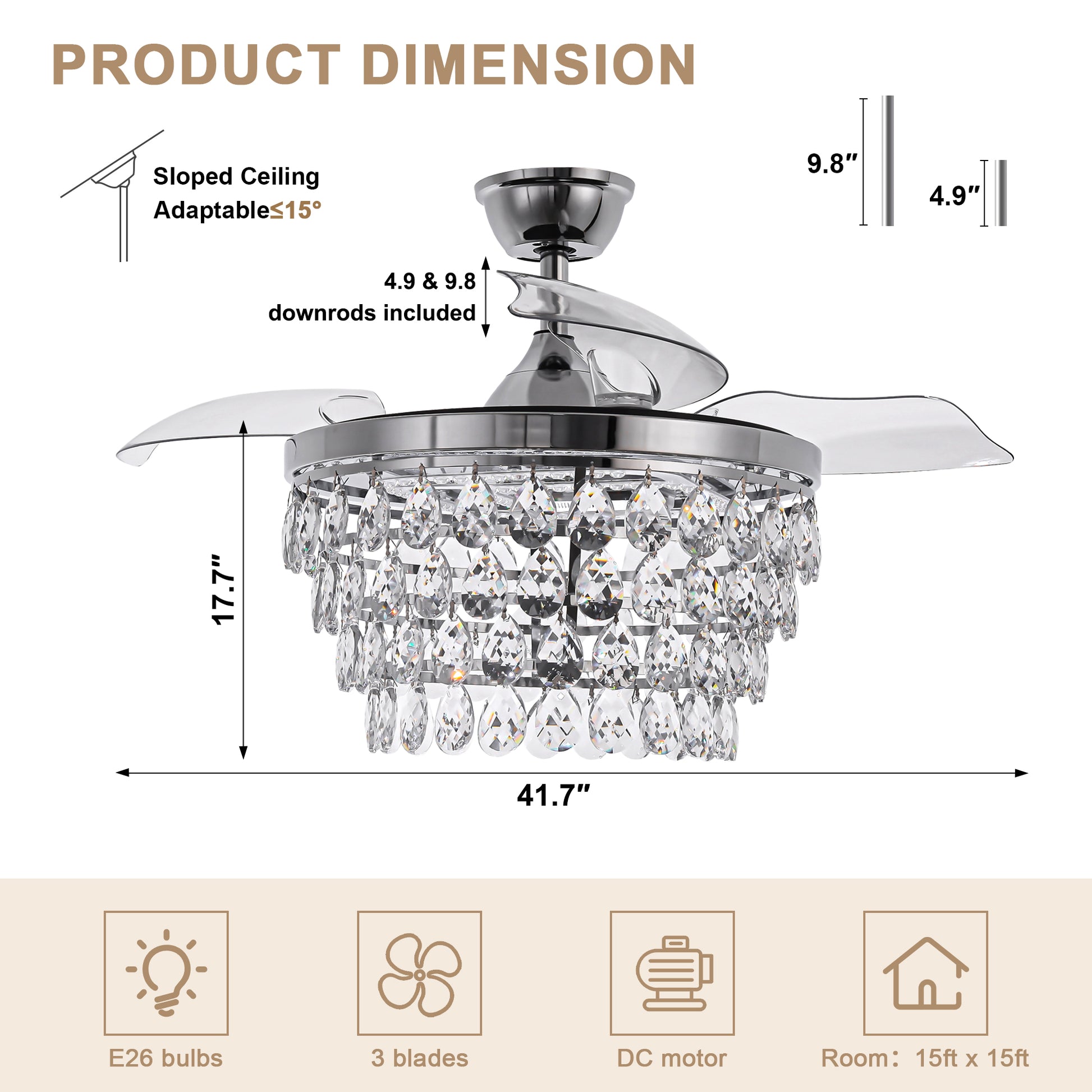 DC4270-BellaDepot 42" Silver or Gold Crystal Chandelier Ceiling Fan with Remote and Lights, Retractable Blades Ceiling Fan