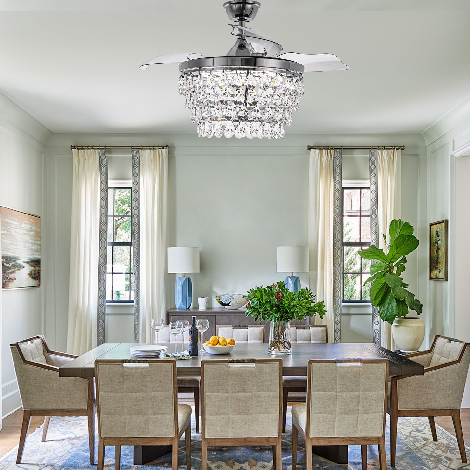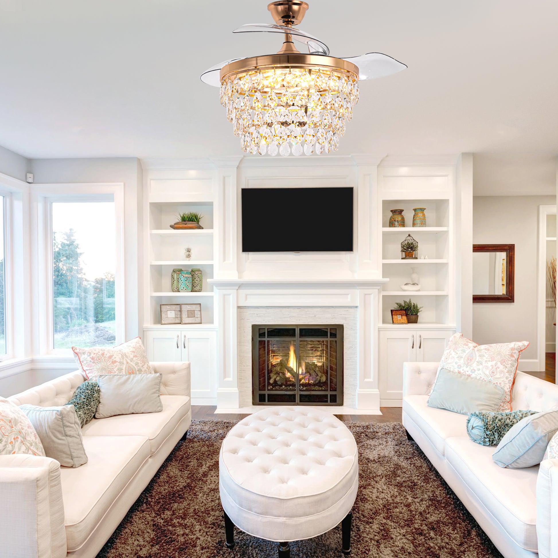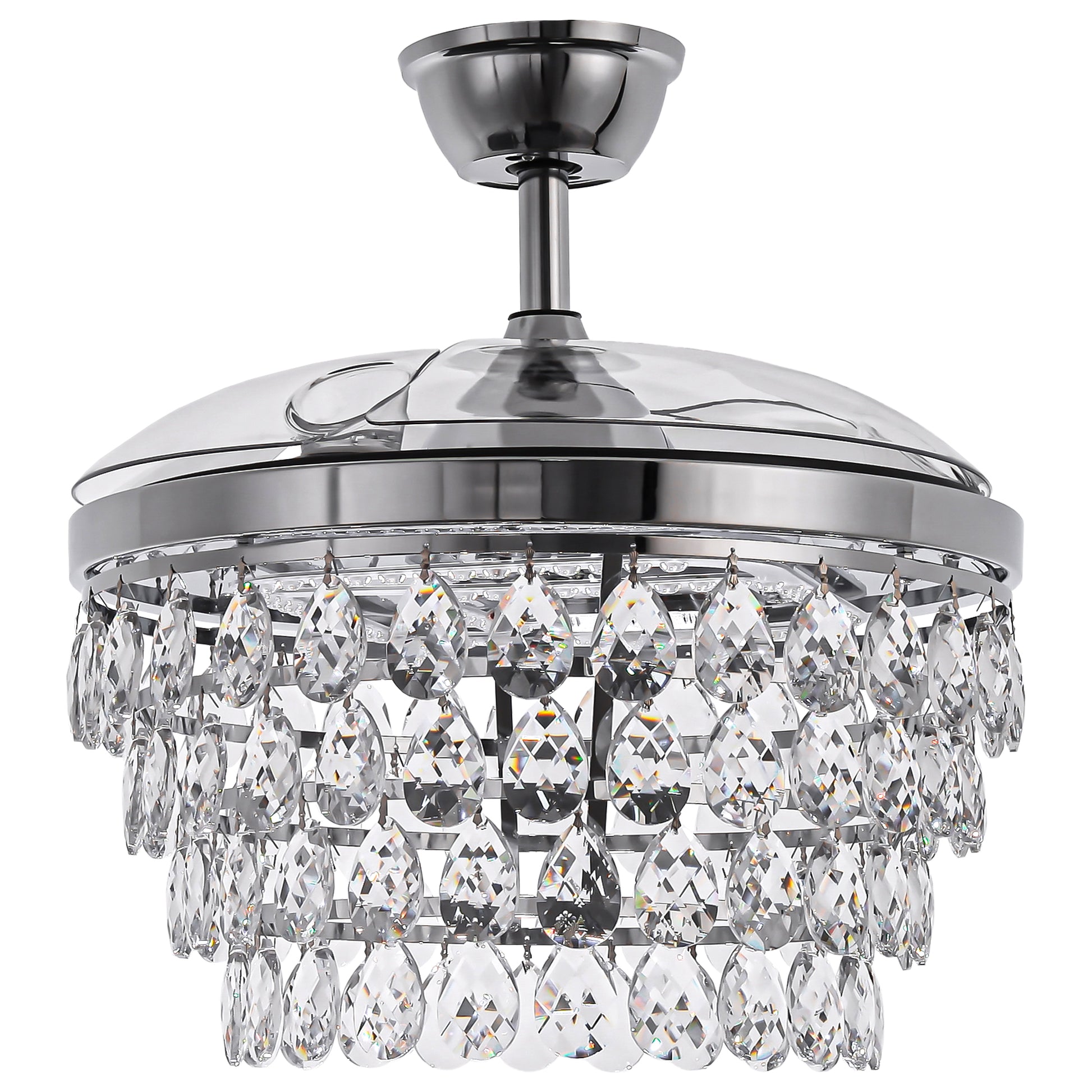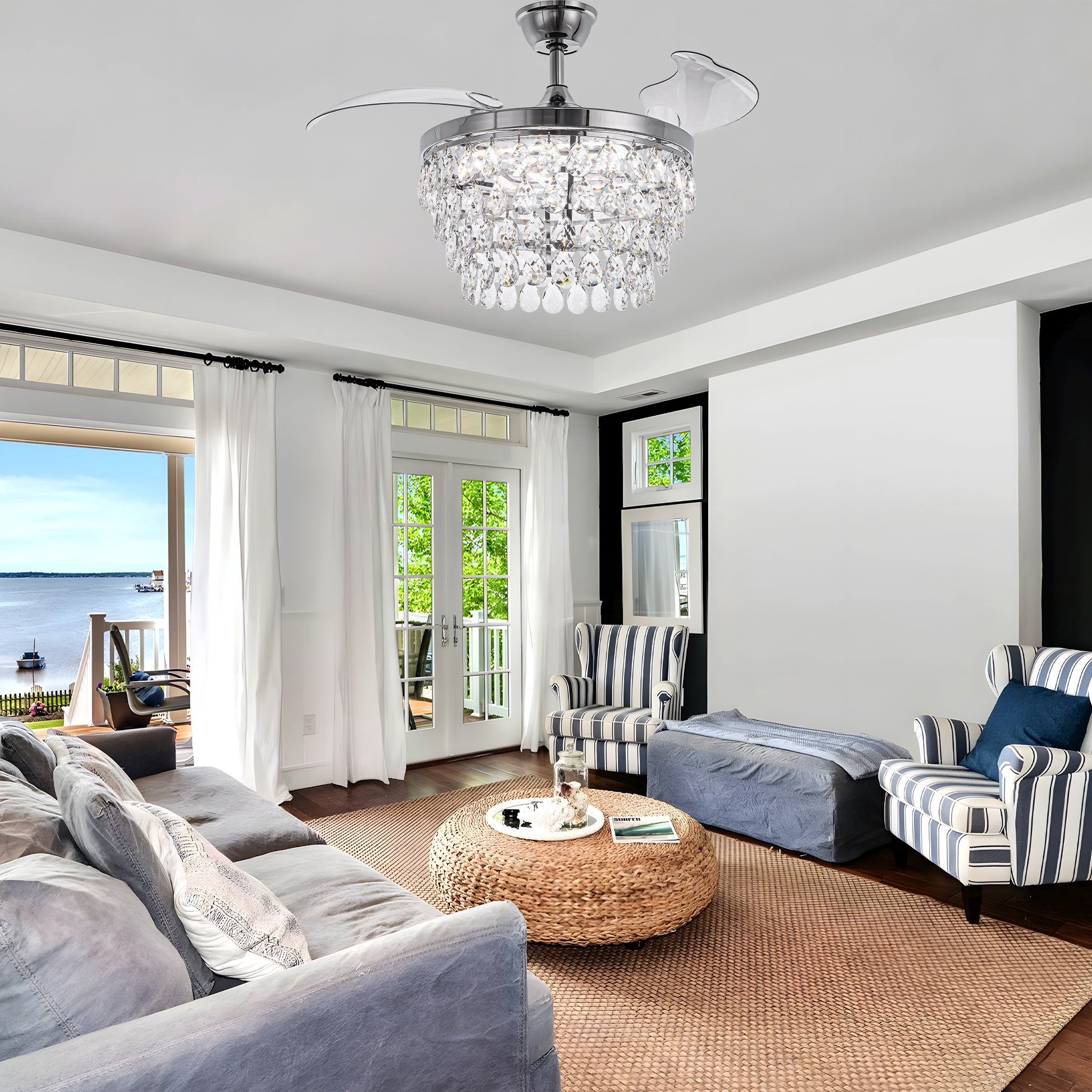 DC4270-BellaDepot 42" Silver or Gold Crystal Chandelier Ceiling Fan with Remote and Lights, Retractable Blades Ceiling Fan