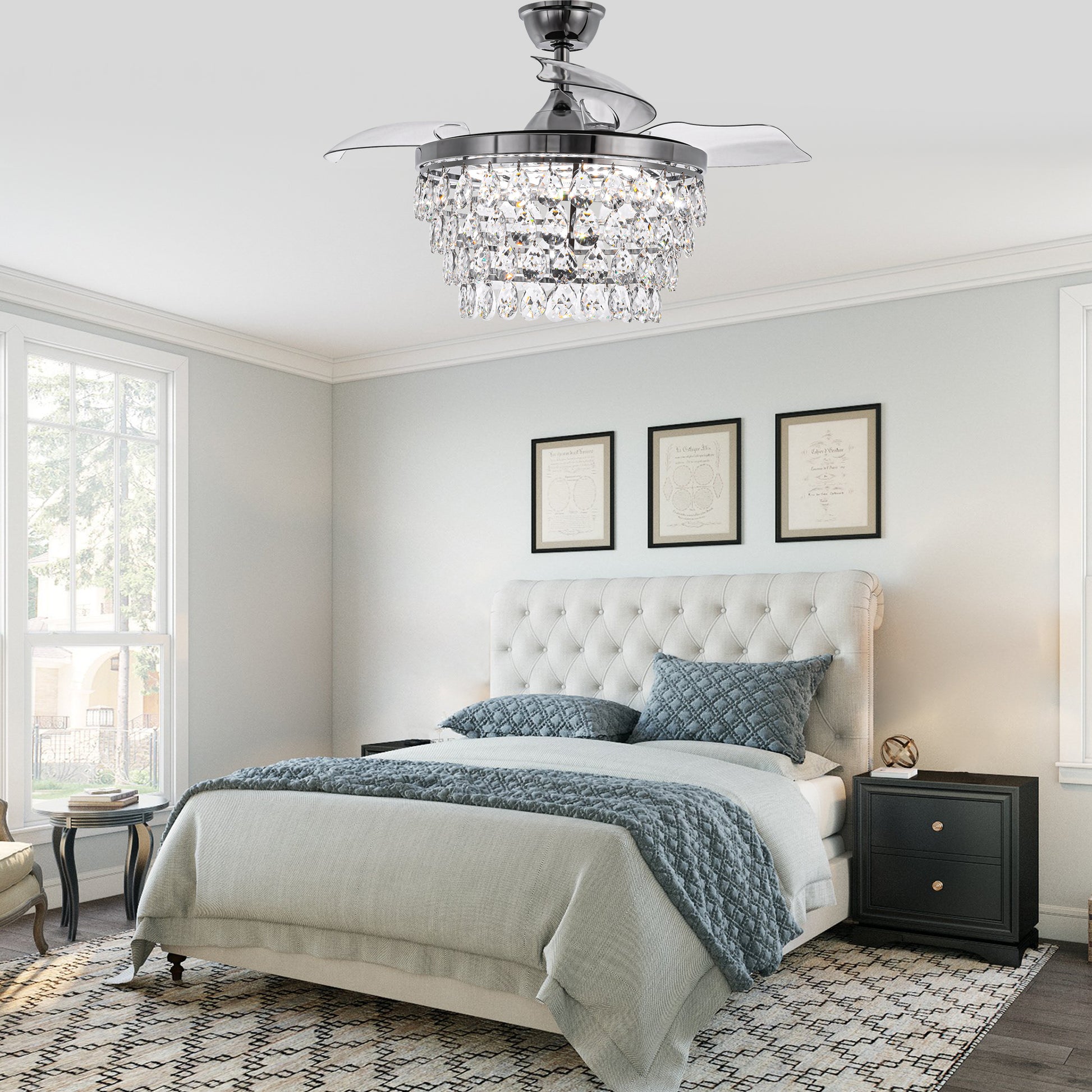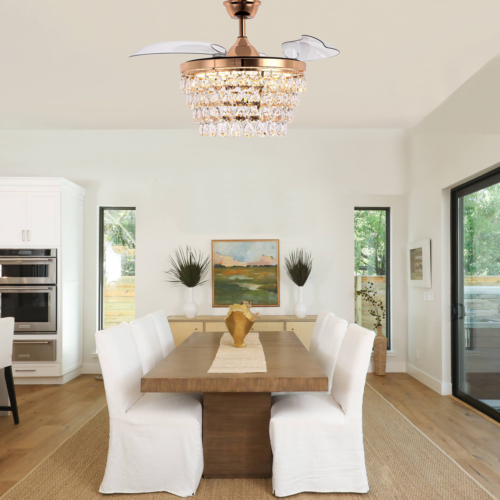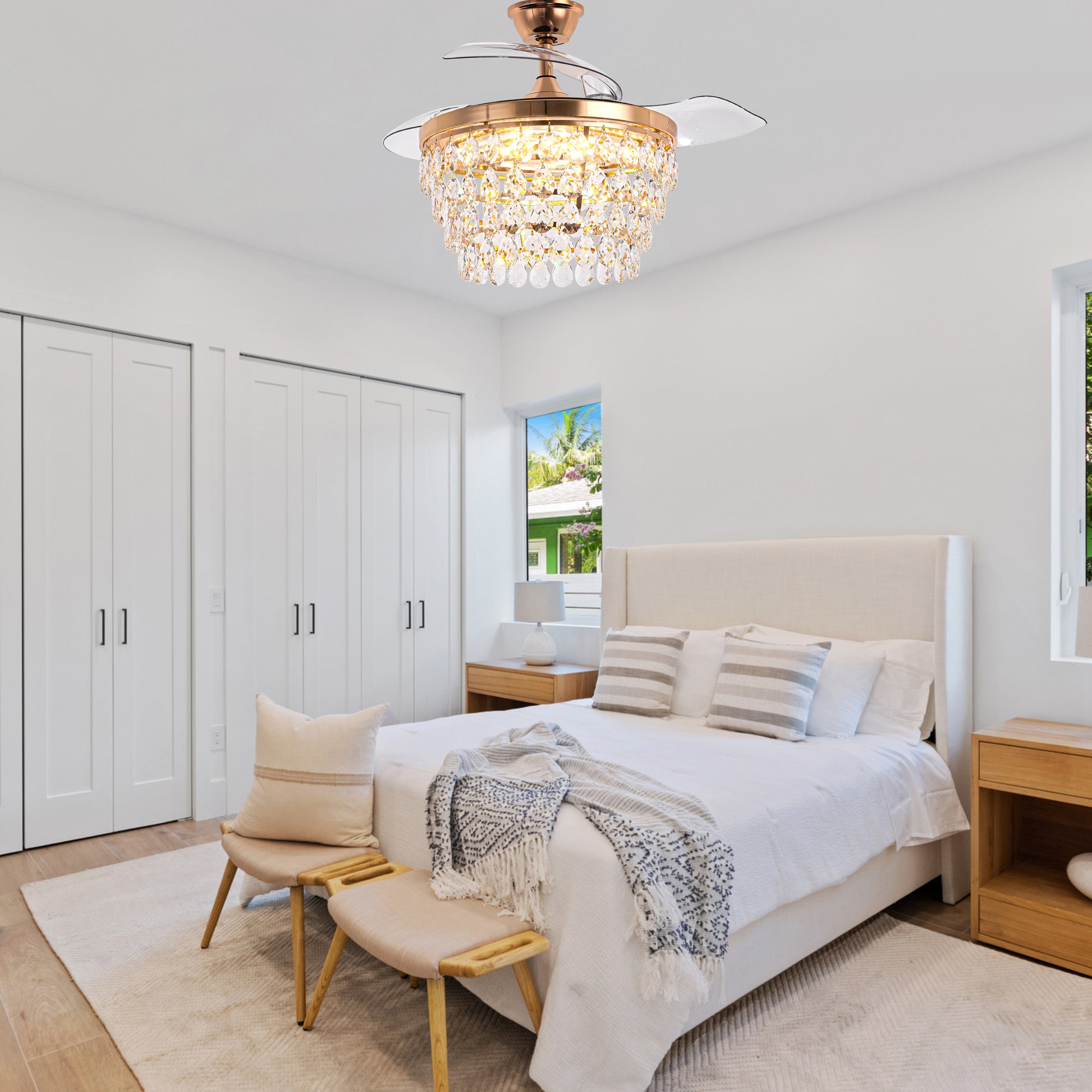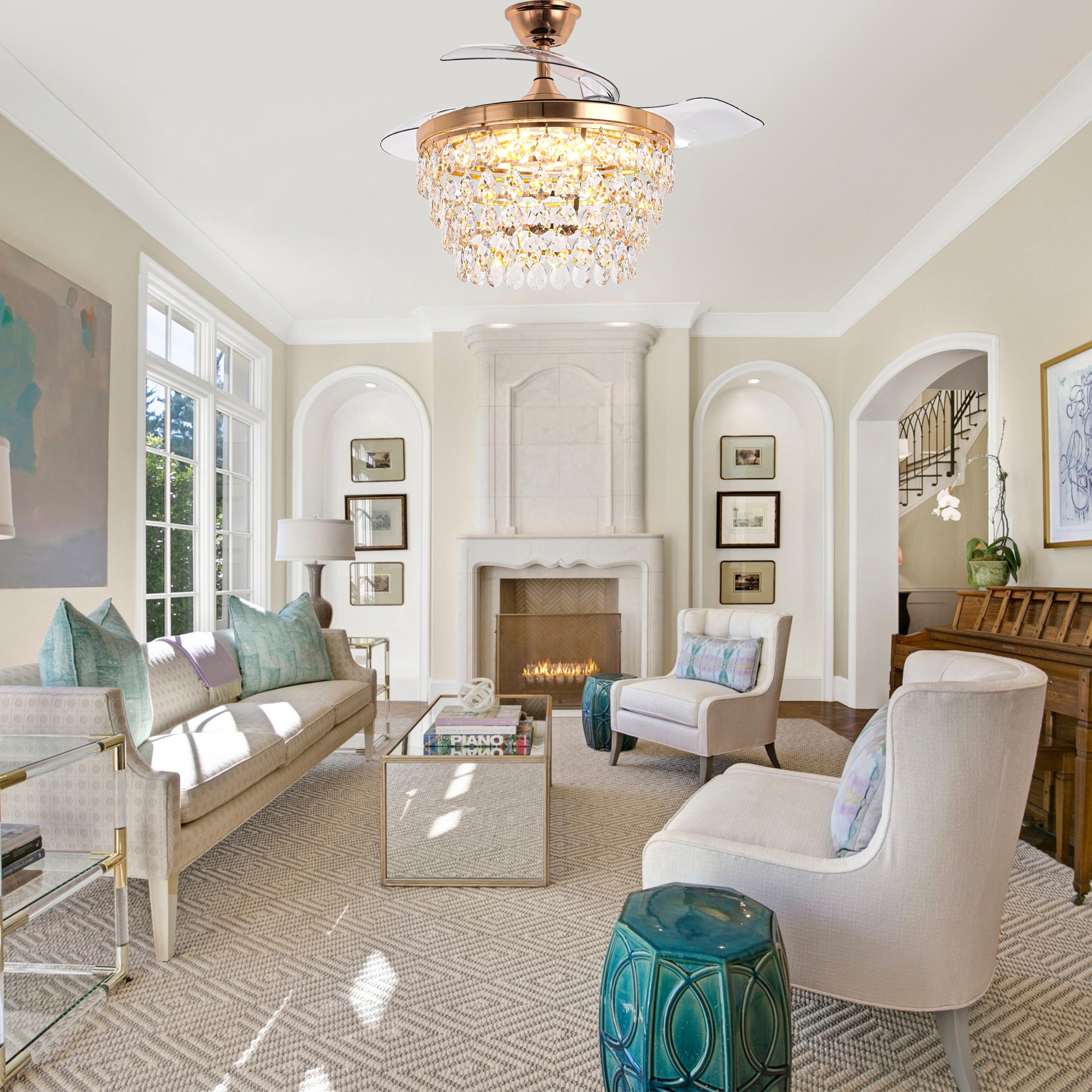 DC4270-BellaDepot 42" Silver or Gold Crystal Chandelier Ceiling Fan with Remote and Lights, Retractable Blades Ceiling Fan