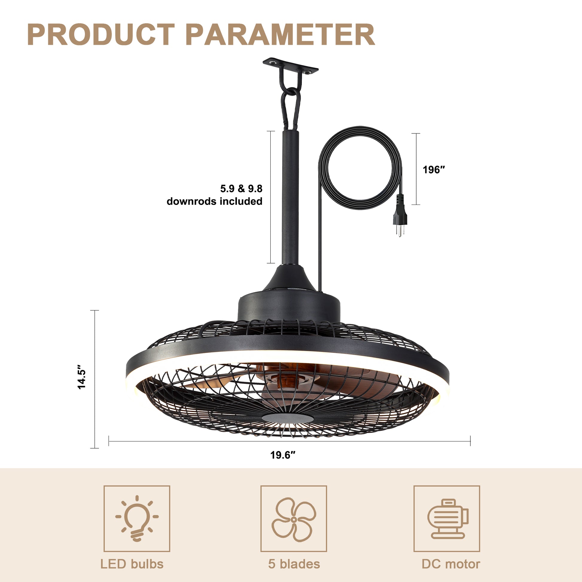 HW2001-BellaDepot 20" Compact Outdoor Caged Ceiling Fan with Remote Control, Waterproof Fan with LED Lights