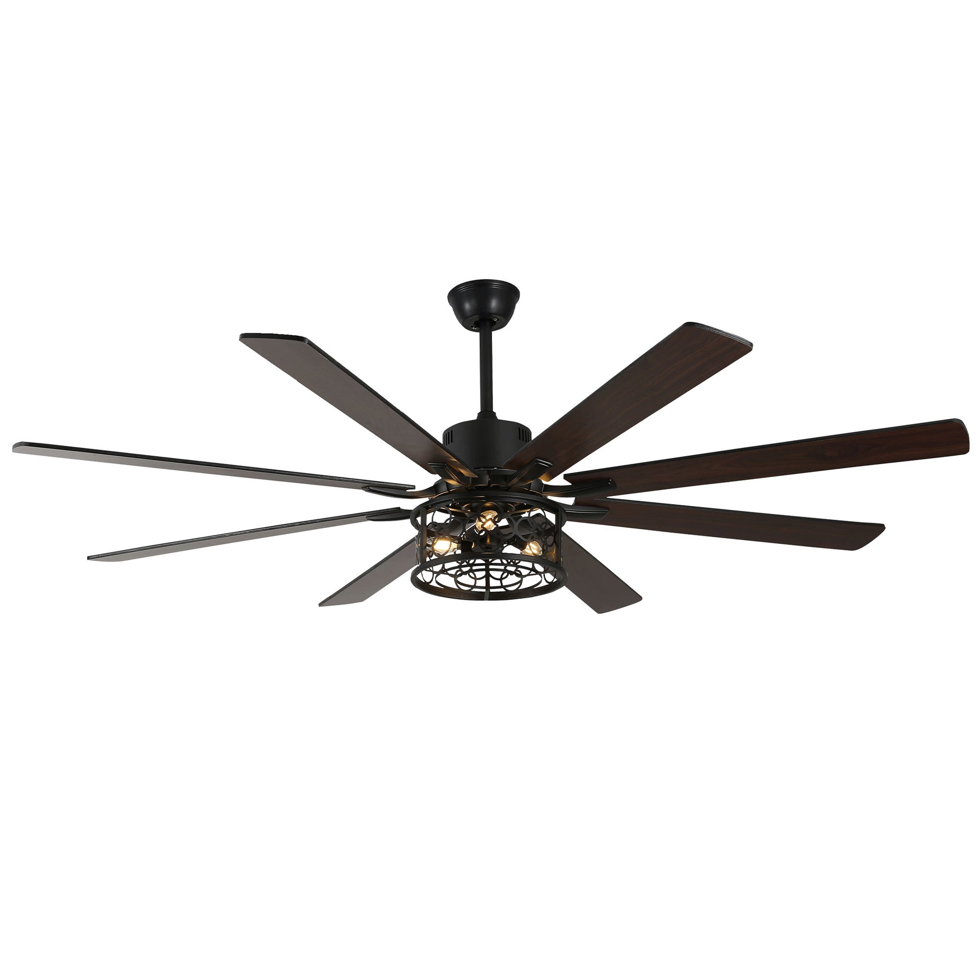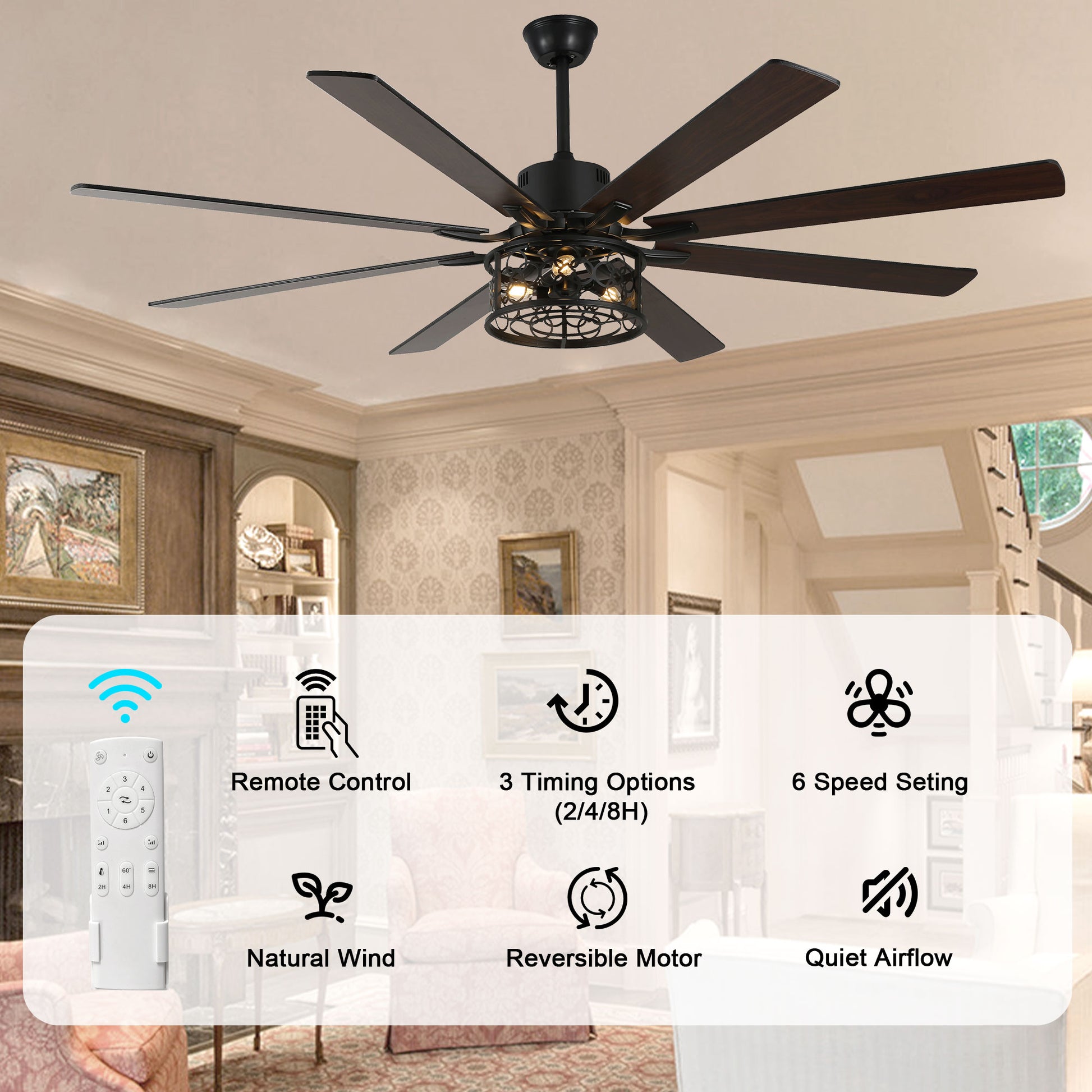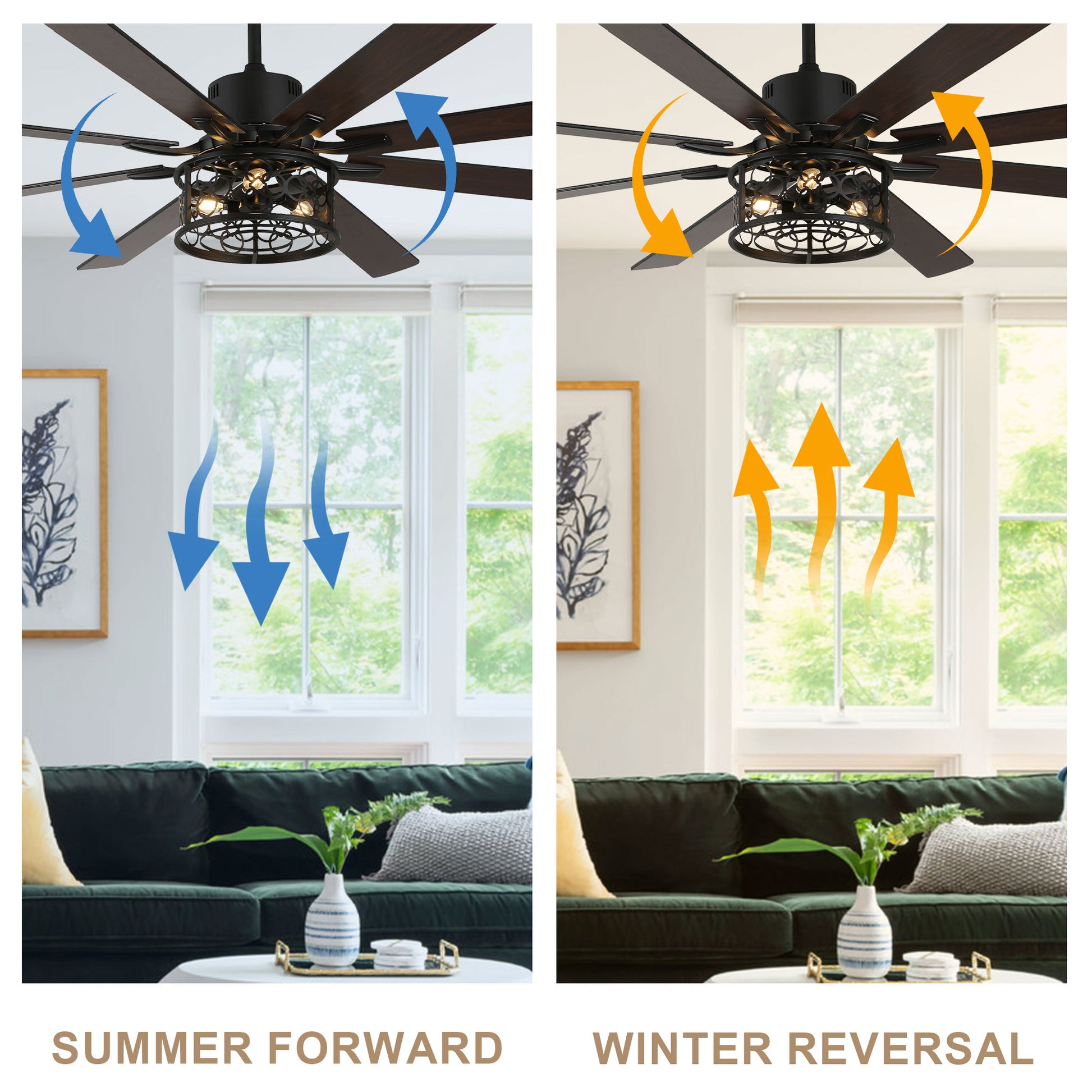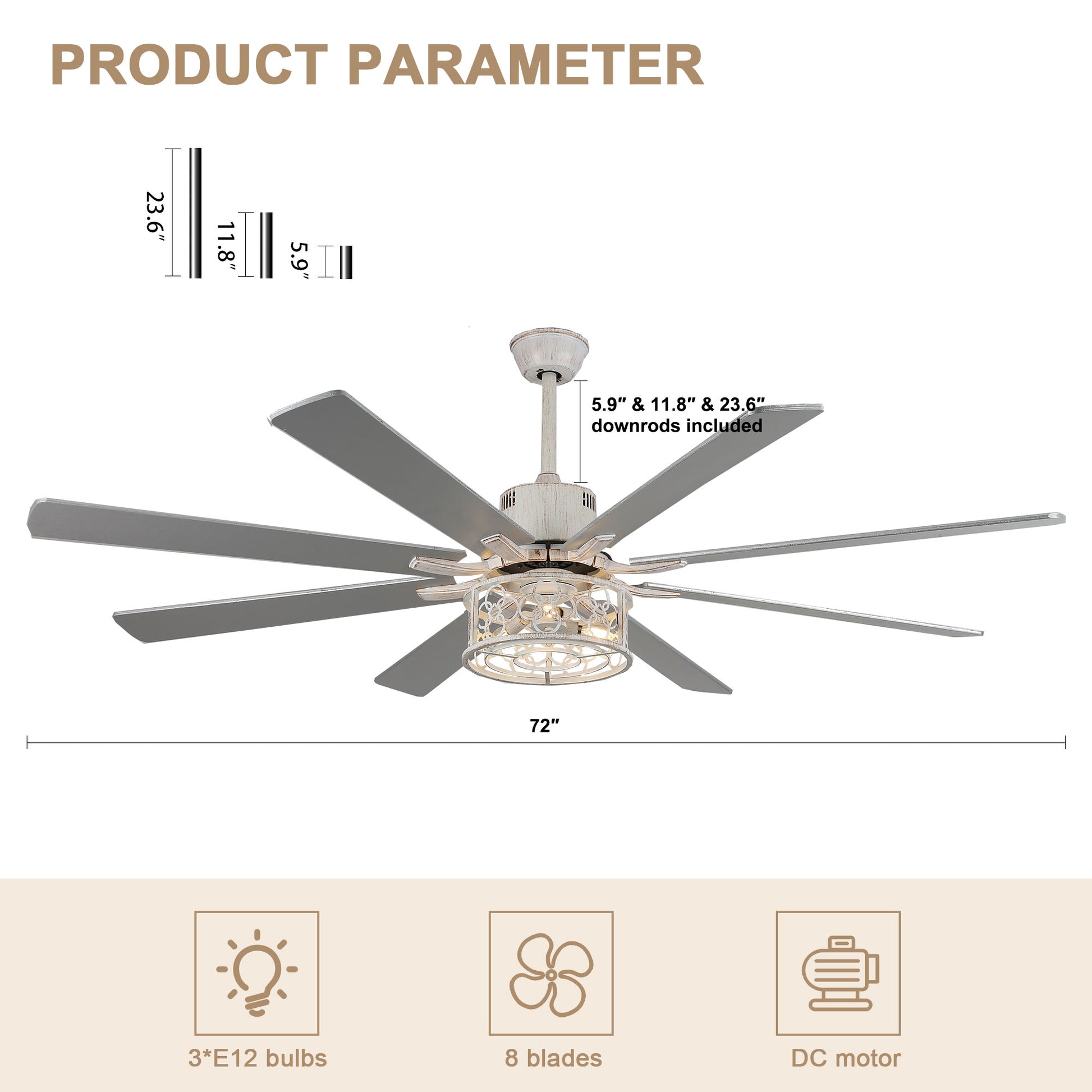 DC7201-72" 8 Wooden Blades White/Black Farmhouse Reversible Ceiling Fan with Remote and 3 Lights, Large Size Ceiling Fan