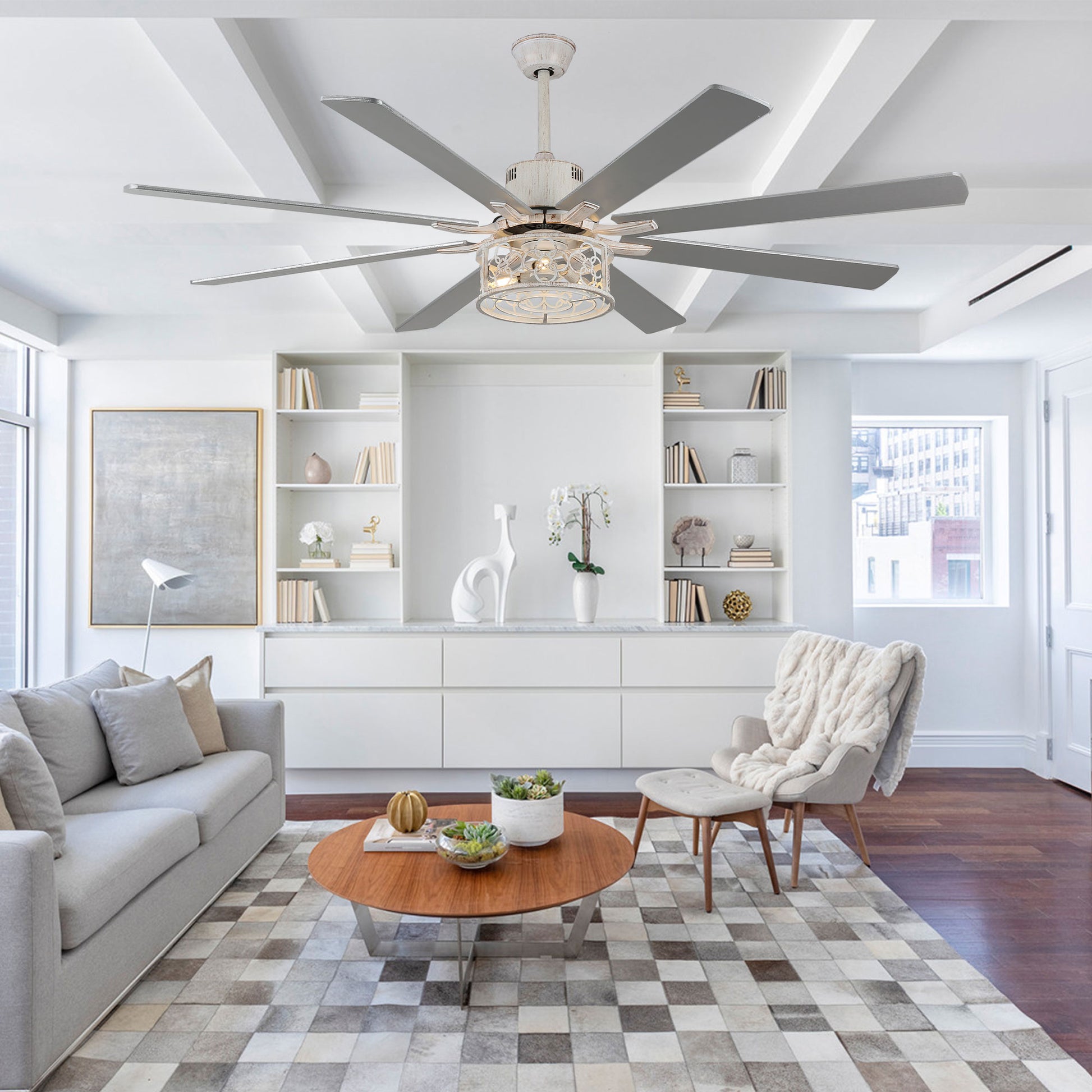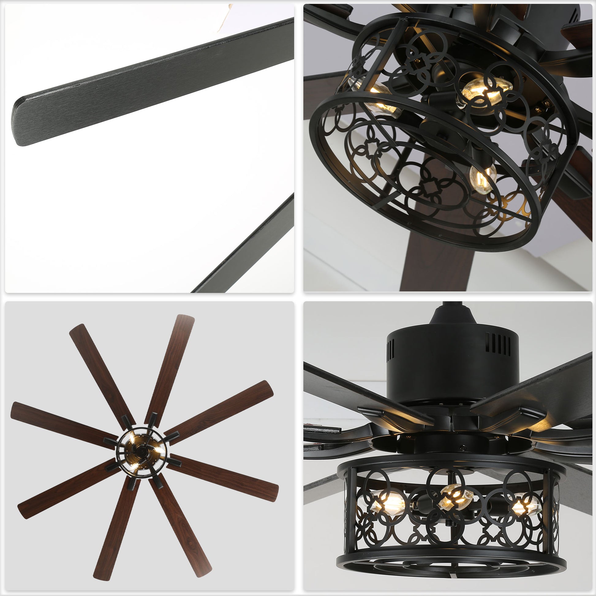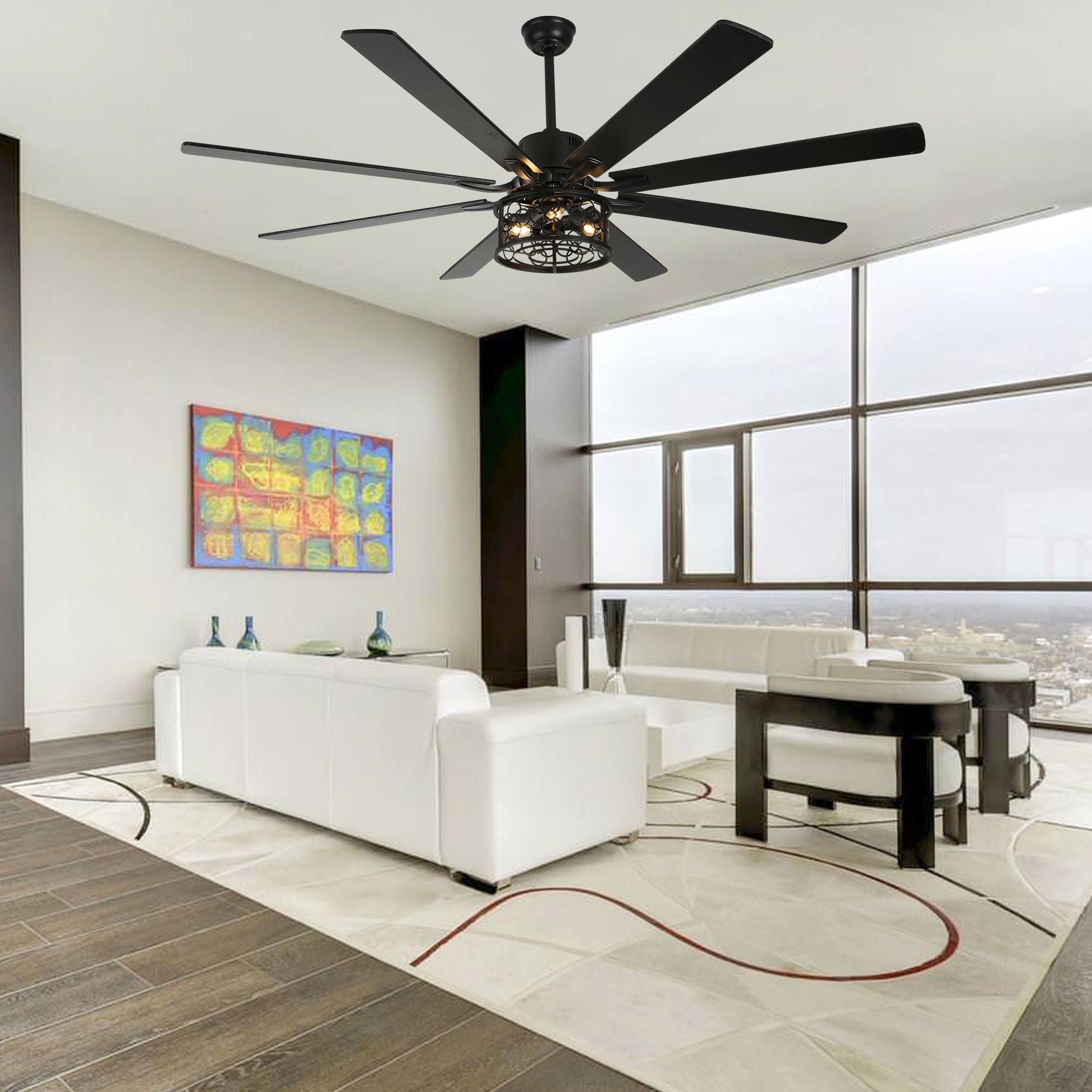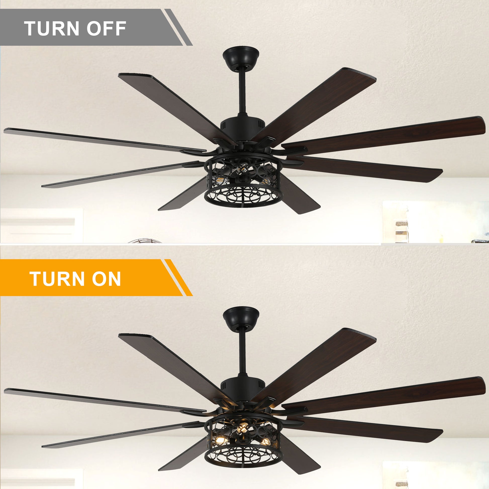 DC7201-72" 8 Wooden Blades White/Black Farmhouse Reversible Ceiling Fan with Remote and 3 Lights, Large Size Ceiling Fan