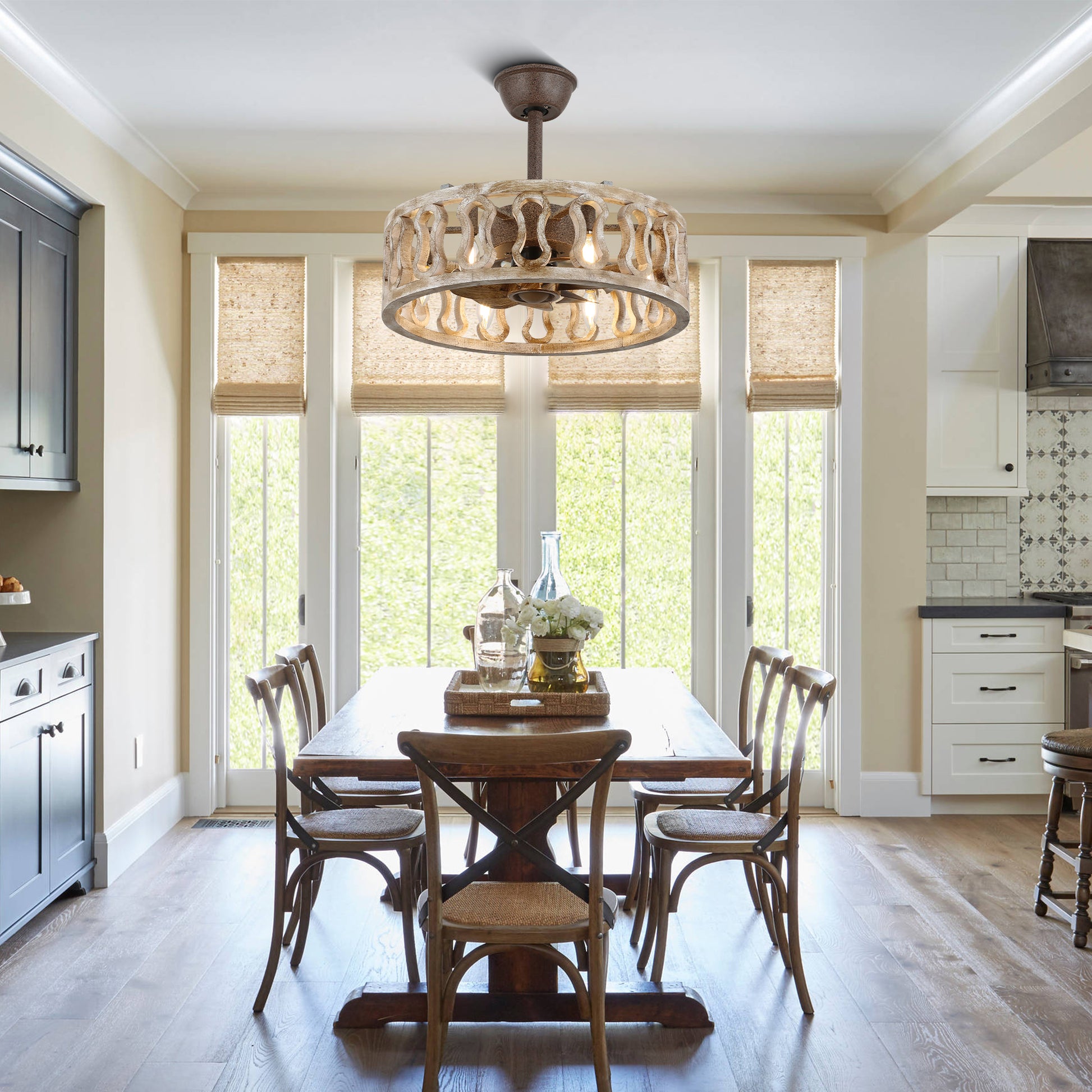 Discover the perfect fusion of vintage charm and modern convenience with our Retro Style Ceiling Fan. This stunning piece is more than just an appliance, it's a statement of style that will quickly become one of your favorite home decor items. Combining a powerful fan and a light fixture, it delivers exceptional functionality wrapped in a beautifully crafted design. Enjoy ultimate convenience with the included remote control, which allows you to operate every function from the comfort of your couch or bed. Engineered for efficiency, the latest AC motor technology provides powerful airflow to cool your room effectively while keeping energy costs low and noise levels to a whisper. The fixture requires six E12 candelabra base bulbs (bulbs not included). The fan and light feature separate controls, giving you the flexibility to use the soothing breeze, the warm light, or both together to create your ideal ambiance.