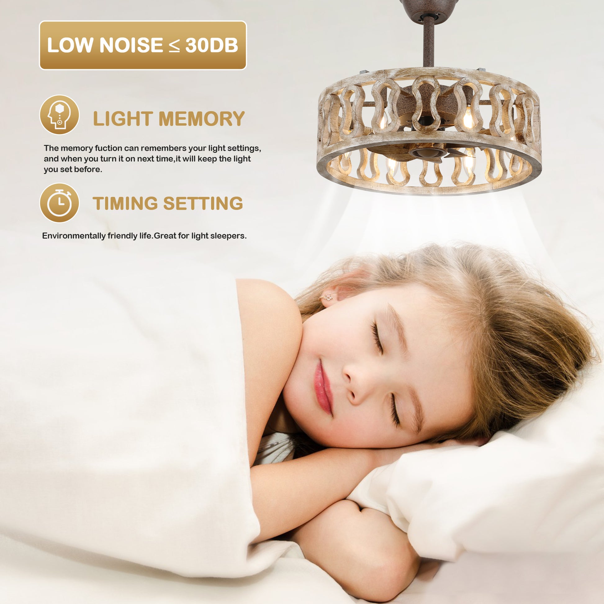 BD1808-BellaDepot 18" Distressed Caged Reversible Ceiling Fan with Remote and 6 Lights, Ceiling Fan for All Seasons