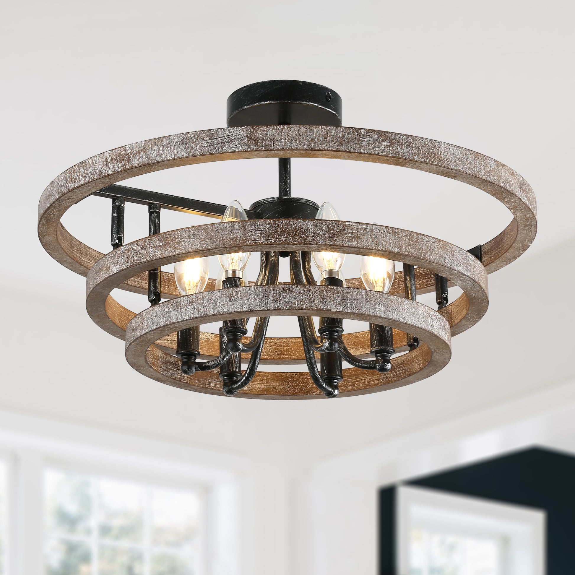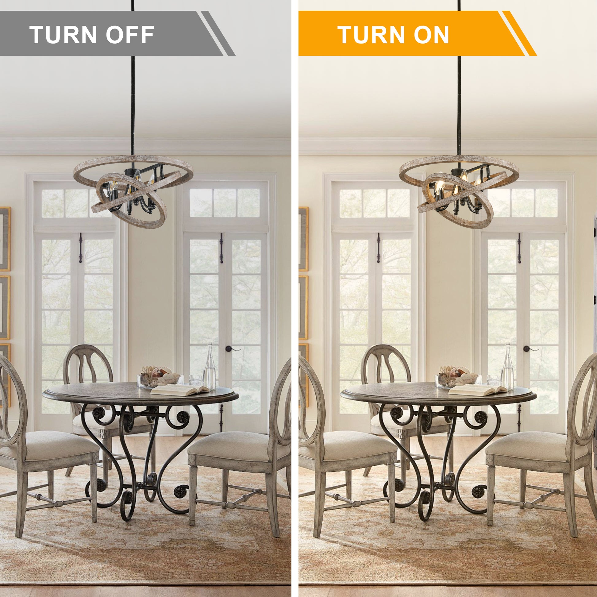 Breaking the inherent boundaries of lamp forms, this unique design is exclusively available at BellaDepot. The iron skeleton ensures the stability of the structure, and the surface is painted with wood grain to ensure a beautiful appearance. The core highlight of this chandelier is its flexible design that can be manually changed in shape, paired with a classic candlestick base. It retains the retro farmhouse atmosphere while also being full of modern art.