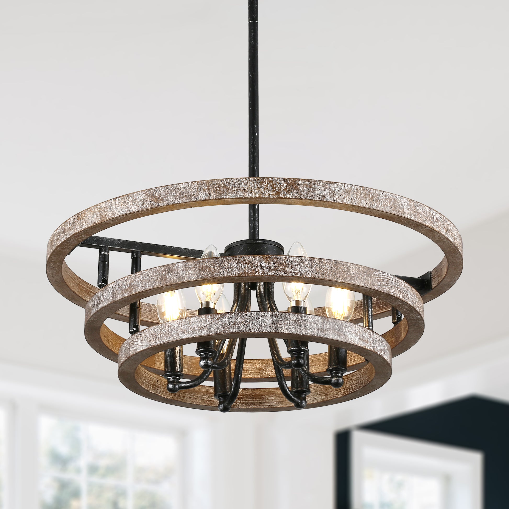 FC4111-BellaDepot Lights Classic Wood Chandelier, Height Adjustable Home Decoration Pendant Light