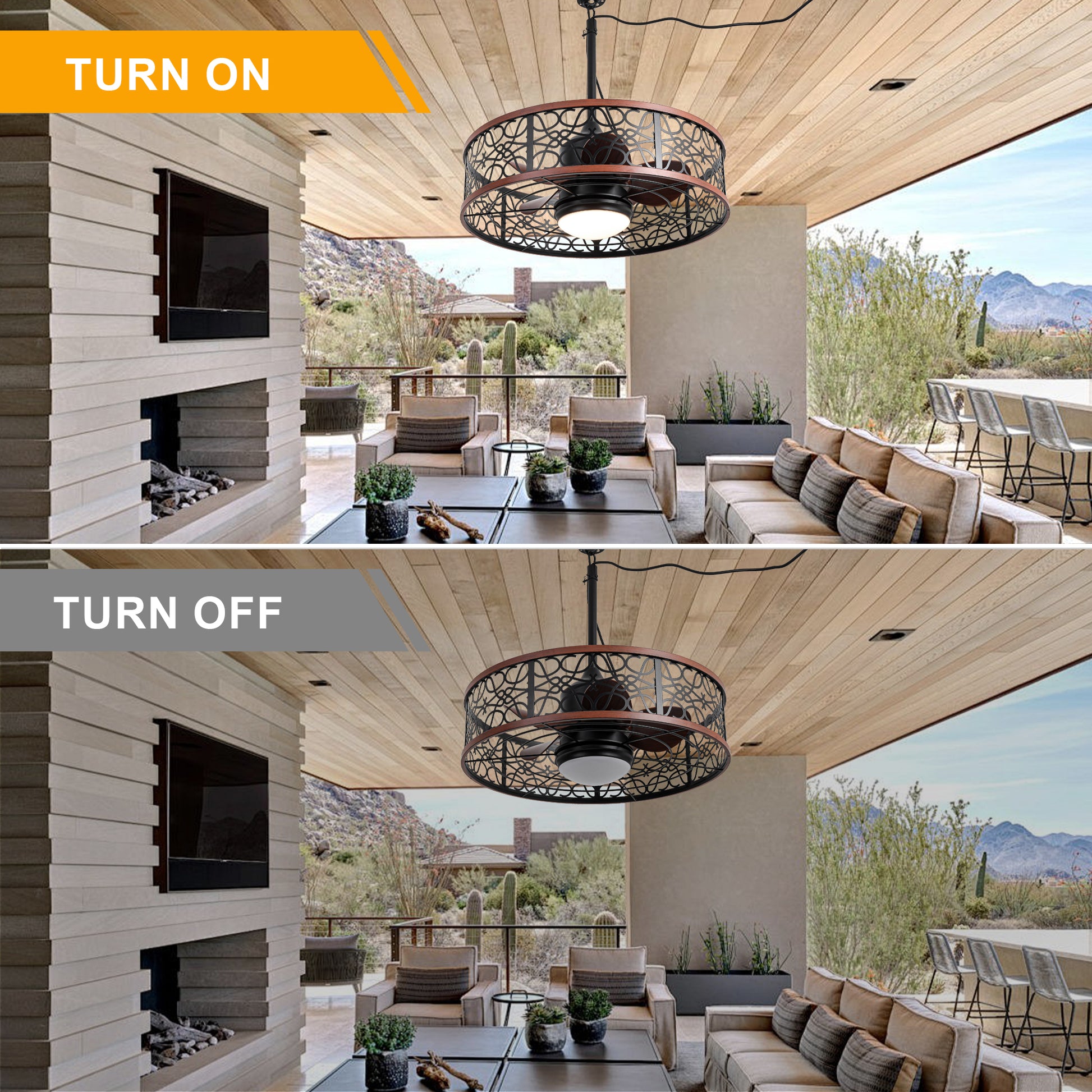 BellaDepot's outdoor cage style ceiling fans are carefully designed to be suitable for various outdoor occasions such as terraces, courtyards, and camping. It have dual functions of lighting and ventilation, combining practicality and aesthetics. The portable design makes it easy to carry or install flexibly, whether hanging inside a tent or under a tree, it can bring you coolness and brightness. The fan runs quietly and efficiently, and the LED lights are soft and energy-saving, making it an ideal choice for improving outdoor living comfort.