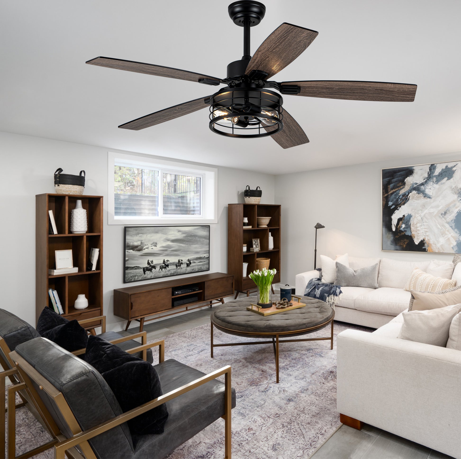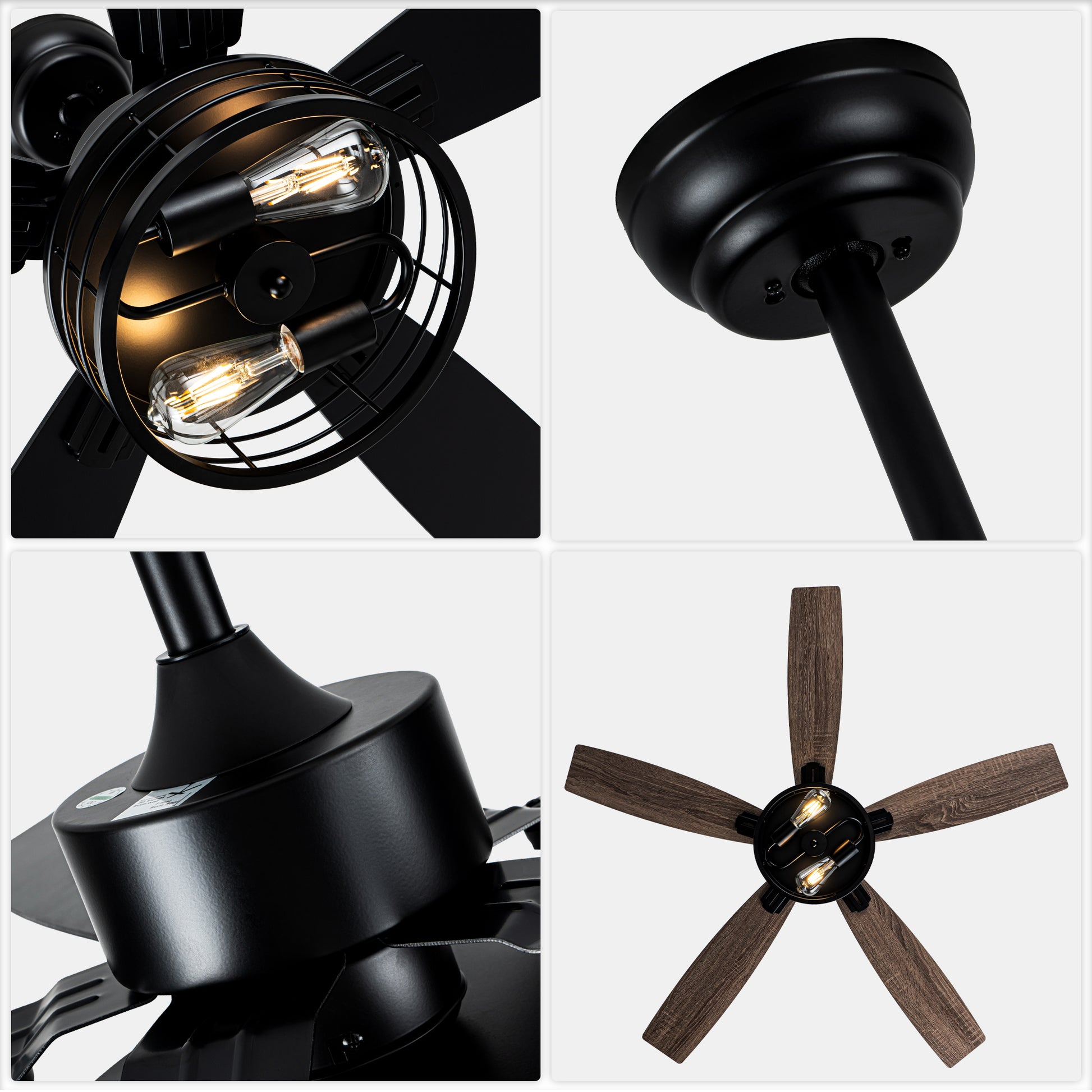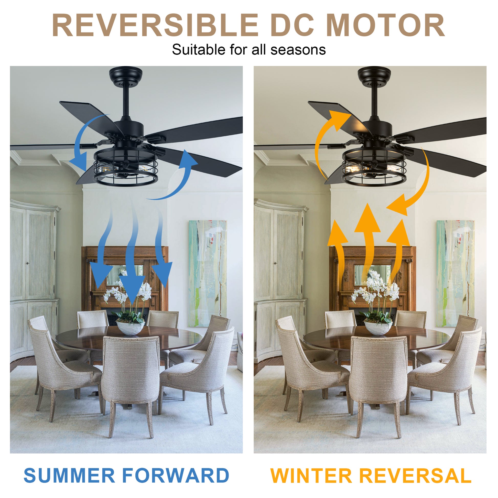 MD-FS8930XL-BellaDepot 52" Industrial Metal Caged Fan Lights with Remote Control, Silent DC Motor Ceiling Fan for Any Seasons